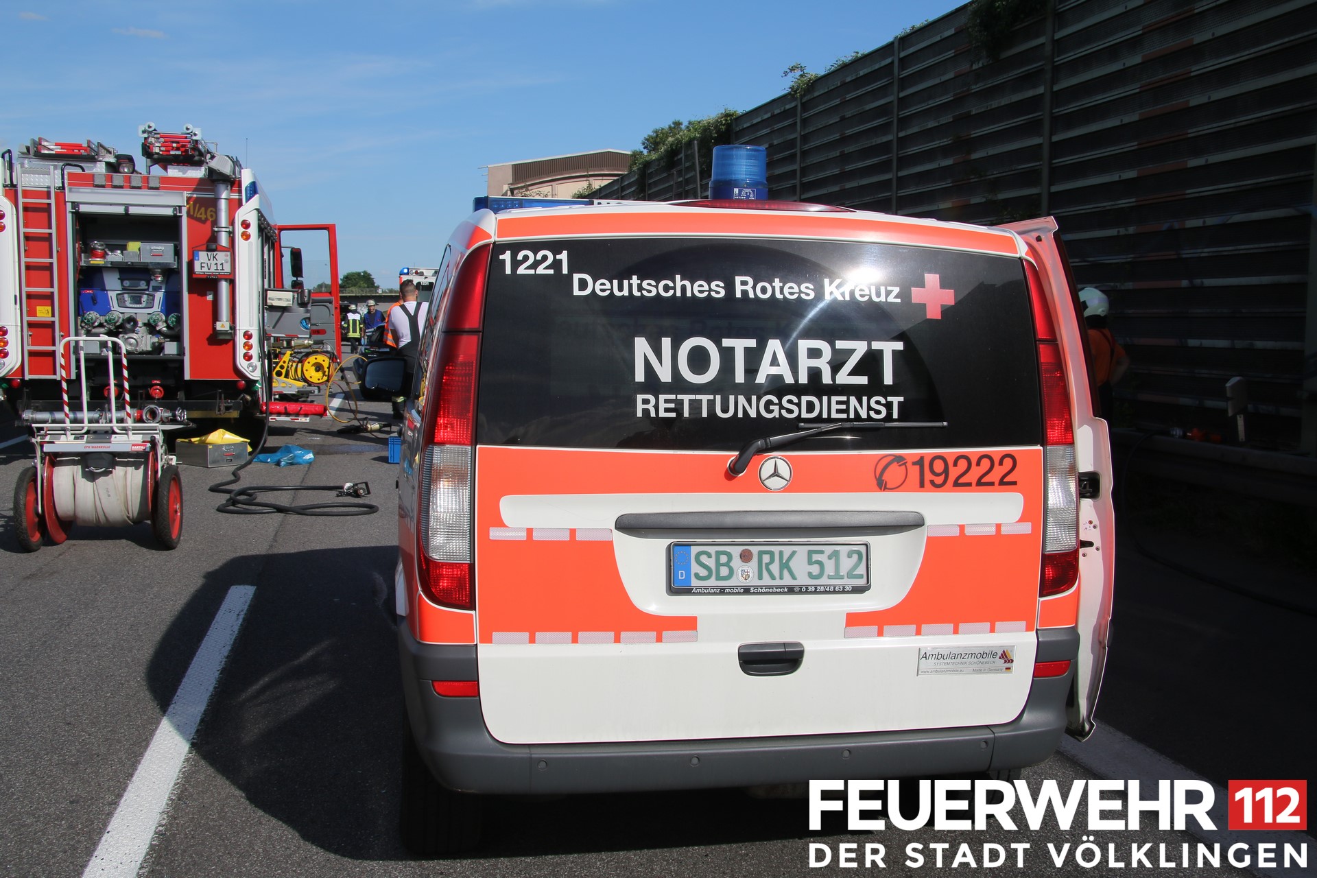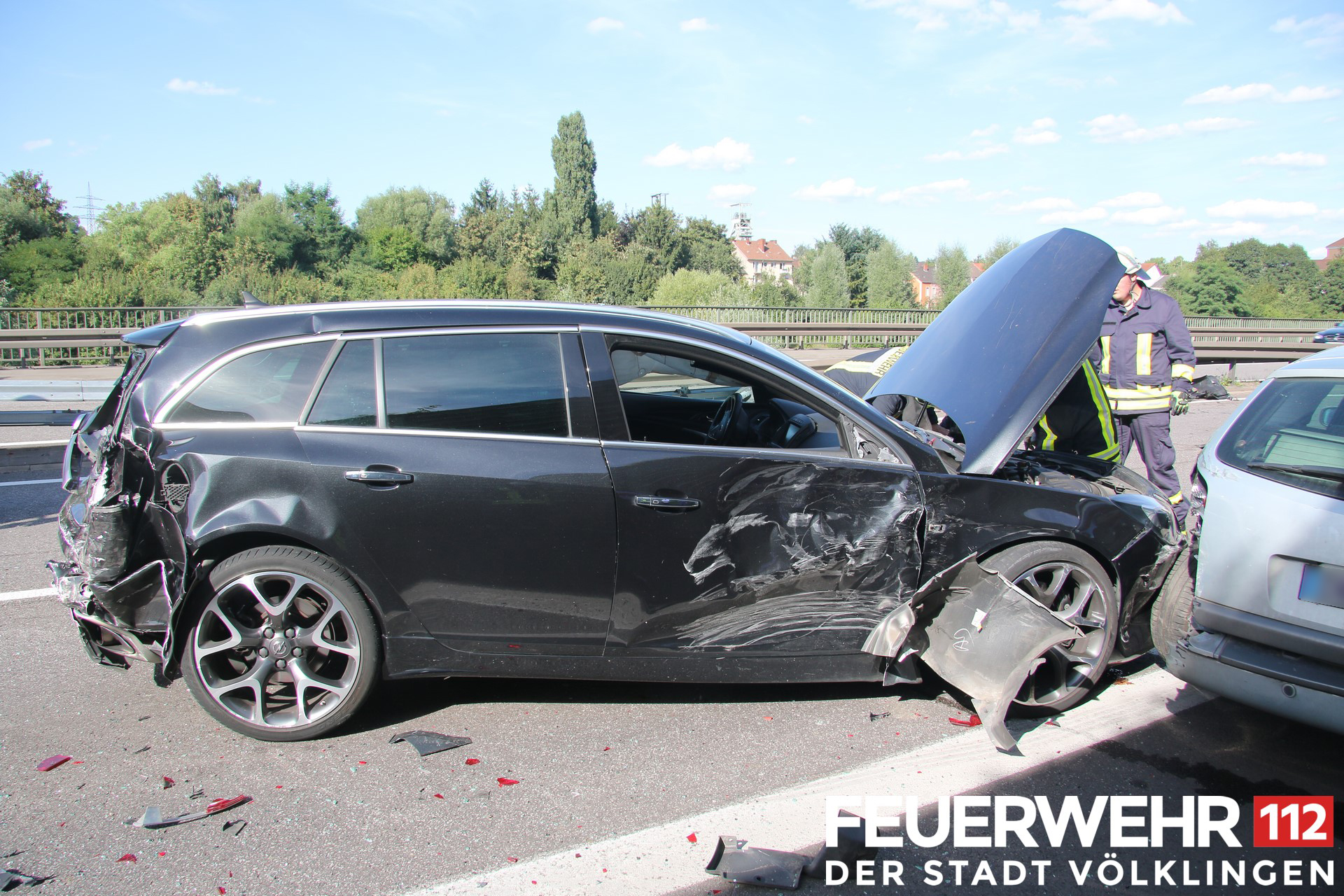 Auf der BAB 620 in Fahrtrichtung Saarbrücken kam es zu einem schweren Verkehrsunfall in Höhe der Ausfahrt Klarenthal mit fünf PKW. Beim Eintreffen der Feuerwehr konnten sich bereits die Insassen aus vier Fahrzeugen befreien. Diese waren leicht verletzt und wurden durch den alarmierten Rettungsdienst betreut. Im fünften Fahrzeug war eine Person eingeklemmt. Die Einsatzkräfte sicherten die Einsatzstelle ab, schalteten die Fahrzeuge stromlos und nahmen die auslaufenden Betriebsstoffe mit Bindemittel auf. Weiterhin wurde der Brandschutz sichergestellt. Der verunfallte Fahrzeugführer musste mittels Schere und Spreizer aus seinem Fahrzeug befreit werden. Nach Übergabe an den Rettungsdienst wurde er notärztlich versorgt. Nach erfolgloser Reanimation verstarb dieser noch an der Unfallstelle. Die Autobahn war im Verlauf der Rettungsmaßnahmen voll gesperrt. Der Einsatz der Feuerwehr dauerte ca. zwei Stunden.