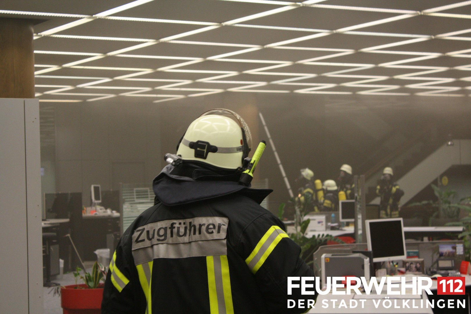Die Feuerwehr wurde zu einer starken Rauchentwicklung aus einem Schacht in einem Gebäude alarmiert. Die Einsatzkräfte erkundeten das Innere des Gebäudes unter schwerem Atemschutz. Dabei wurde eine defekte portable Klimaanlage als Ursache ausgemacht. Durch einen Schmorbrand wurden in Folge auch die Lüftungsschläuche in Brand gesetzten und verschmorten zum großen Teil. Die Einsatzkräfte verbrachten die Klimaanlage nach Draußen und entlüfteten das Gebäude anschließend. Während des Einsatzes wurde die Bismarckstraße vollständig gesperrt.
