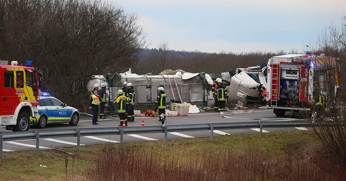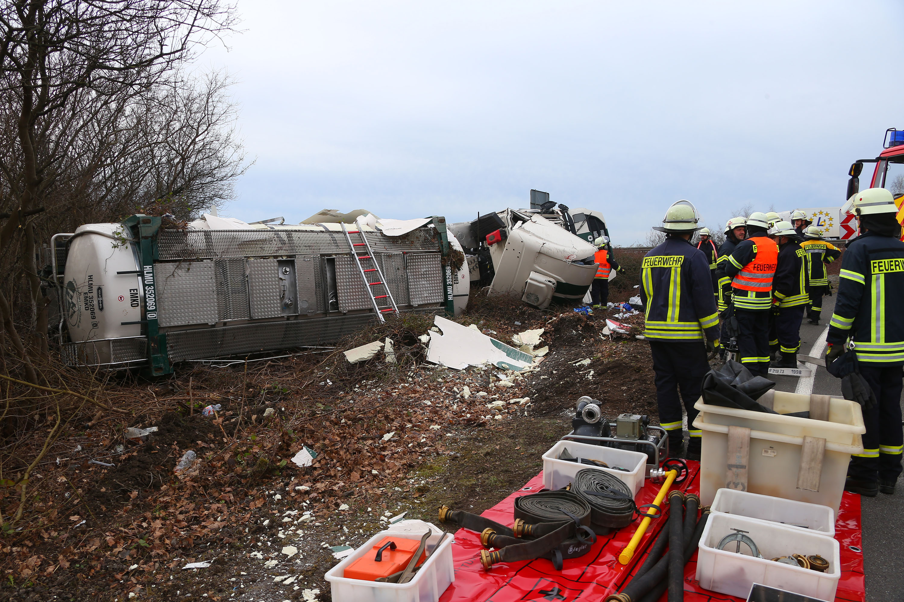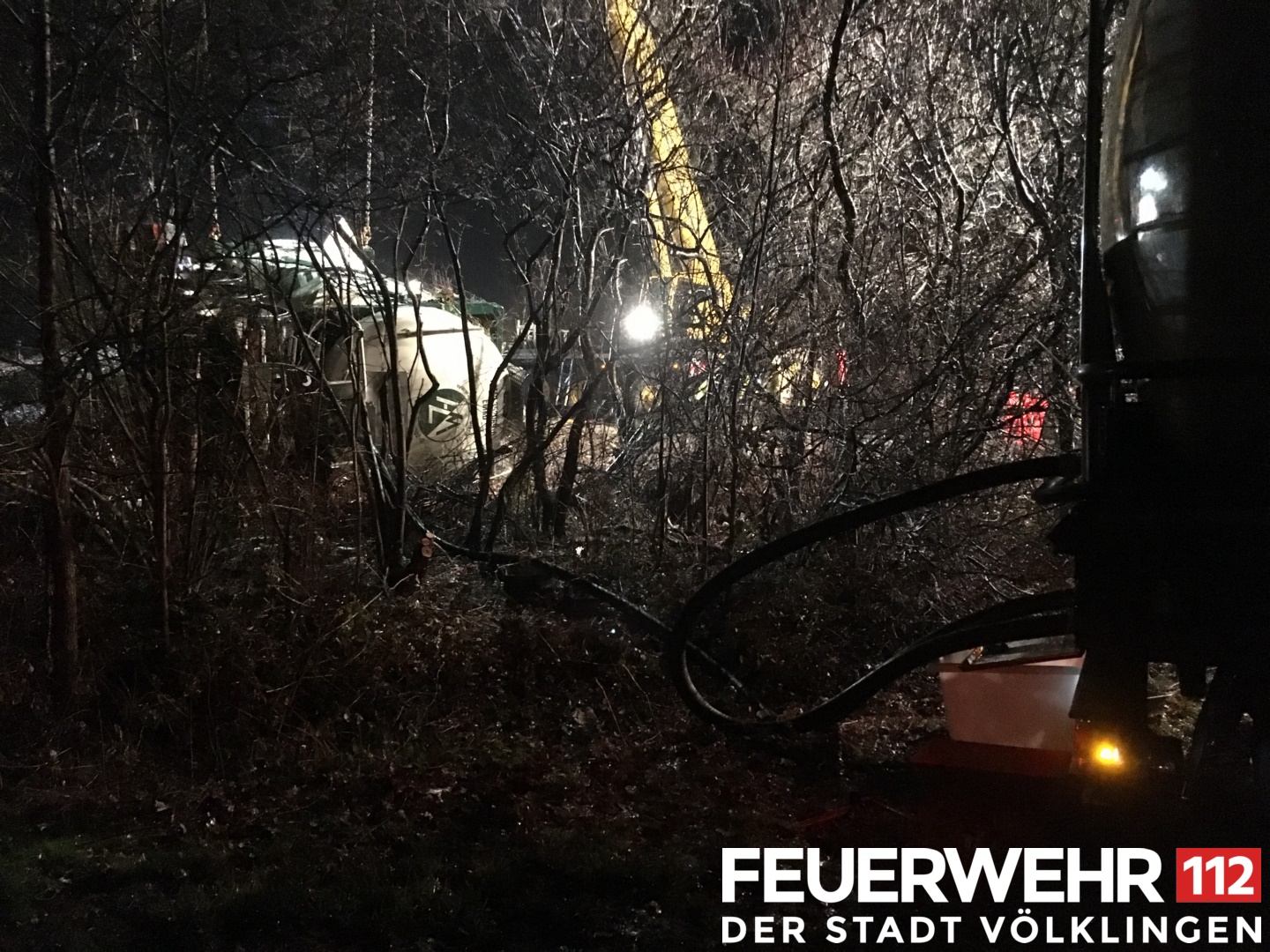 Die Gefahrstoffeinheit der Feuerwehr Völklingen wurde zur Unterstützung der Feuerwehr Friedrichsthal zu einem verunfallten Gefahrgut LKW gerufen. Gegen 10.30 Uhr ist dieser auf der Überleitung von der A 623 zur A 8 in Fahrtrichtung Luxemburg verunfallt. Da die Ladung, welche aus 23 Tonnen "2-Ethyl-Hexyl-Acrylat" bestand, in einen Ersatz-LKW umgepumpt werden musste, übernahmen die Mitglieder der Gefahrstoffeinheit die Absicherung des Umpumpvorgangs, um im Falle eines Stoffaustritts sofort eingreifen zu können.