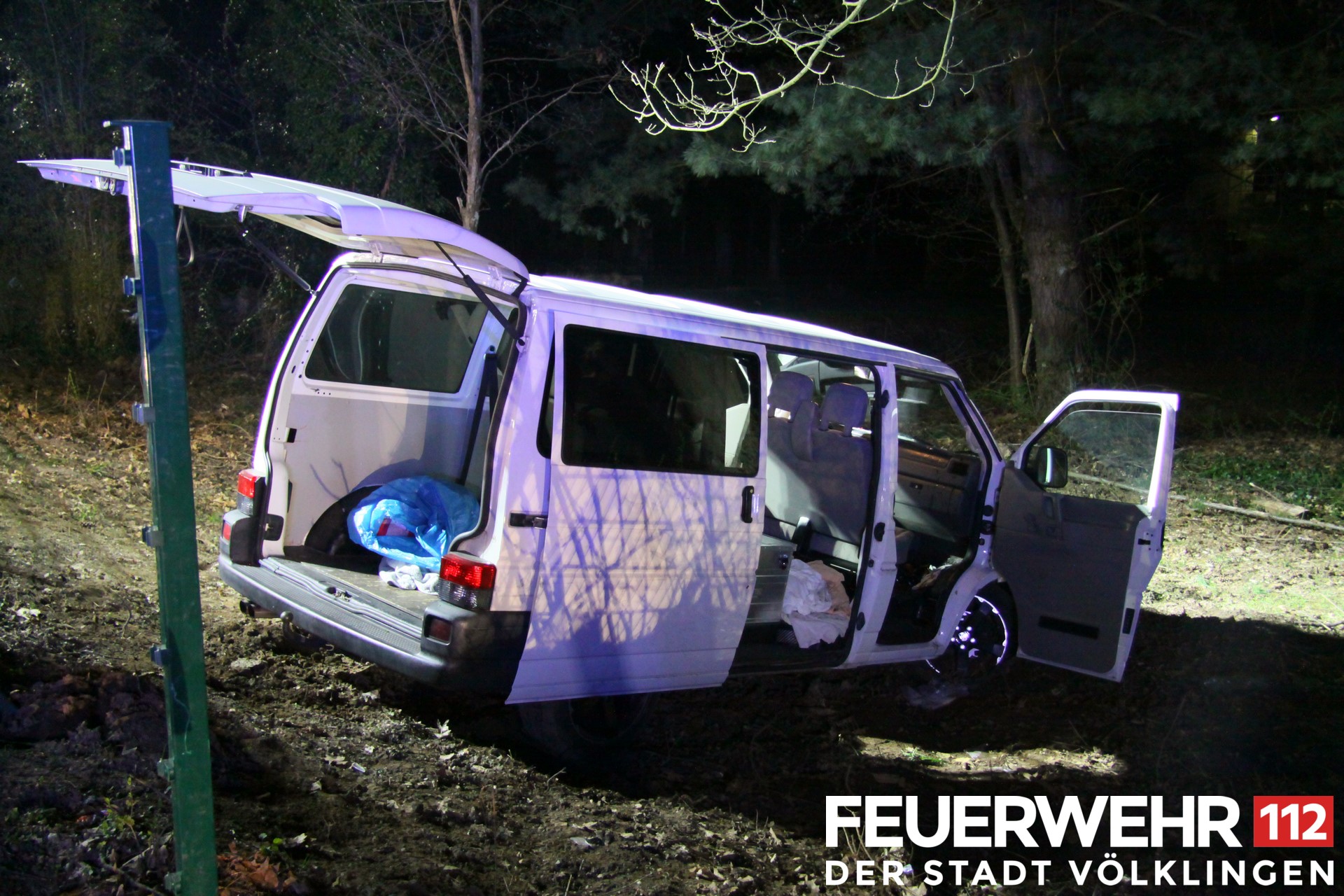 Ein Fahrzeug kam von der Straße ab und kam nach Durchbrechen eines Zauns und Kollision mit einem Verkehrsschild in einem Wiesenstück zum Stehen. Die Einsatzstelle wurde in Verbindung mit der Polizei gesichert. Eine Person trug bei dem Unfall Verletzungen davon und wurde dem Rettungsdienst übergeben. Da zu Einsatzbeginn ein Fahrzeuginsasse vermisst wurde, wurde das angrenzende Waldstück durch die Einsatzkräfte von Feuerwehr und Polizei abgesucht. Weiterhin wurde die Drehleiter in Stellung gebracht, um mittels Wärmebildkamera das umliegende Gebiet abzusuchen. Nach Rückmeldung der Polizei, dass keine weitere Insassen bei dem Unfall beteiligt war, wurden die Suchmaßnahmen abgebrochen. Nach Bergung des verunfallten Fahrzeugs durch ein Abschleppunternehmen konnte die Einsatzstelle an die Polizei übergeben werden.