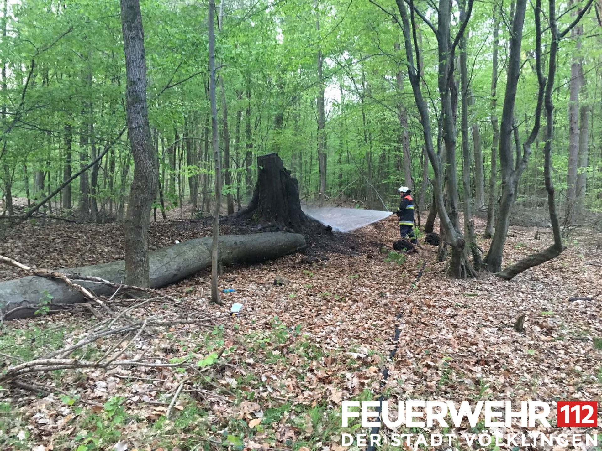 Die Feuerwehr wurde zum Schwelbrand eines Baumstumpfes im Wald alarmiert. Dieser wurde von einem Spaziergänger entdeckt und gemeldet. Mittels Druckschlauch S wurde der Brand abgelöscht.