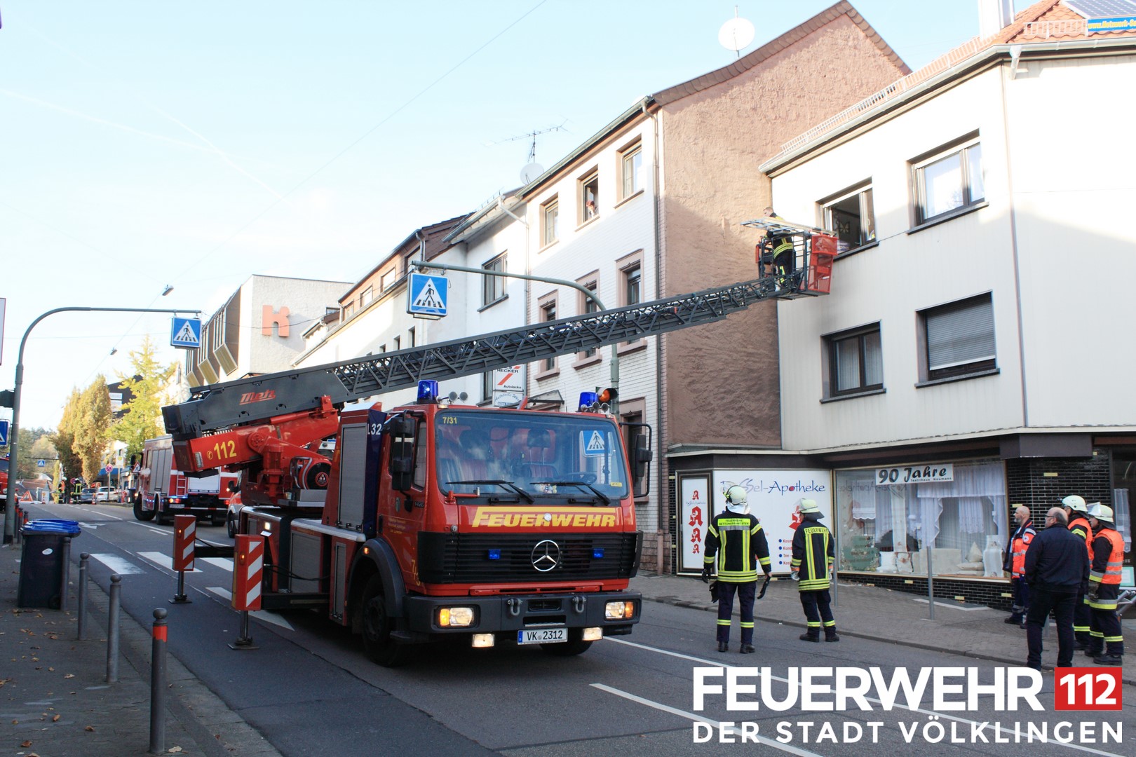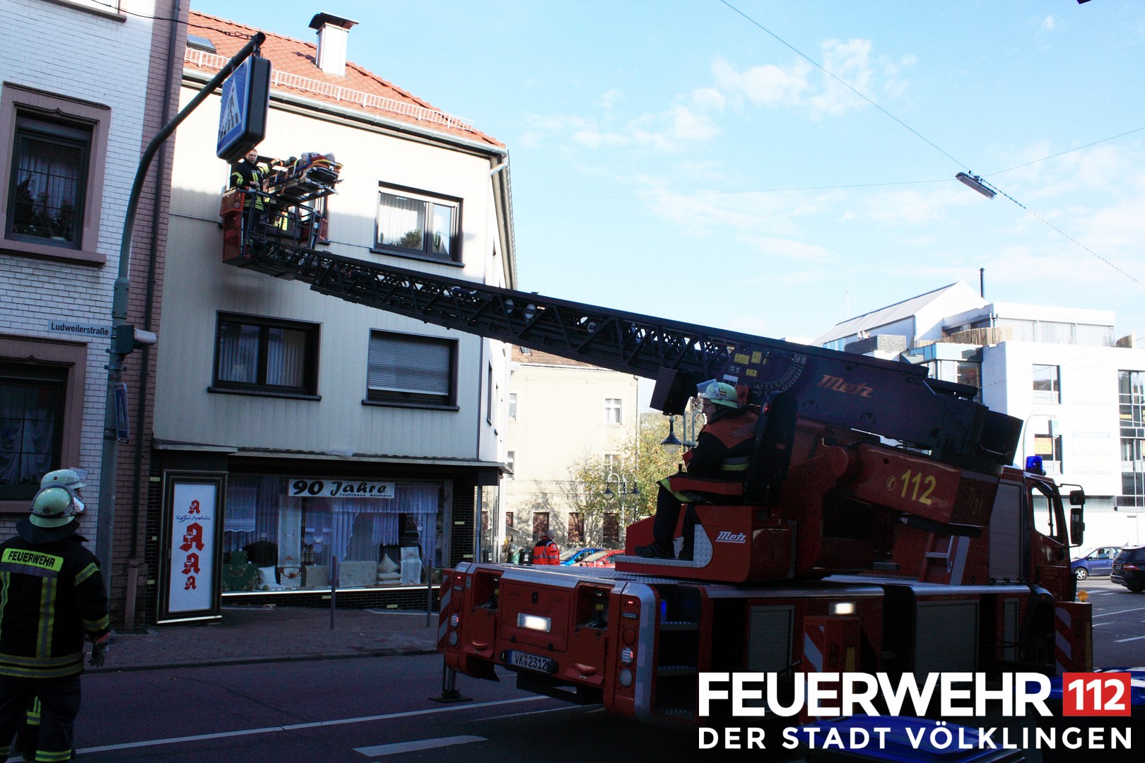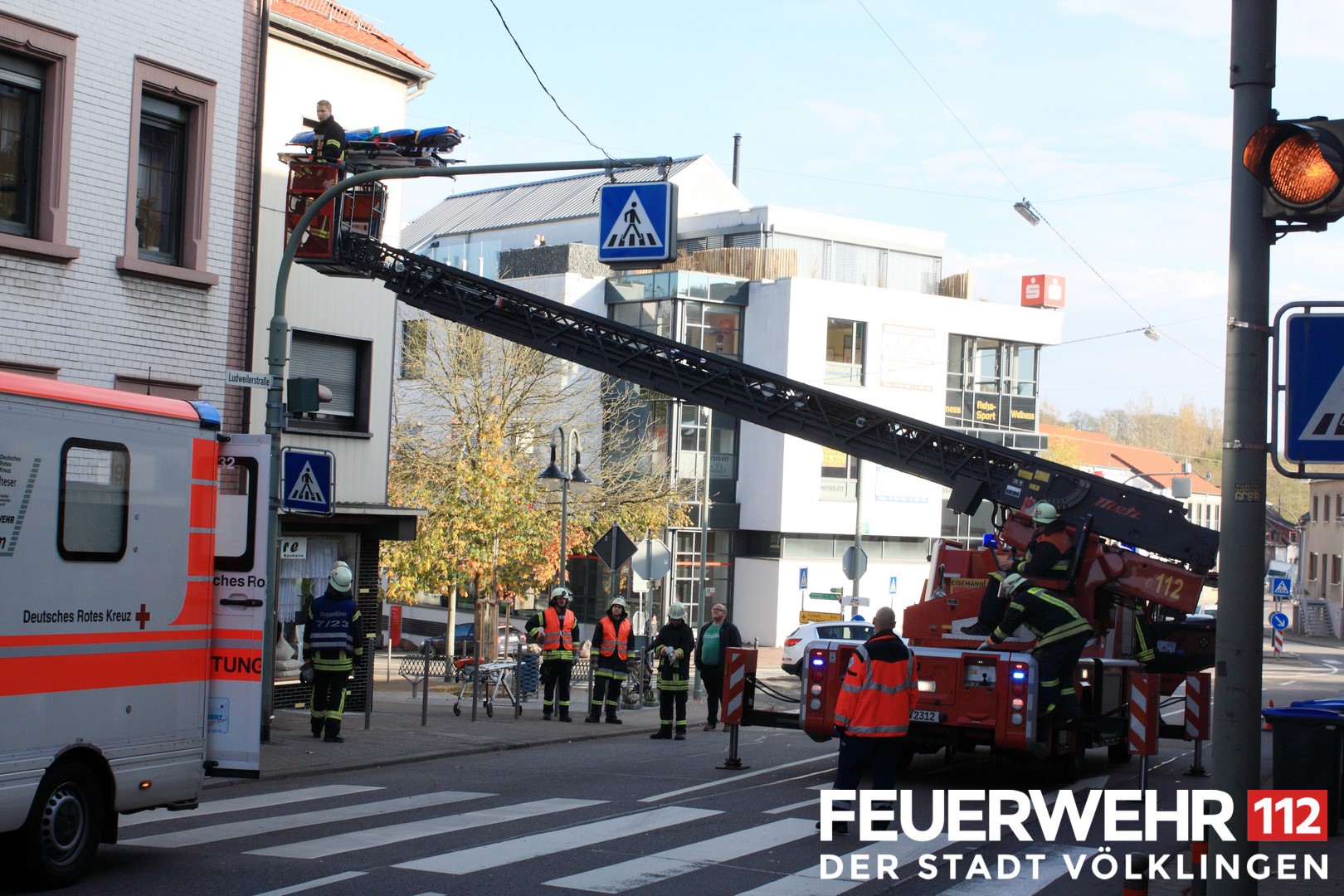 Die Feuerwehr wurde zur Unterstützung des Rettungsdienstes nach Großrosseln gerufen. Die Einsatzkräfte retteten die Person über die Drehleiter. Anschließend wurde die Person an den Rettungsdienst übergeben.