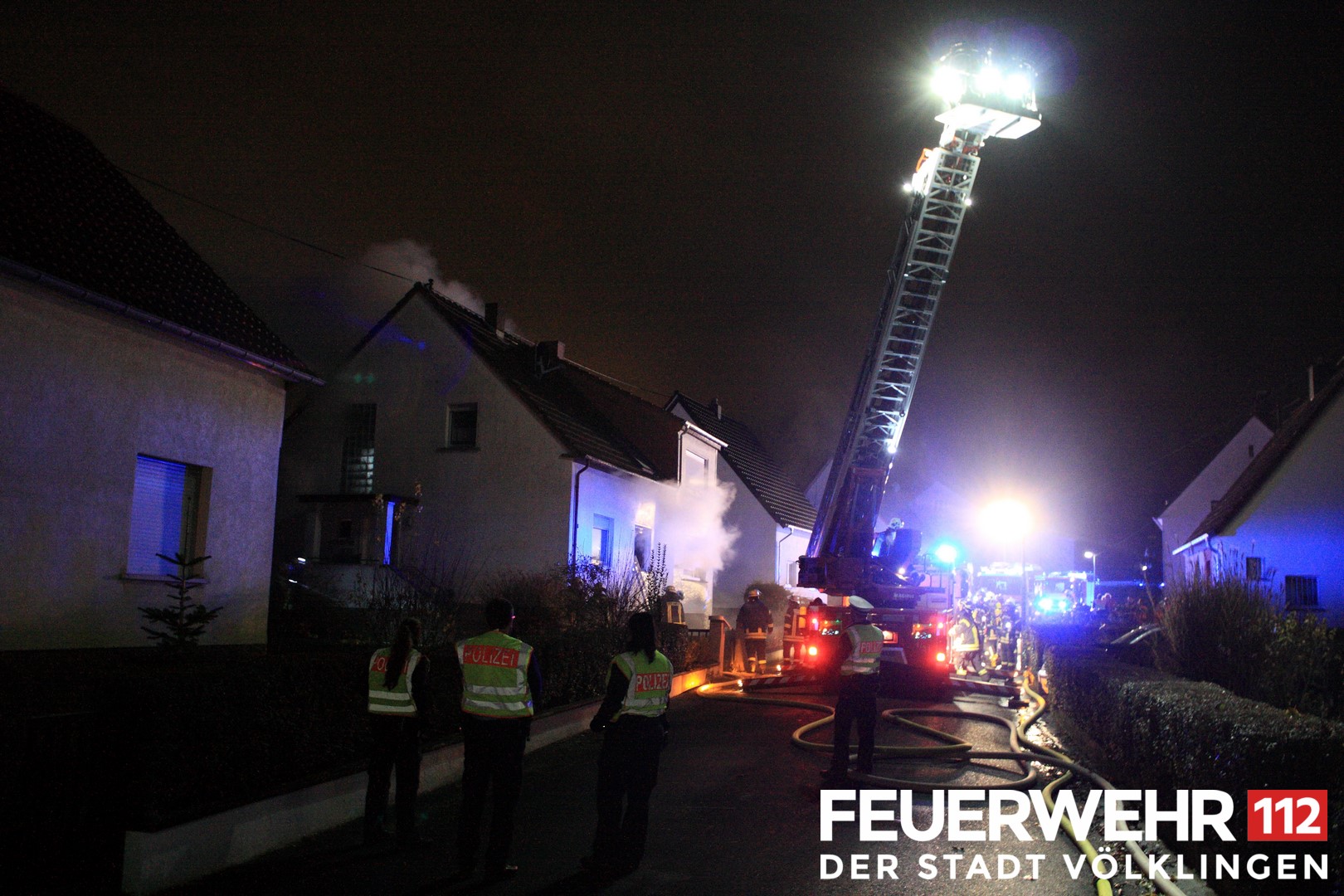 In einem Wohnhaus kam es zu einem ausgedehnten Brand im Erdgeschoss. Beim Eintreffen der Einsatzkräfte schlugen bereits Flammen aus dem Gebäude, das Innere war komplett verraucht. Da ein Bewohner zu diesem Zeitpunkt vermisst war, wurde sofort mit der Personensuche im Gebäude begonnen. Hierzu wurde ein Zugang durch ein Fenster auf der Gebäudefront geschaffen. Parallel dazu wurde ein Löschangriff über Vorder- und Rückseite aufgebaut. Die vermisste Person konnte trotz des Einsatzes von sechs Atemschutztrupps nur noch tot geborgen werden. Nach Abschluss der Löschmaßnahmen kam das alarmierte THW zum Einsatz. Durch die Helfer wurde die Einsatzstelle ausgeleuchtet und das Gebäude gesichert. Die Einsatzstelle konnte nach Abschluss aller Maßnahmen an die Kriminalpolizei übergeben werden.