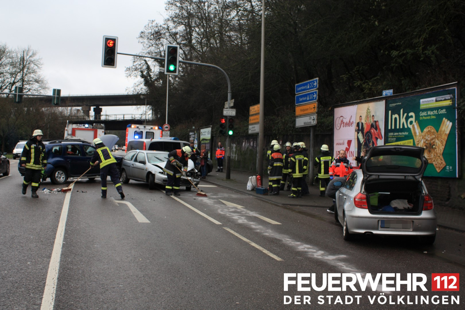 Im Kreuzungsbereich von Ludweilerstraße und Hallerstraße kam es zu einem Verkehrsunfall zwischen 3 PKW. Bei Eintreffen der Feuerwehr wurden die verletzten Personen bereits durch den Rettungsdienst versorgt. Die Einsatzkräfte stellten den Brandschutz sicher, schalteten die Fahrzeuge stromlos und nahmen ausgelaufene Betriebsstoffe auf. Anschliessend wurde die Einsatzstelle an die Polizei übergeben.