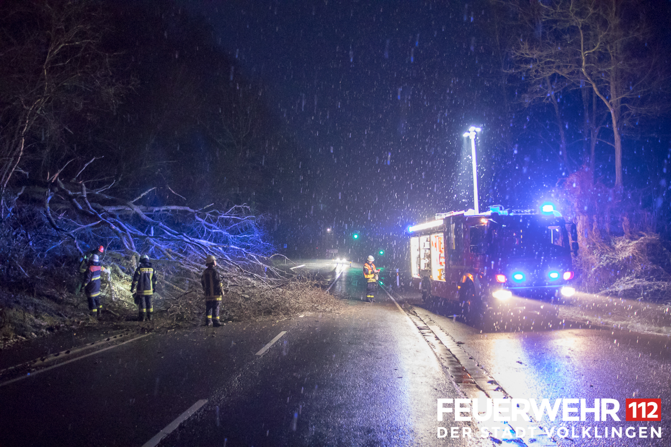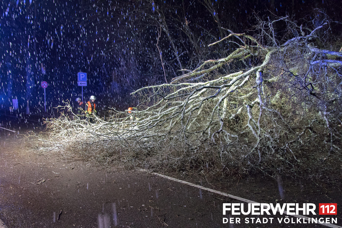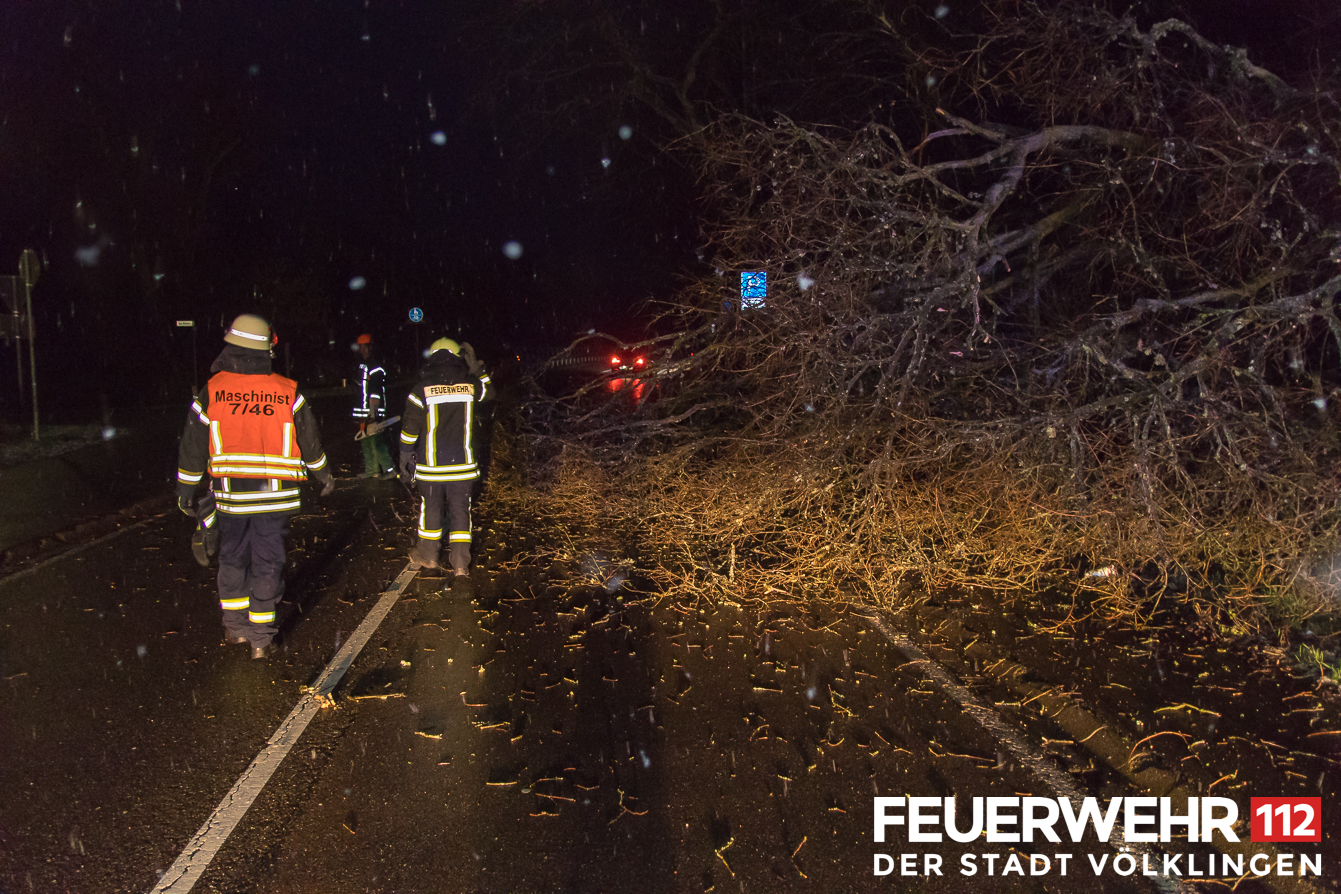 Ein Baum war auf die Fahrbahn gestürzt. die Einsatzkräfte beseitigten den Baum mittels Kettensäge und verbrachten diesen an den Straßenrand.