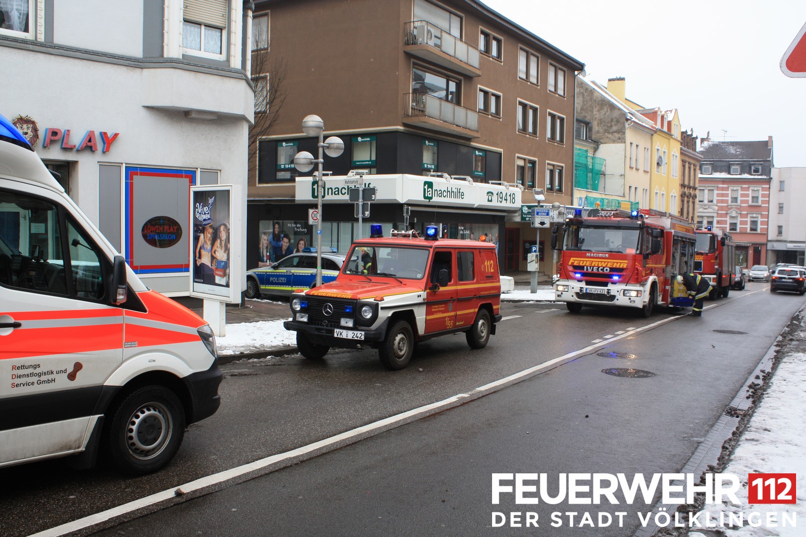 Die Feuerwehr wurde wegen eines Wasserschadens gerufen. An der Einsatzstelle konnte in einem Obergeschoss eine geborstene Fernwärmeleitung ausgemacht werden. Das ausgetretene Wasser war bereits durch die Decken in die beiden darunter liegenden Etagen gelaufen. Eine Wohnungsinhaberin wurde leicht verletzt dem Rettungsdienst übergeben und zur weiteren Behandlung in ein Krankenhaus verbracht. Das gesamte Gebäude wurde vorsorglich evakuiert. Die Anwohner wurden bis zur Klärung der weiteren Unterkunft in einem Bus der Stadtwerke betreut. In der oberen Etage kam es durch das Wasser zum Einsturz der Zwischendecke. Nach Abschiebern der Fernwärmeleitung und Abstellen des Stromes wurde das Wasser mit mehreren Wassersaugern beseitigt. Um den Schaden am Gebäude zu beurteilen wurde vom THW ein "Fachberater-Bau" angefordert. Dieser stellte fest, dass es in einer der Decken durch das ausgetretene Wasser zu massiven Schäden gekommen war. Vorsorglich wurde das THW Völklingen zum Abstützen der in Mitleidenschaft gezogenen Decke alarmiert. Nach Beendigung der Arbeiten des THW wurde die Einsatzstelle an die Polizei übergeben.
