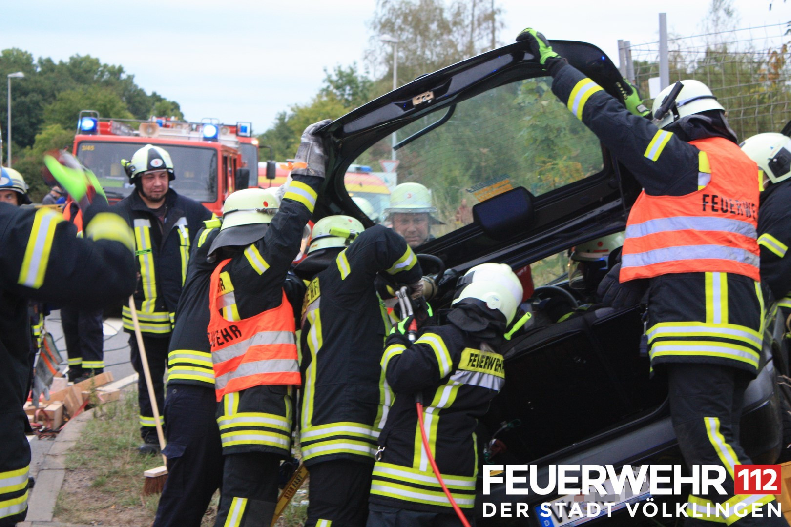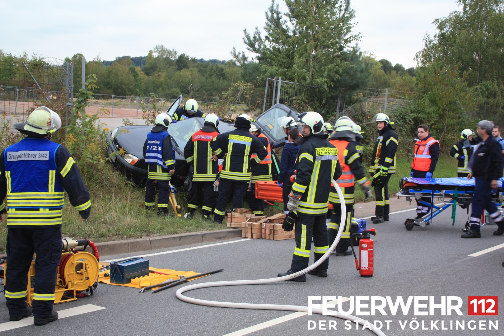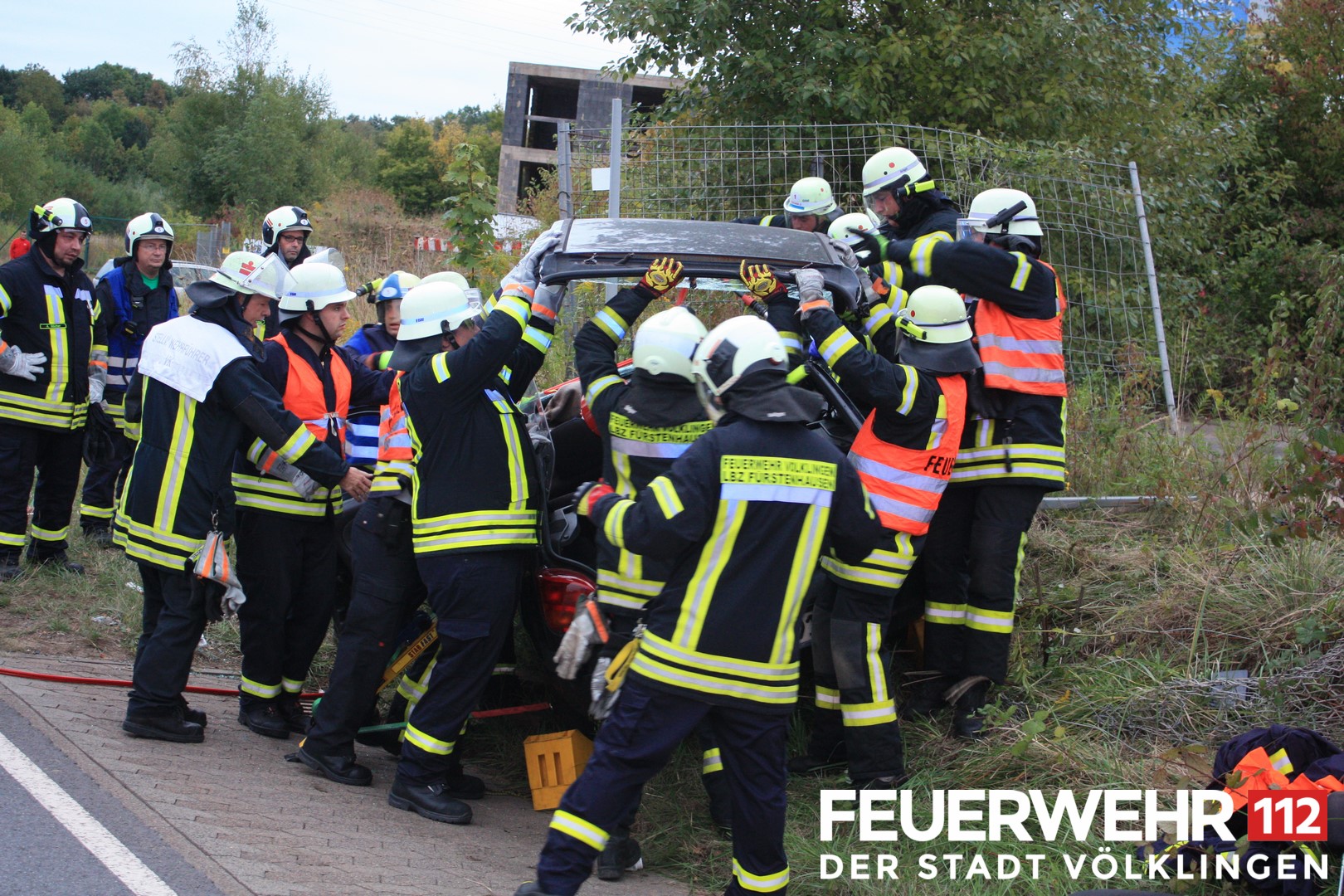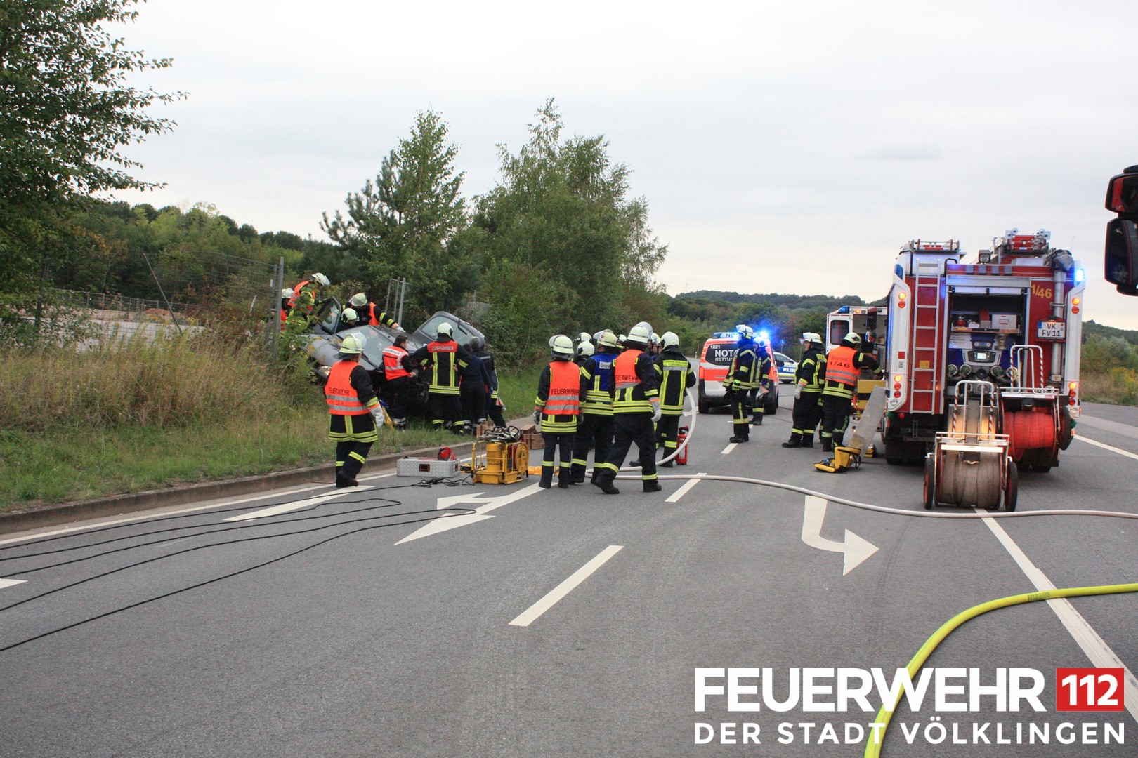 Auf der L163 zwischen Velsen und Fenne kam es zu einem Alleinunfall eines PKW. Die Einsatzkräfte öffneten die Tür des Fahrzeuges zur ersten Behandlung durch den Rettungsdienst und sicherten das Auto gegen Erschütterungen und Abrutschen ab. Der Brandschutz wurde sichergestellt und die Straße voll gesperrt. Anschließend wurde auf Anweisung eine patientengerechte Rettung durchgeführt. Hierfür wurde zuerst die Heckklappe und danach das Dach des verunfallten Fahrzeuges entfernt. Danach konnte die Person mit dem Rettungsbrett aus dem PKW gehoben und dem Rettungsdienst übergeben werden.