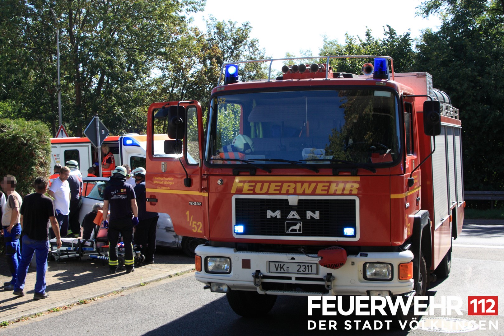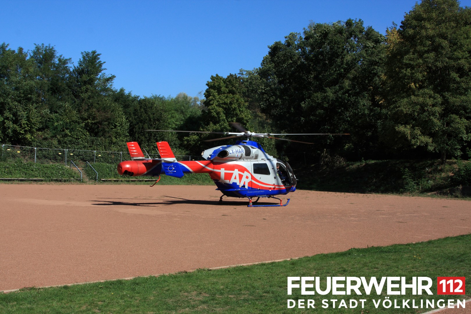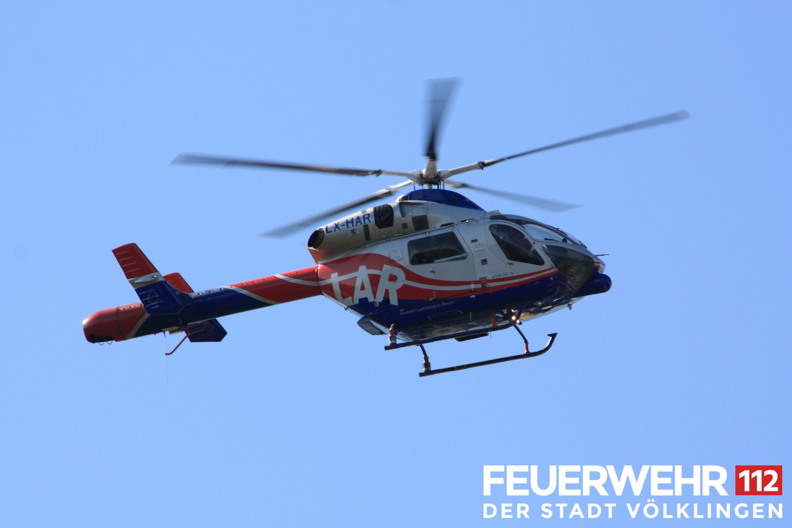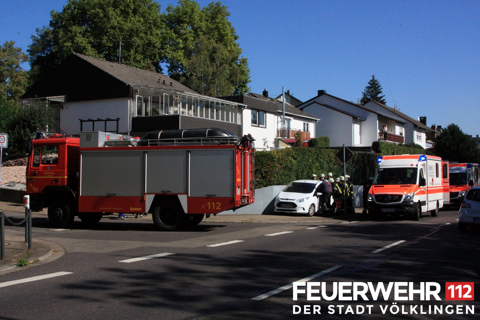 Der Feuerwehr wurde ein Verkehrsunfall mit 2 eingeklemmten Personen gemeldet. Bei Eintreffen der Einsatzkräfte wurde lediglich festgestellt, dass das verunfallte Fahrzeug an einer Wand stand und deshalb die Beifahrerin nicht aussteigen konnte. Nach Vorschieben des PKW konnten beide Personen dem Rettungsdienst übergeben werden. Aufgrund der angenommenen Lage wurde vorsorglich auch der Rettungshubschrauber Air Rescue 3 aus Luxemburg zur Einsatzstelle beordert.