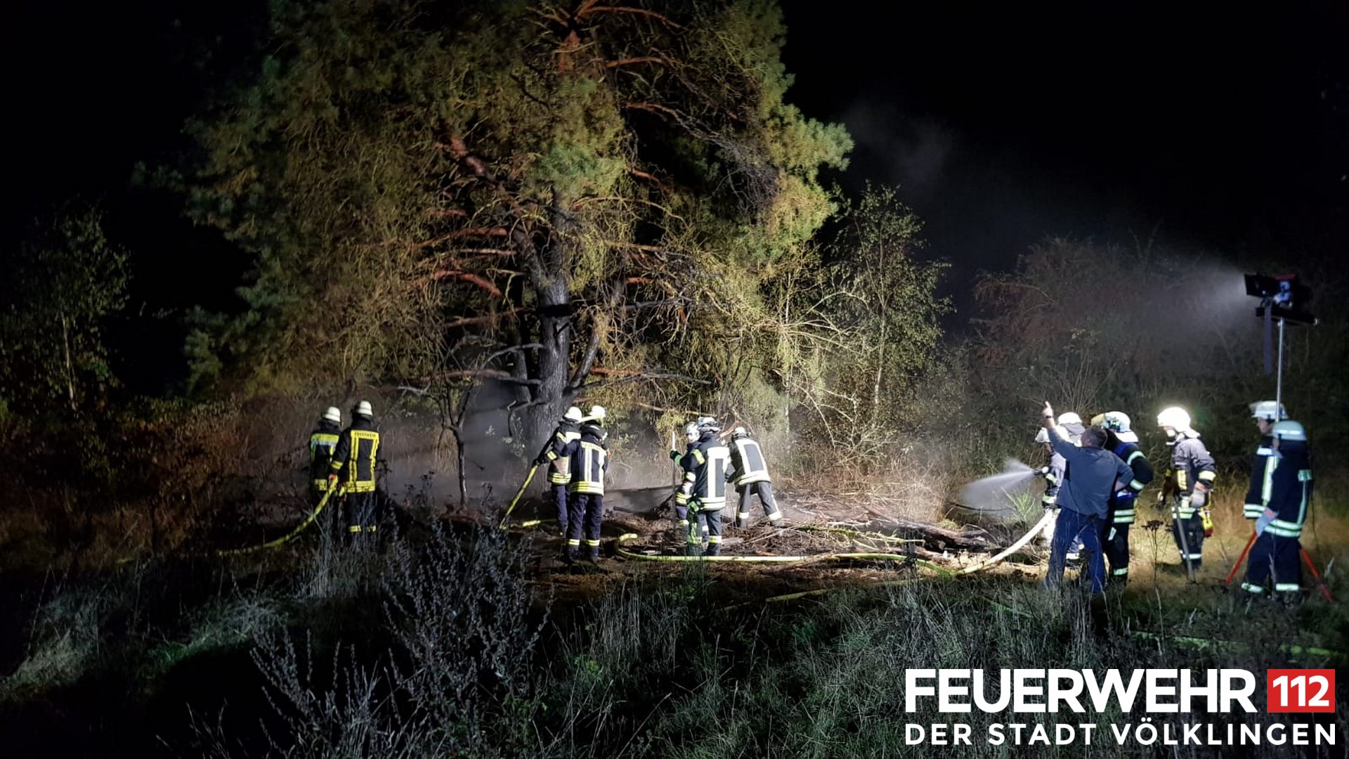 In Bereich hinter der Warndthalle kam es zu einem Flächenbrand. Dieser hatte bereits auf Gestrüpp und Bäume übergegriffen. Die Einsatzkräfte löschten das Feuer mit 3 C-Rohren ab.