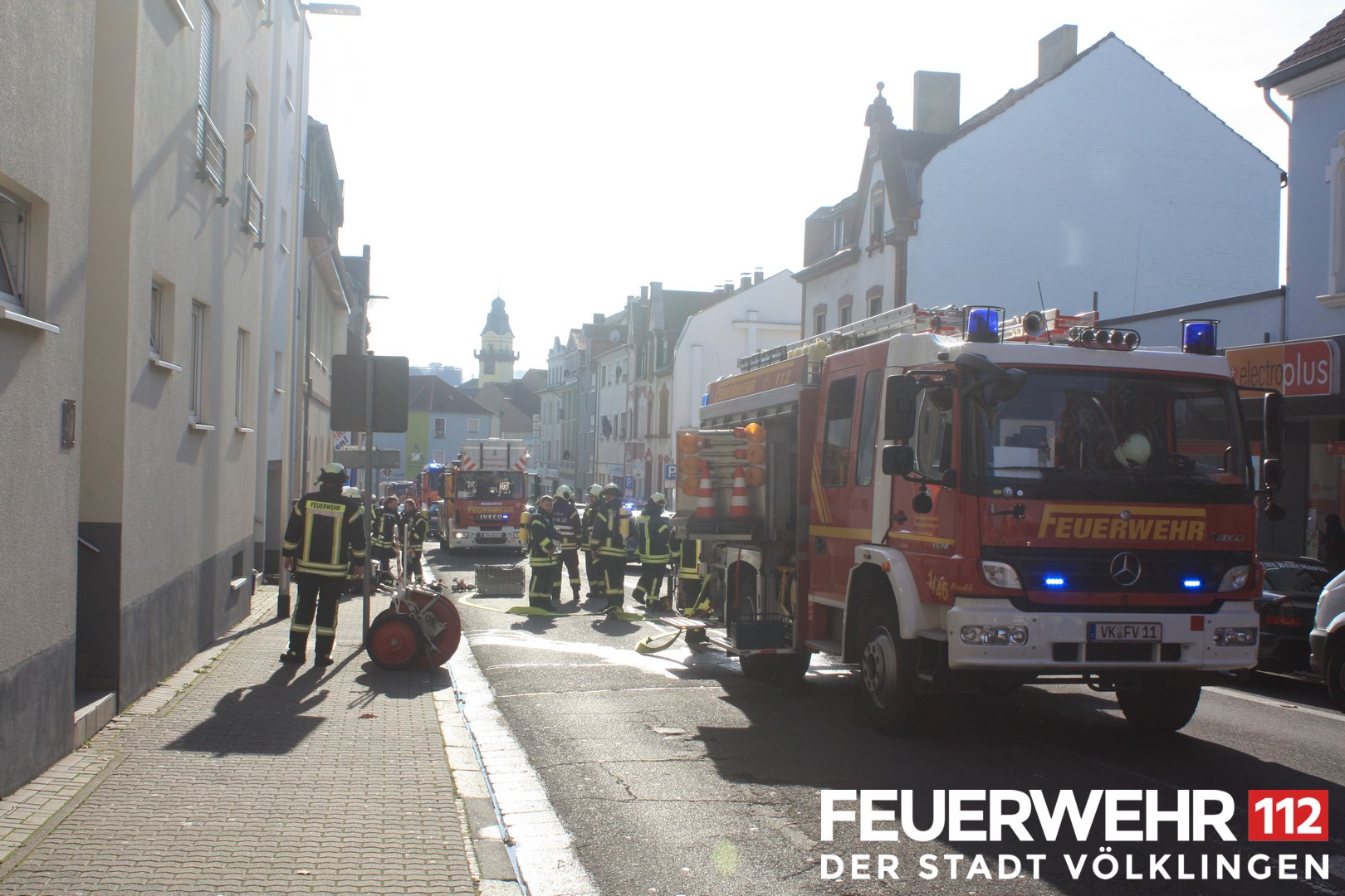 Die Feuerwehr wurde wegen eines Brandes in einem Mehrfamilienhaus alarmiert. Nach Eintreffen an der Einsatzstelle begab sich ein Trupp unter schwerem Atemschutz in das Gebäude zur Branderkundung. Das Gebäude wurde evakuiert und weitere Löschmaßnahmen wurden vorbereitet. Nach Öffnen einer Tür wurde in der dazugehörigen Wohnung eine starke Verrauchung festgestellt. In der dortigen Küche konnte ein kleinerer Brand vorgefunden werden, der mit mitgeführtem Kleinlöschgerät abgelöscht wurde. Aufgrund der Verrauchung wurden Belüftungsmaßnahmen durchgeführt. Anschließend wurde die Einsatzstelle an die Polizei übergeben. Während des kompletten Einsatzes musste die Moltkestraße komplett für den Verkehr gesperrt werden.