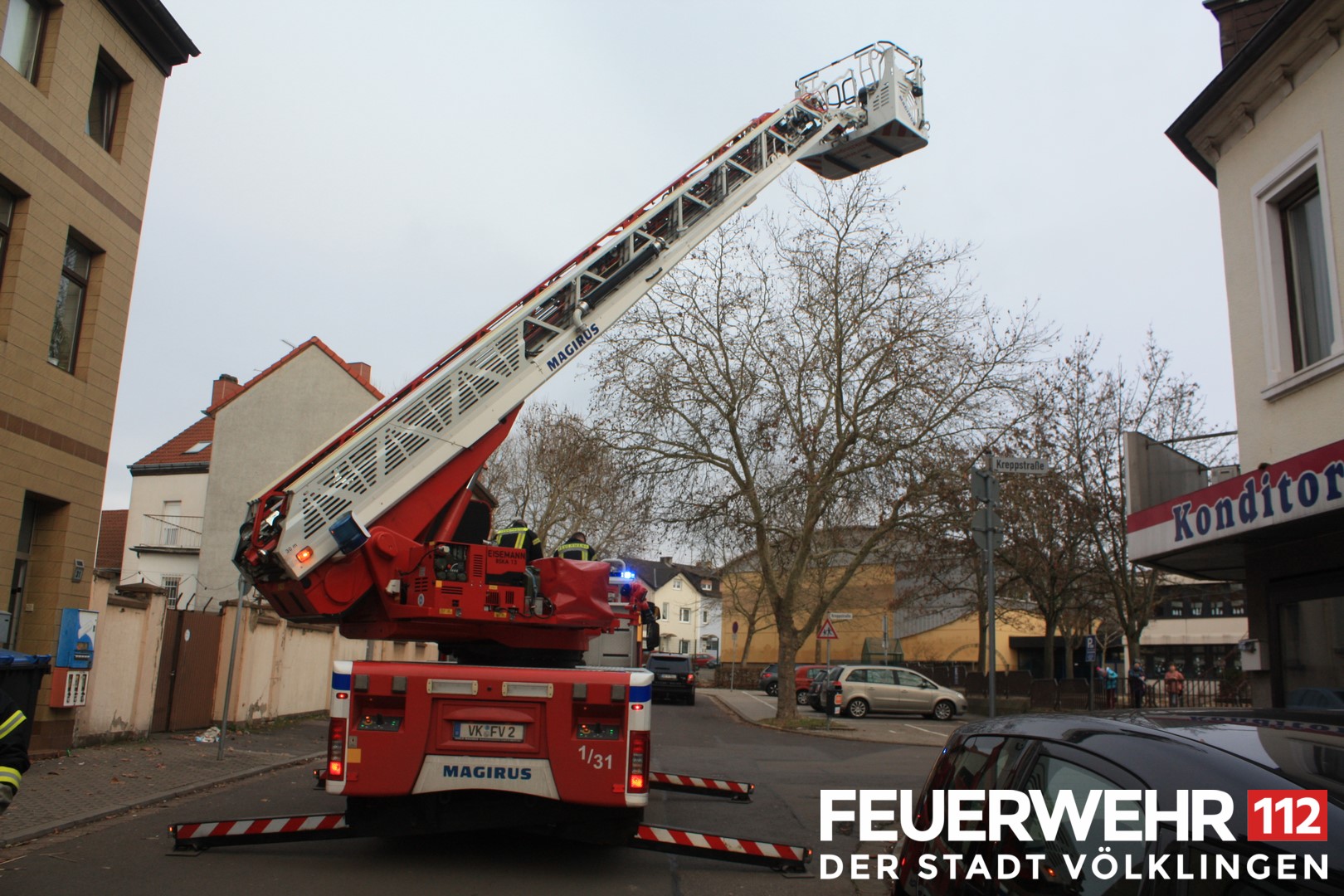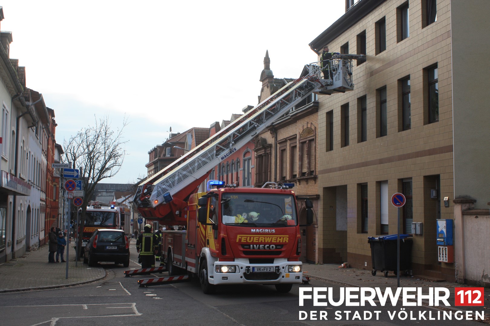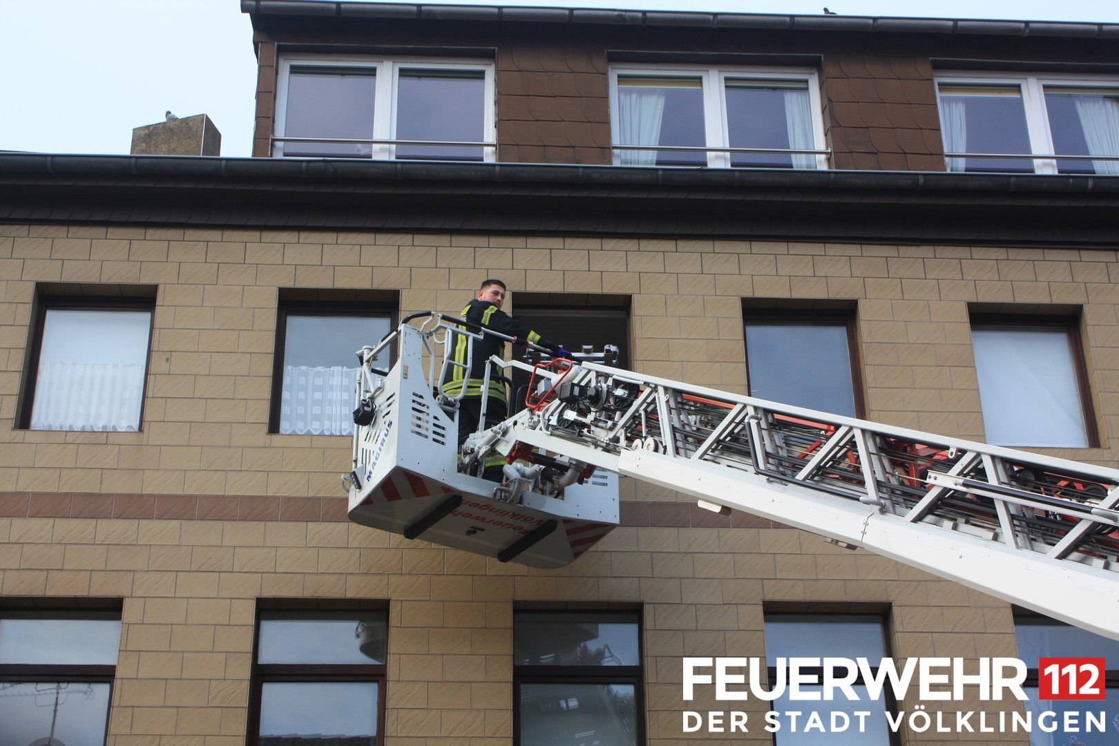 Die Feuerwehr wurde zur Unterstützung des Rettungsdienstes bei einer Personenrettung gerufen. Die Person wurde mittels Drehleiter aus dem 1. Obergeschoss gerettet und anschließend dem Rettungsdienst übergeben.
