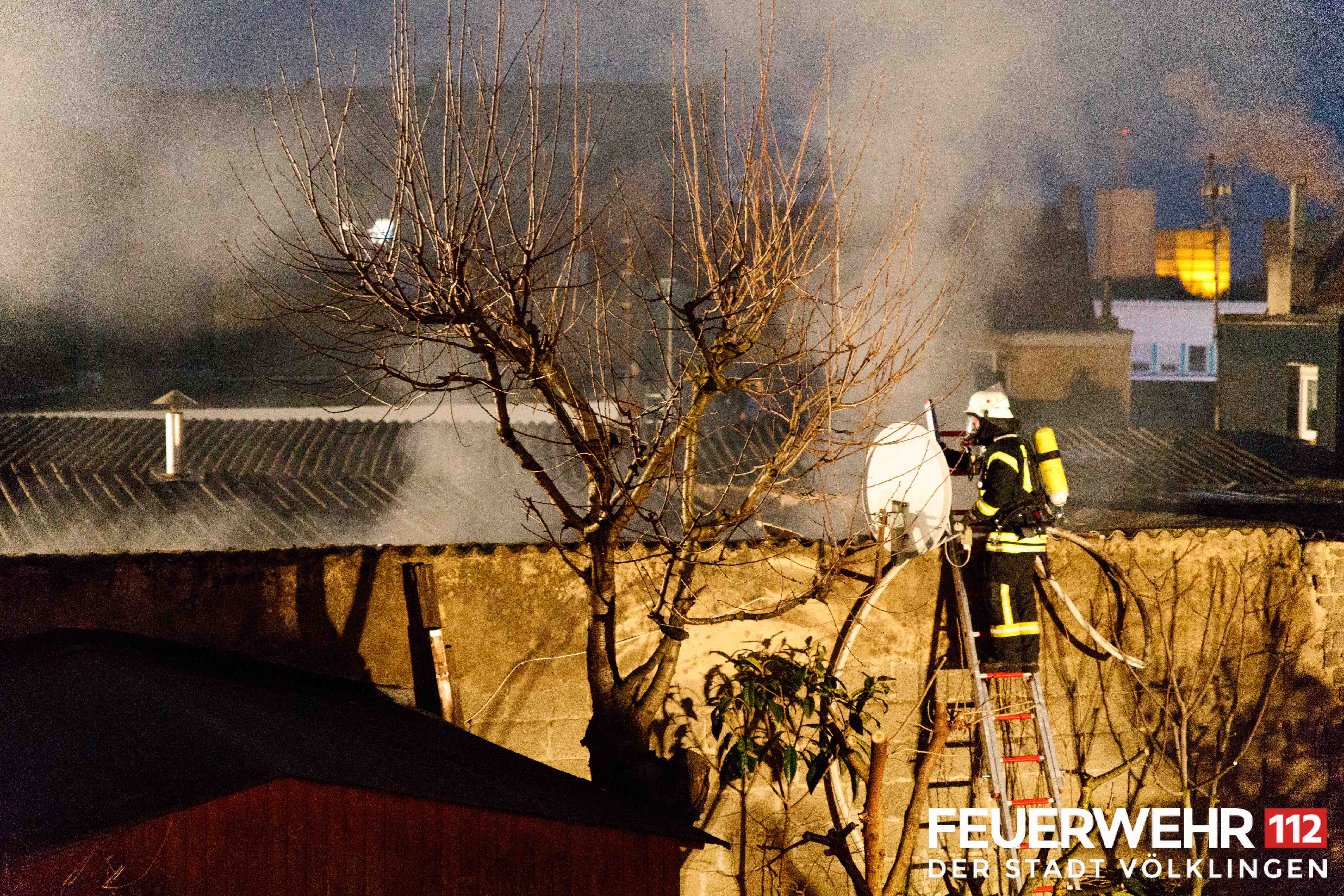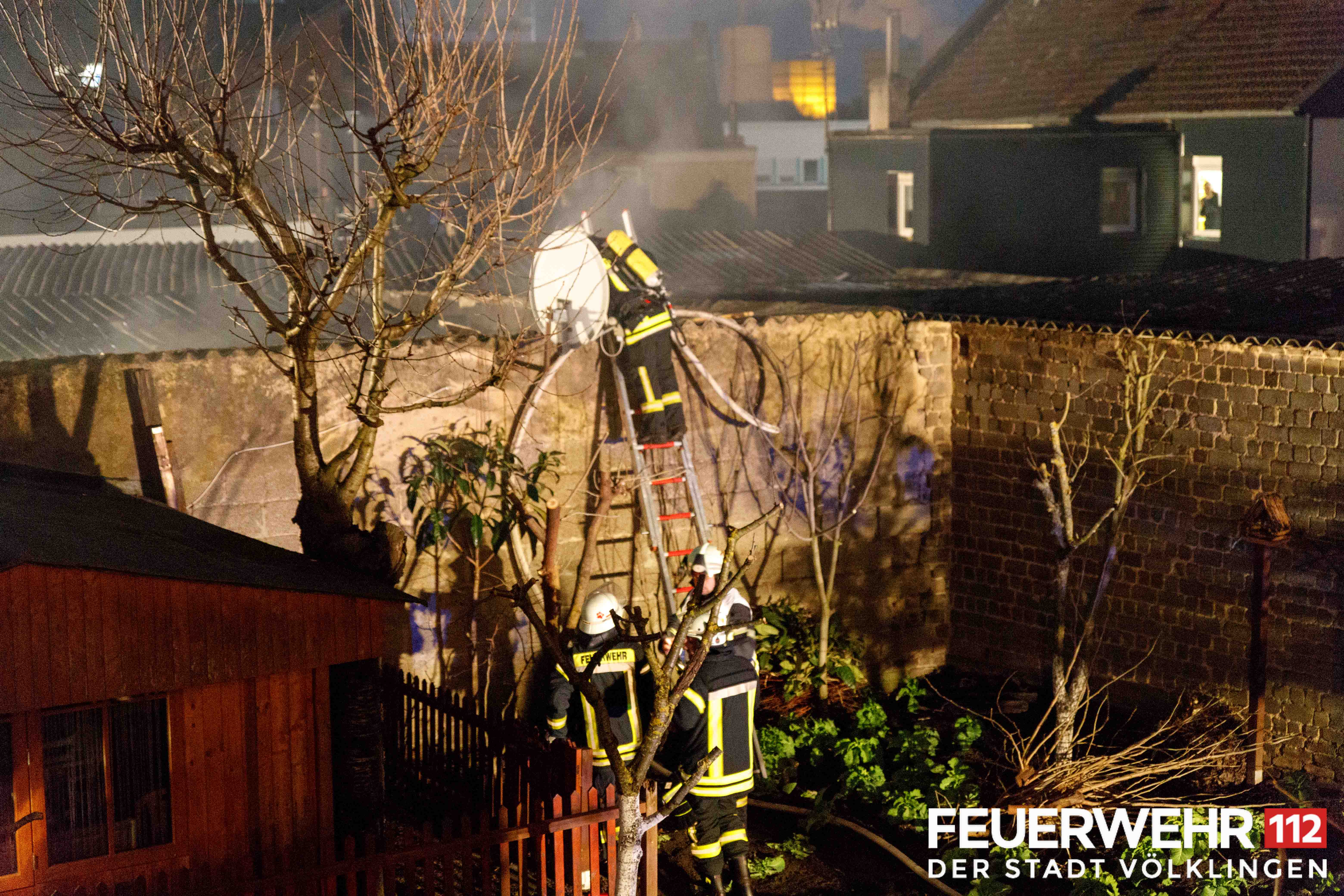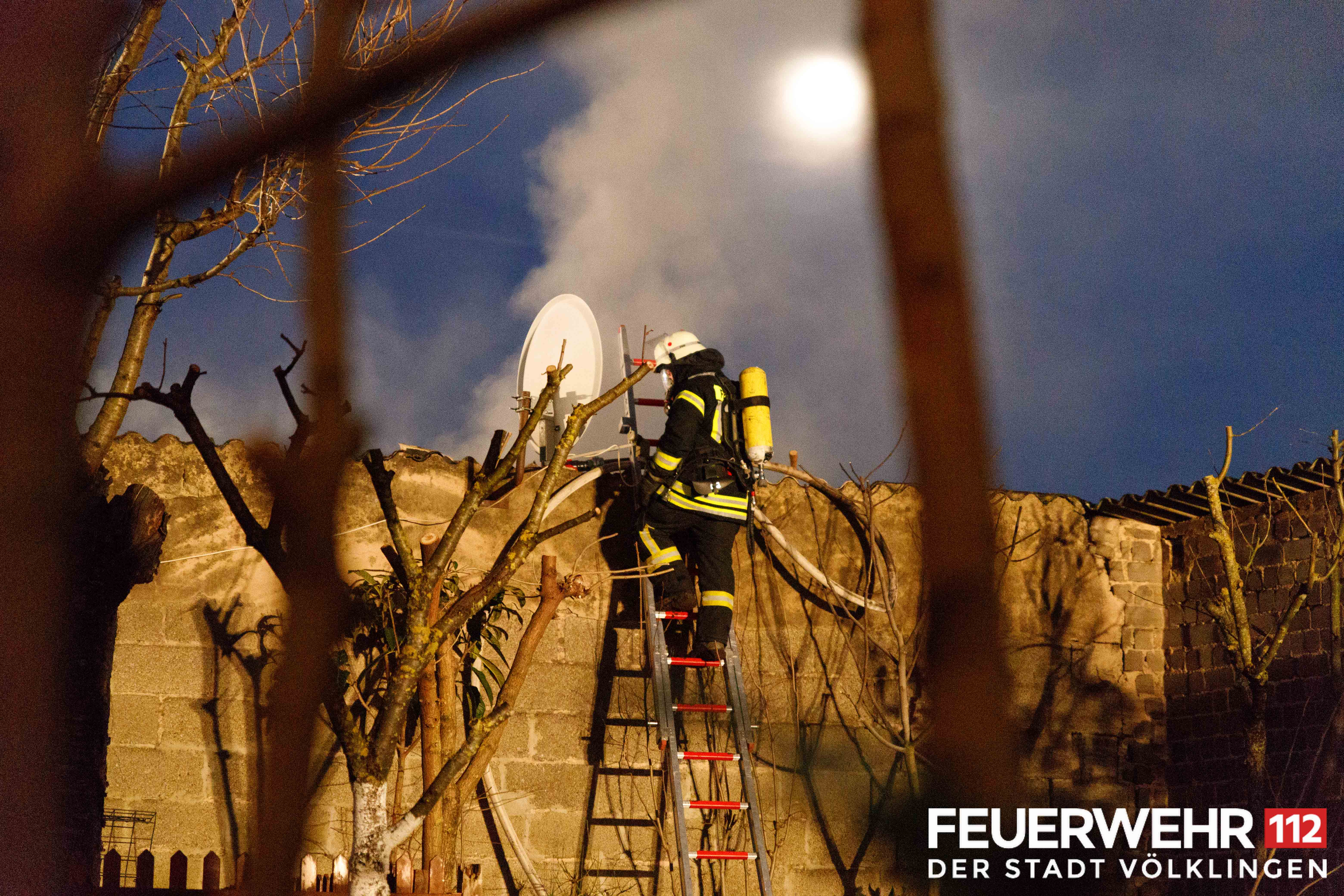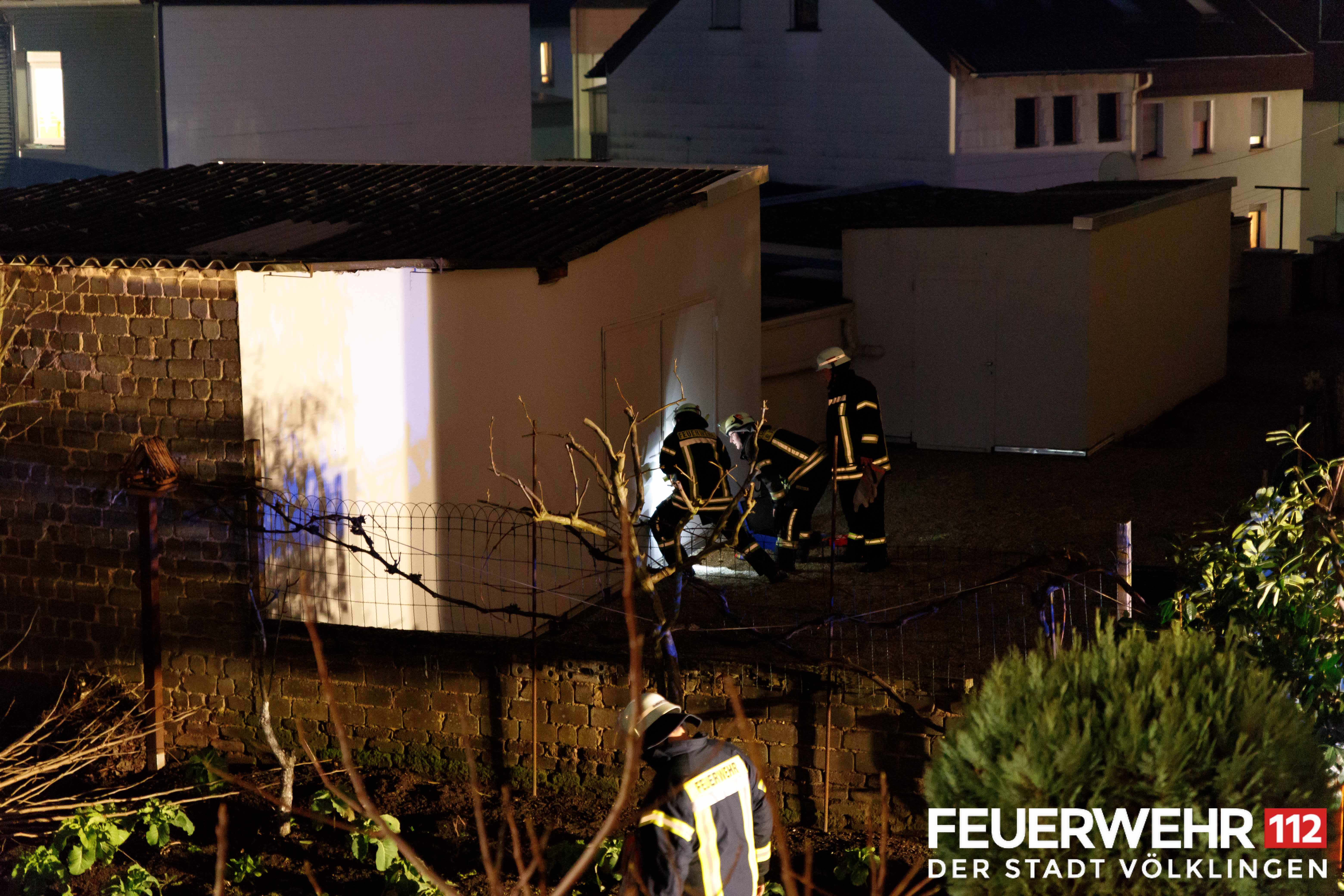 Die Feuerwehr wurde zu einem brennenden Schuppen/Gartenhaus alarmiert. Vor Ort konnte eine starke Rauchentwicklung aus einem zusammenhängenden Hallenkomplex festgestellt werden. Mehrere Trupps unter schwerem Atemschutz verschafften sich über verschiedene Seiten Zugang zum Brandraum. Dabei wurde unter anderem die Hallendecke durch die Einsatzkräfte geöffnet, sodass 2 Trupps über das Dach einsteigen und den Brand schnell unter Kontrolle bringen konnten. Nach Abschluss der Lösch- und Belüftungsmaßnahmen wurde die Halle mittels Wärmebildkamera überprüft und abschließend an die Polizei übergeben.