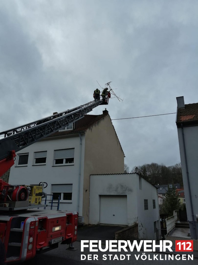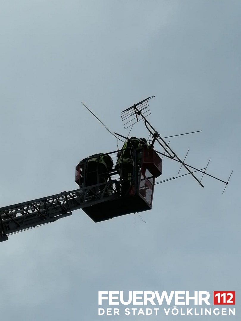 An einem Gebäude drohte die Antenne abzustürzen. Die Einsatzkräfte musste kurzzeitig eine Vollsperrung der Straße durchführen. Dann wurde die Antenne mittels Winkelschleifer entfernt und anschließend die Einsatzstelle an den Eigentümer übergeben.