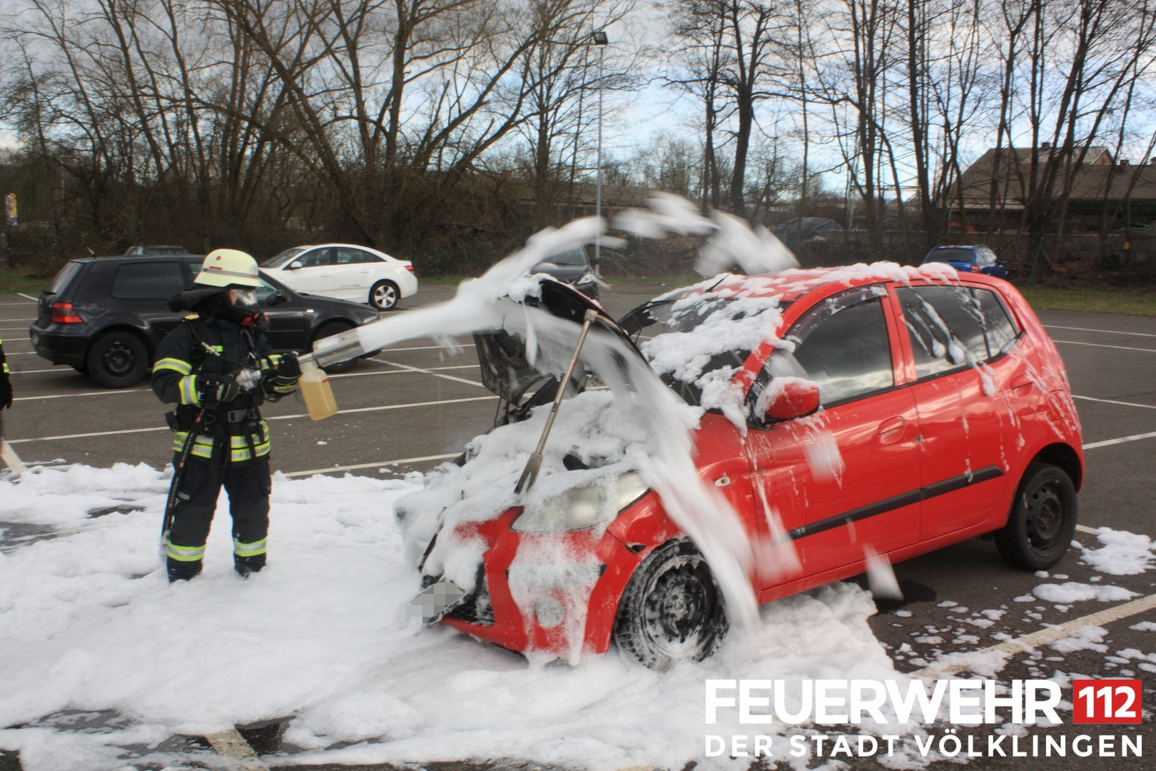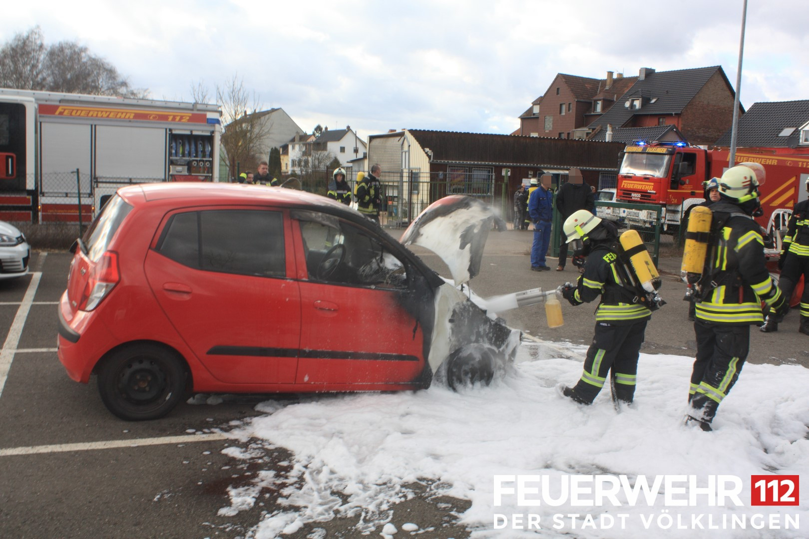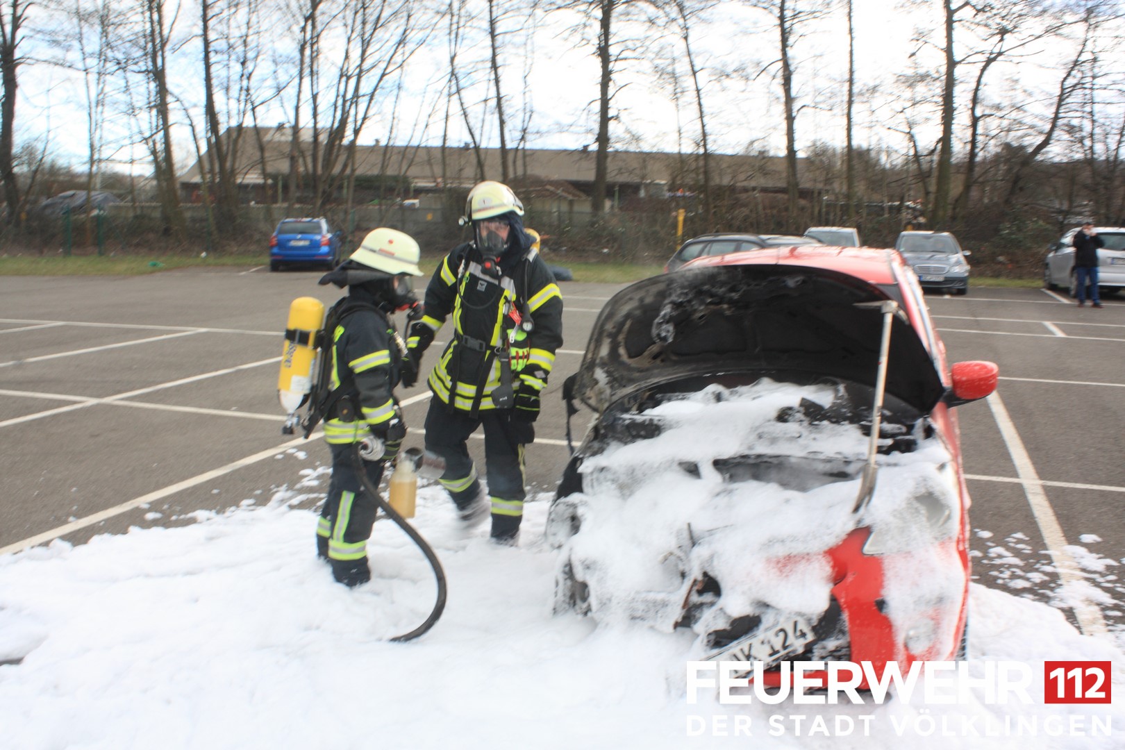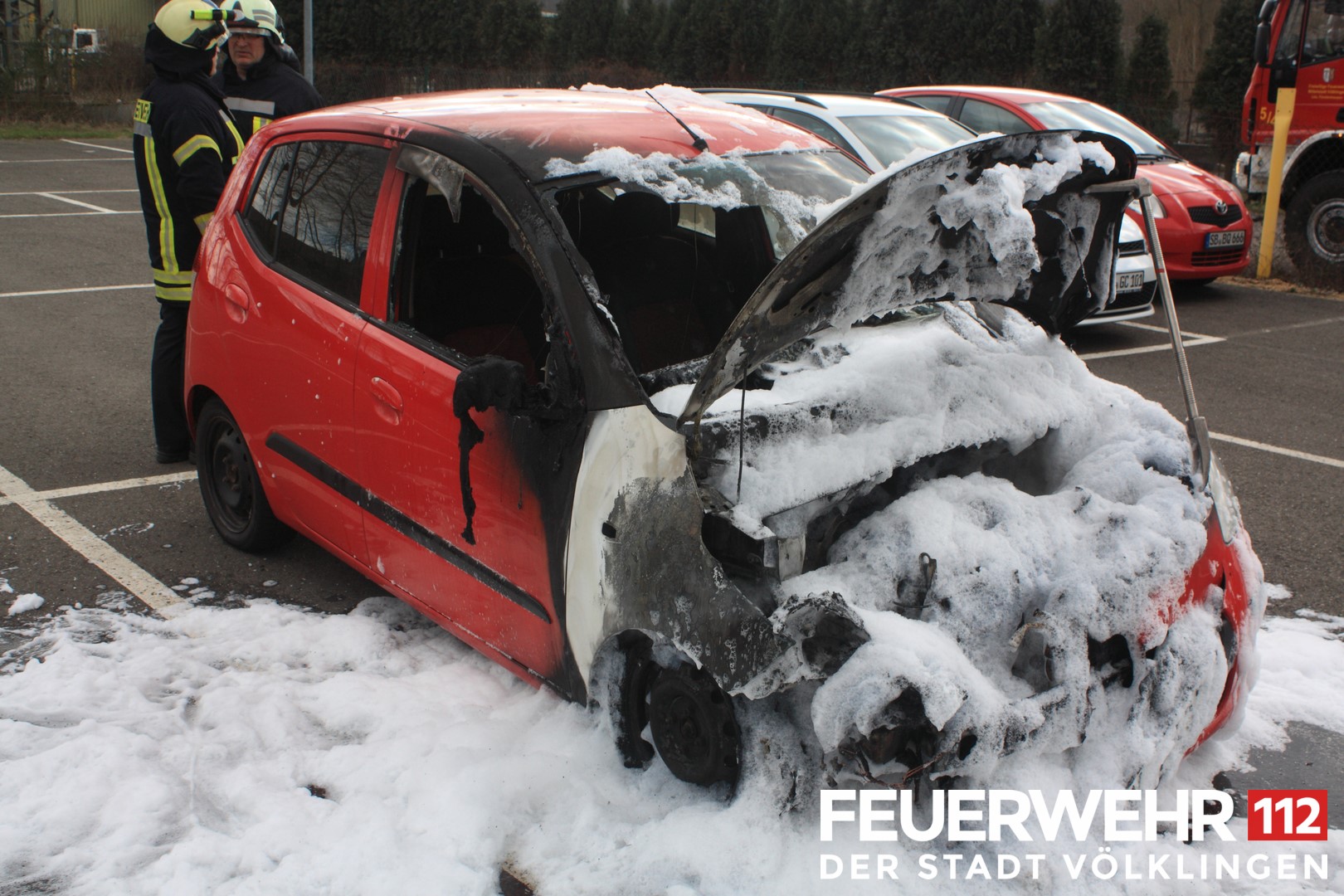 Die Feuerwehr wurde wegen eines brennenden PKWs alarmiert. Bei Eintreffen der Einsatzkräfte brannte der PKW im Motorraum. Ein Trupp unter Atemschutz löschte den Brand mittels Druckschlauch S ab. Anschließend wurde die Einsatzstelle an die Polizei übergeben.