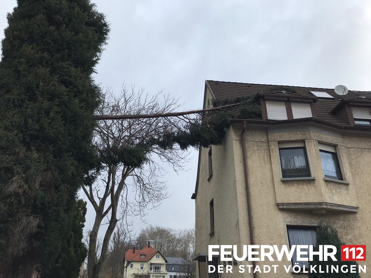 Die Feuerwehr wurde wegen einem auf dem Hausdach liegenden Astes alarmiert. Die Einsatzkräfte beseitigten mittels Kettensäge den Ast über die Drehleiter und übergaben anschließend die Einsatzstelle an den Eigentümer.