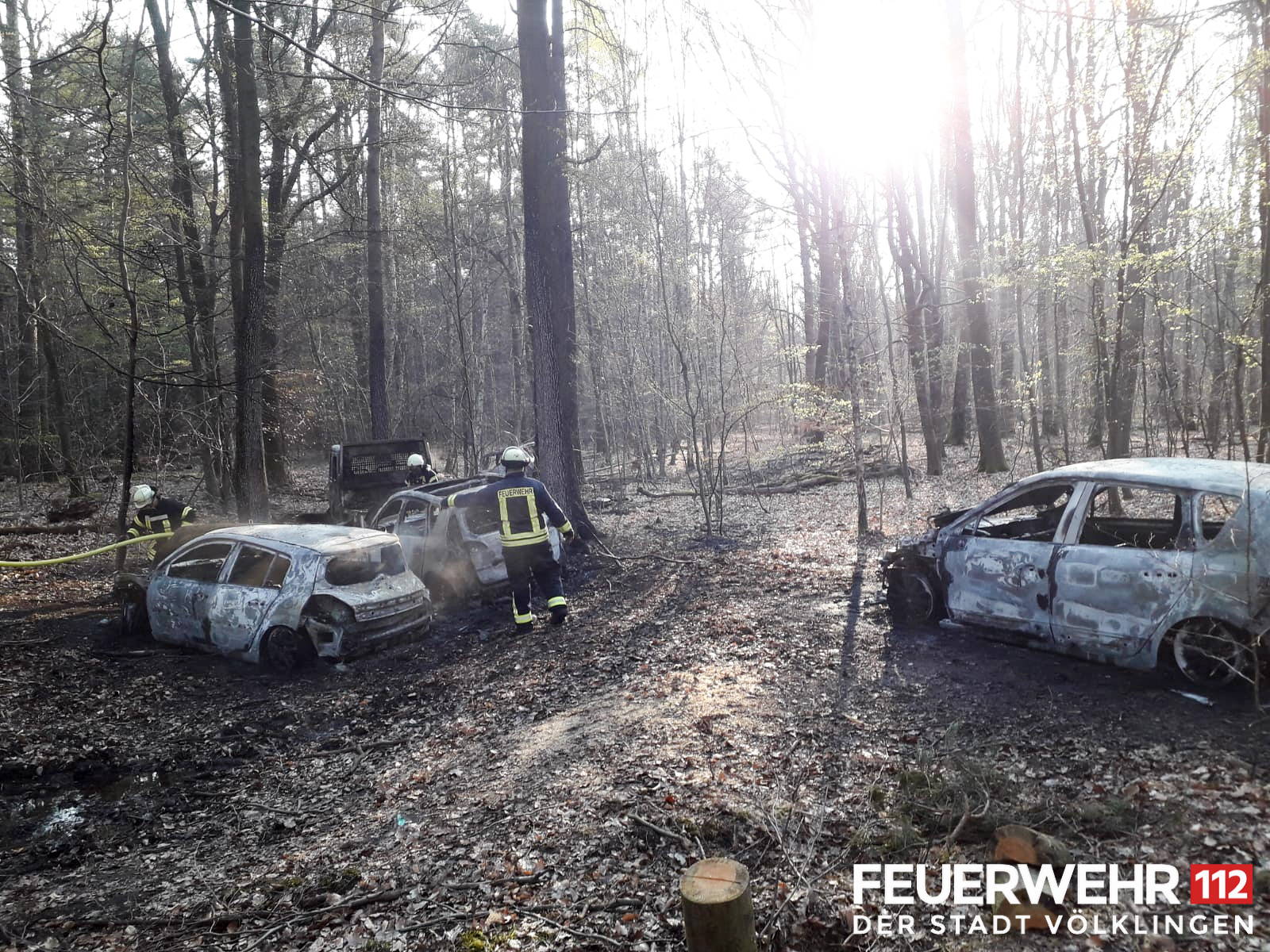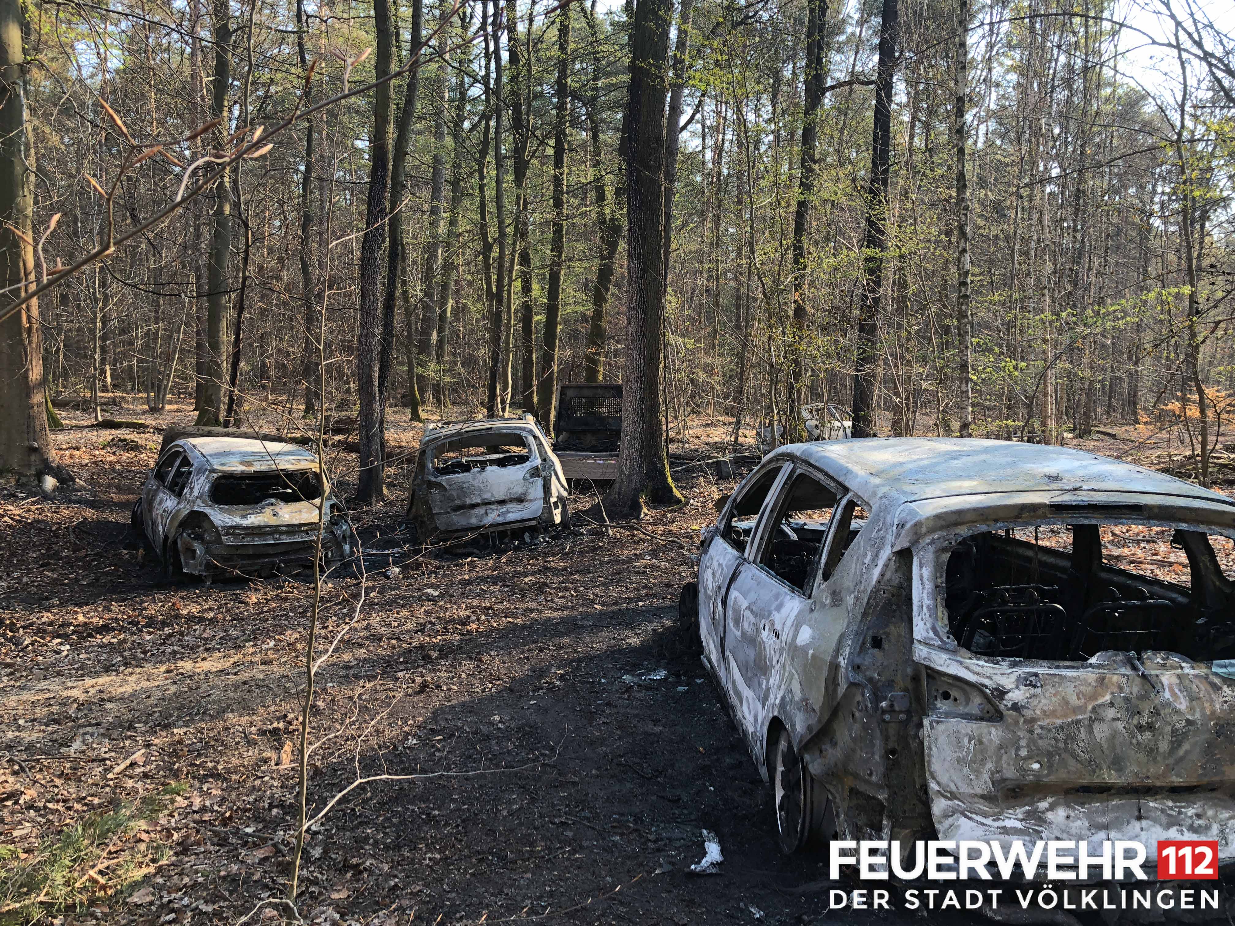 Die Feuewehr wurde zu einem Brand von mehreren PKW im Wald zwischen Lauterbach und der Landesgrenze zu Frankreich alarmiert. Etwa 2,5km tief im Wald konnten die brennenden Fahrzeuge lokalisiert werden. Ein Trupp unter schwerem Atemschutz löschte die Fahrzeuge ab. Abschließend wurde die Einsatzstelle an die Polizei übergeben.