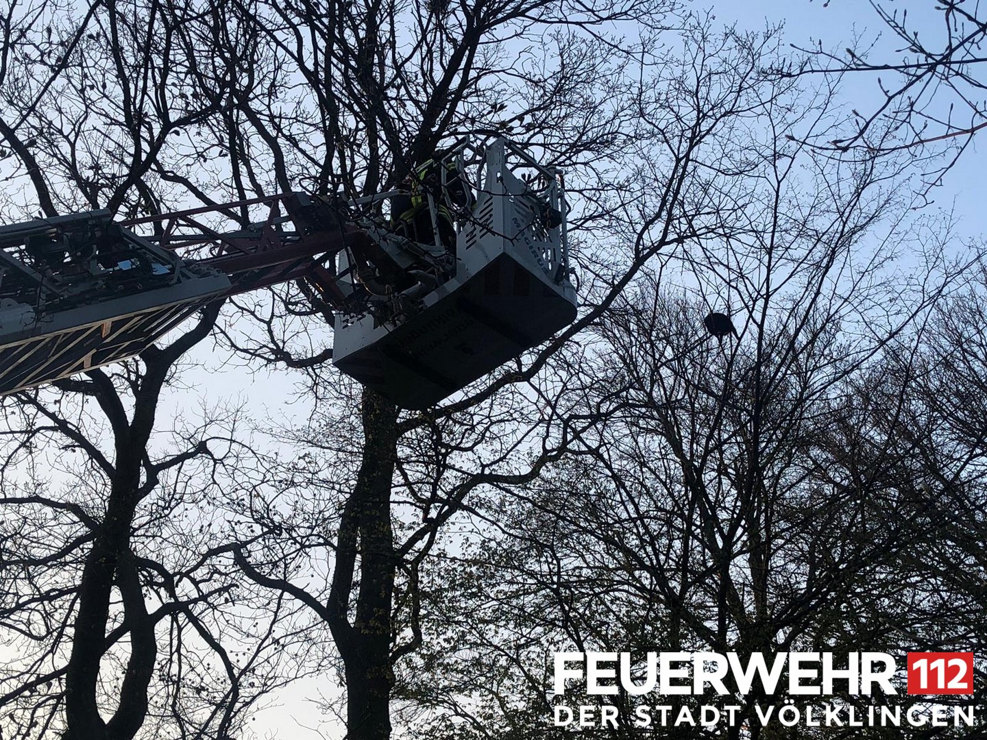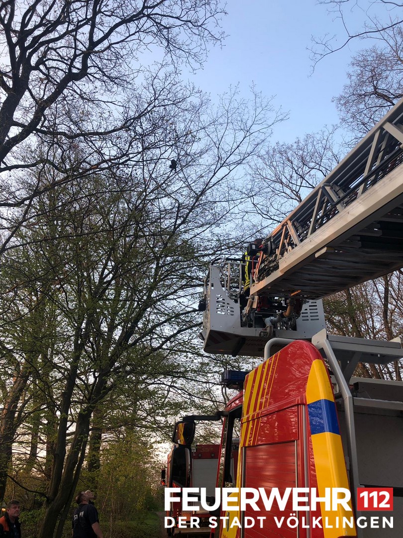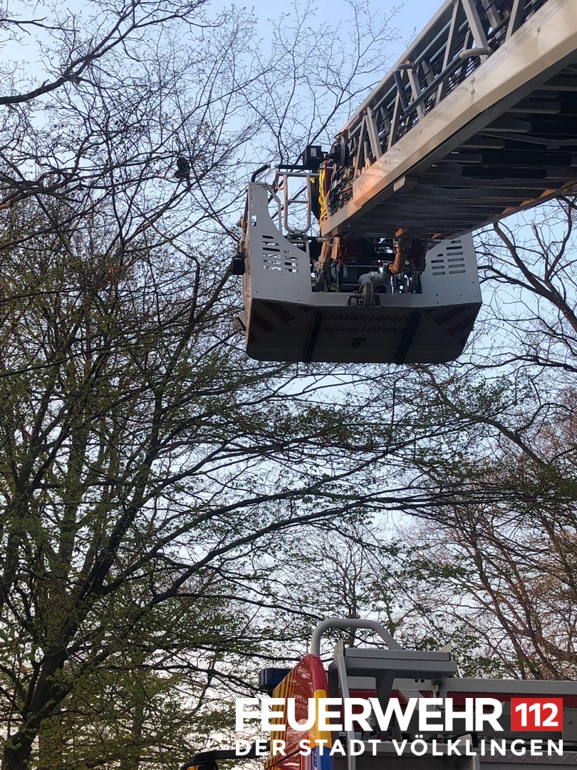 Eine Katze konnte den Baum auf den sie geklettert war nicht mehr verlassen. Die Feuerwehr rettete diese über die Drehleiter und übergab sie an den Eigentümer.