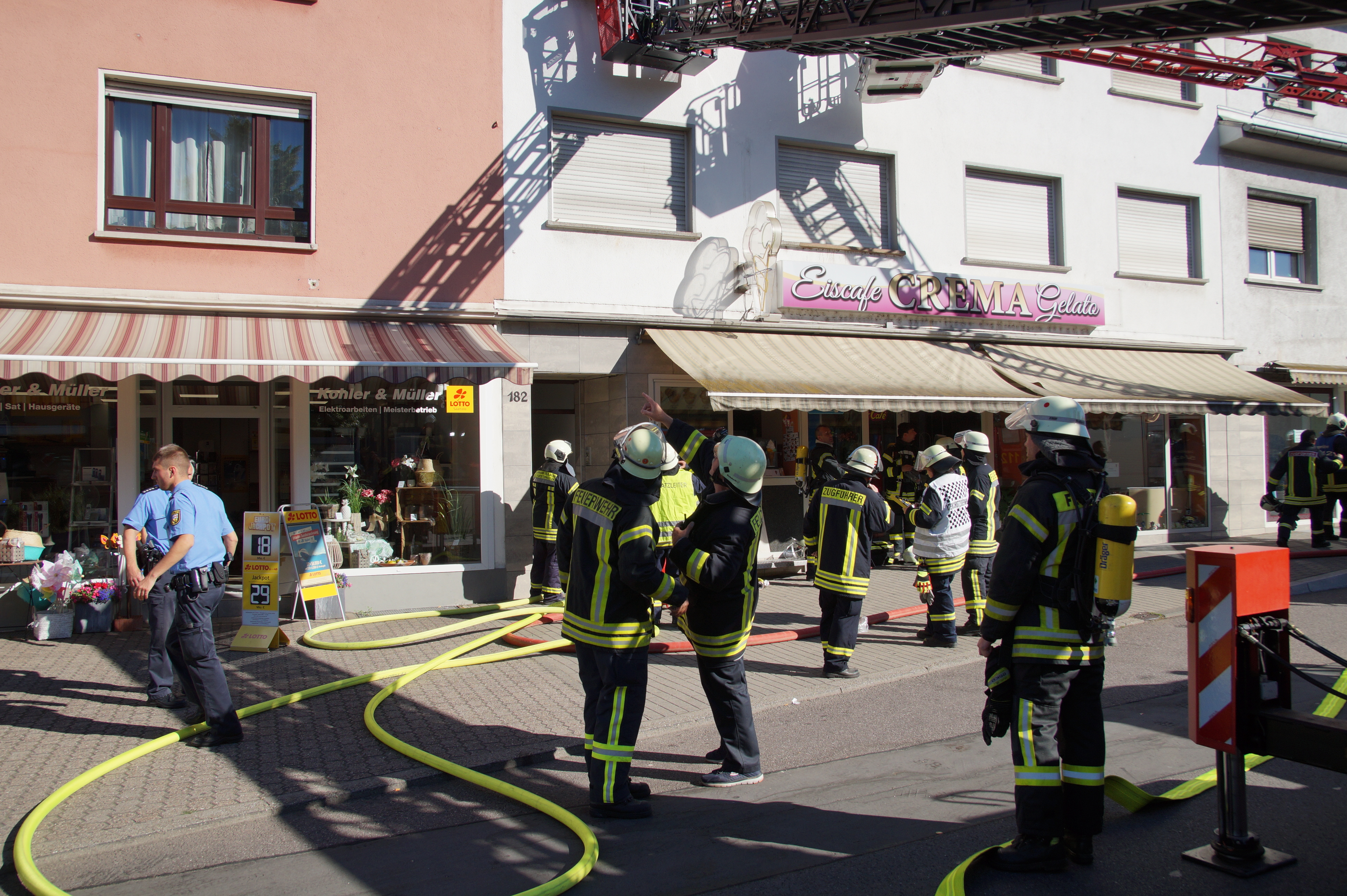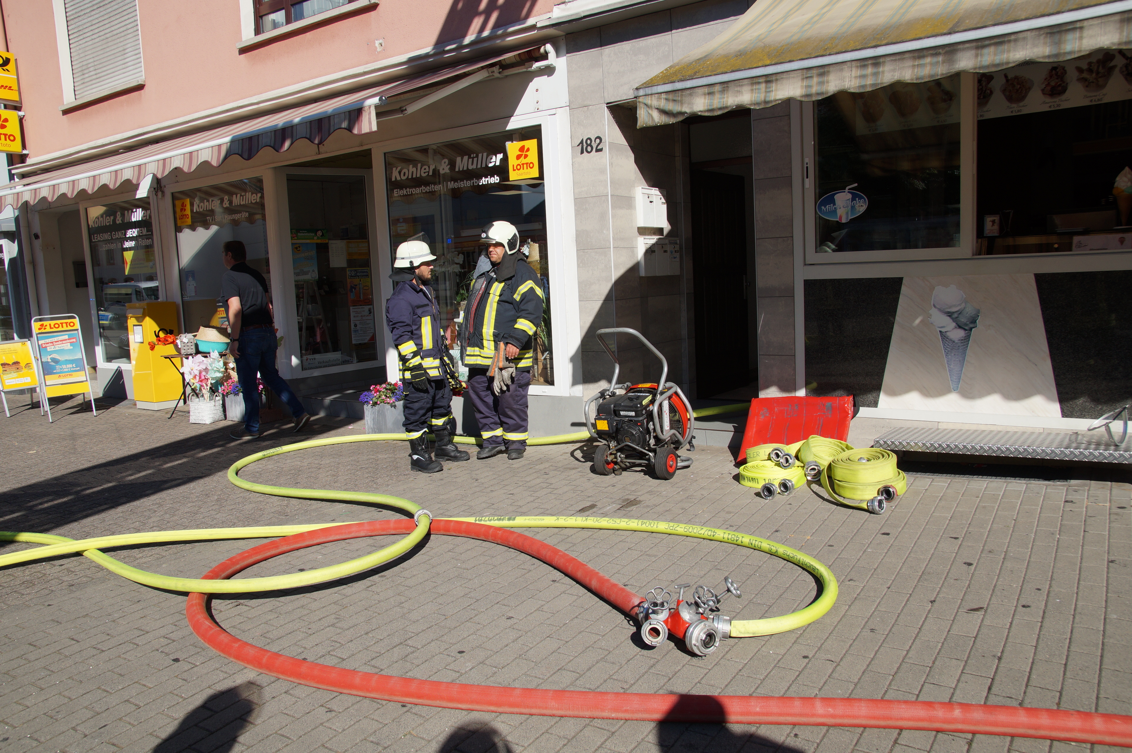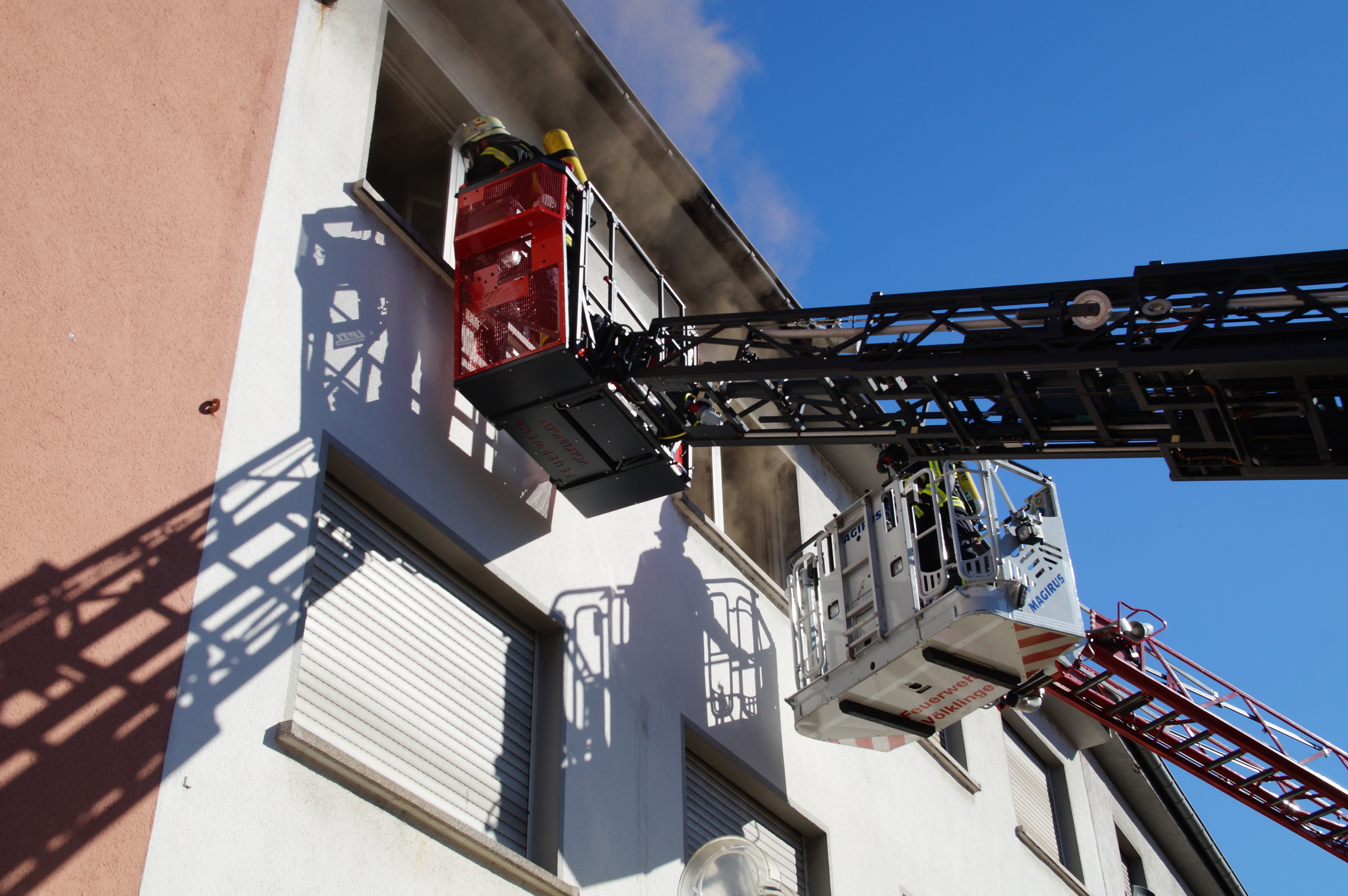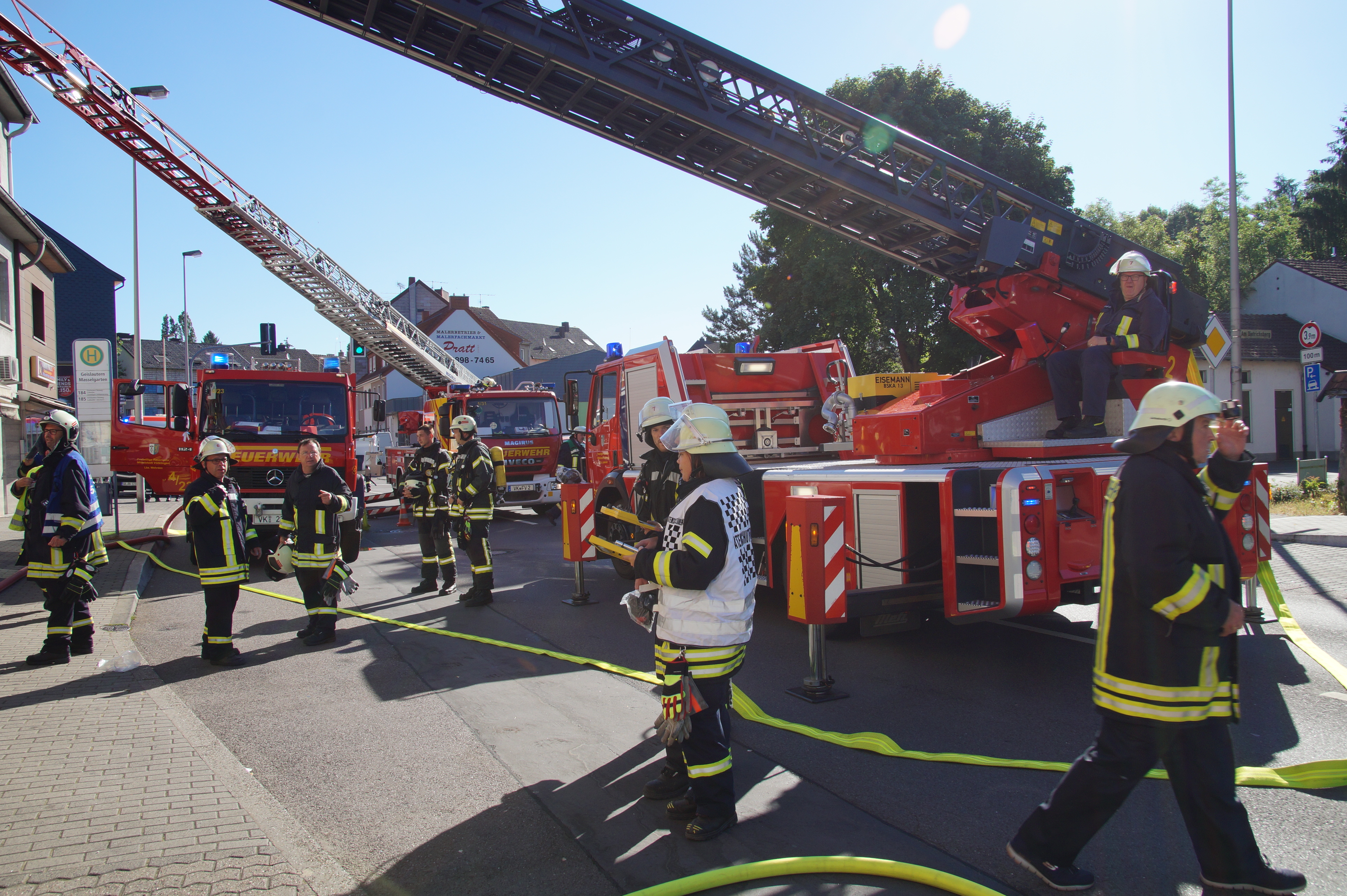 Die Feuerwehr wurde wegen einer Rauchentwicklung in einer Wohnung im 2. Obergeschoss eines Mehrfamilien- und Geschäftshauses alarmiert. Da beim Eintreffen der Einsatzkräfte nicht klar war, ob sich noch Personen in der betroffenen Wohnung aufhielten, wurde durch 1 Trupp unter schwerem Atemschutz sofort mit der Personensuche begonnen. Dieser Trupp konnte jedoch gleich Entwanrung geben. Ein weiterer Trupp unter Atemschutz leitete die Brandbekämpfung ein. Nachdem das eigentliche Feuer schnell abgelöscht war wurde das Gebäude mittels Hochdrucklüfter rauchlos gemacht und anschließend der der Polizei übergeben.