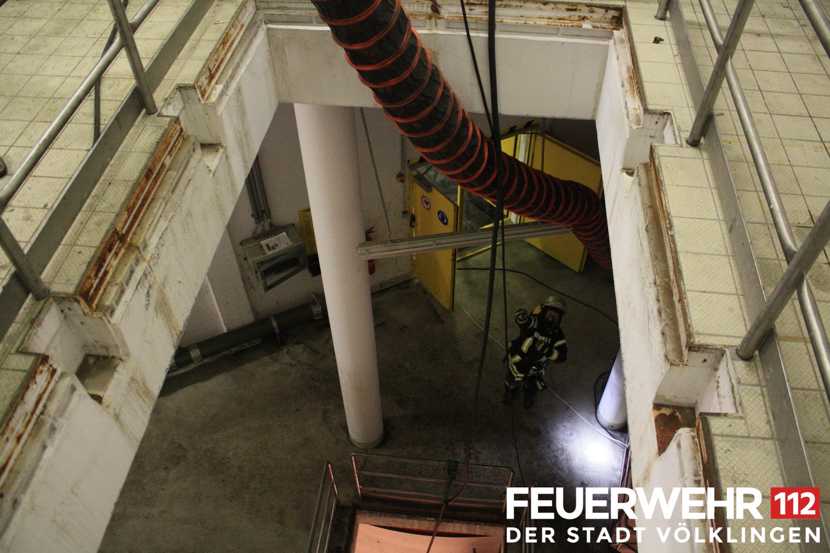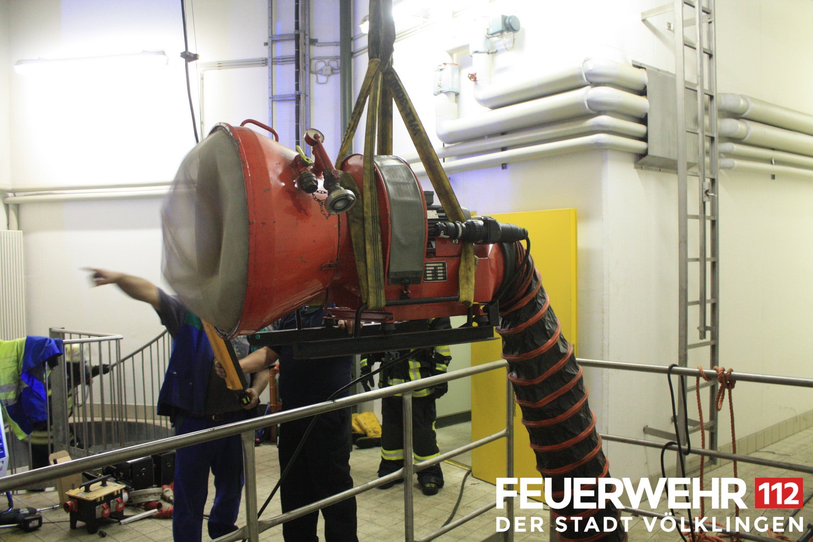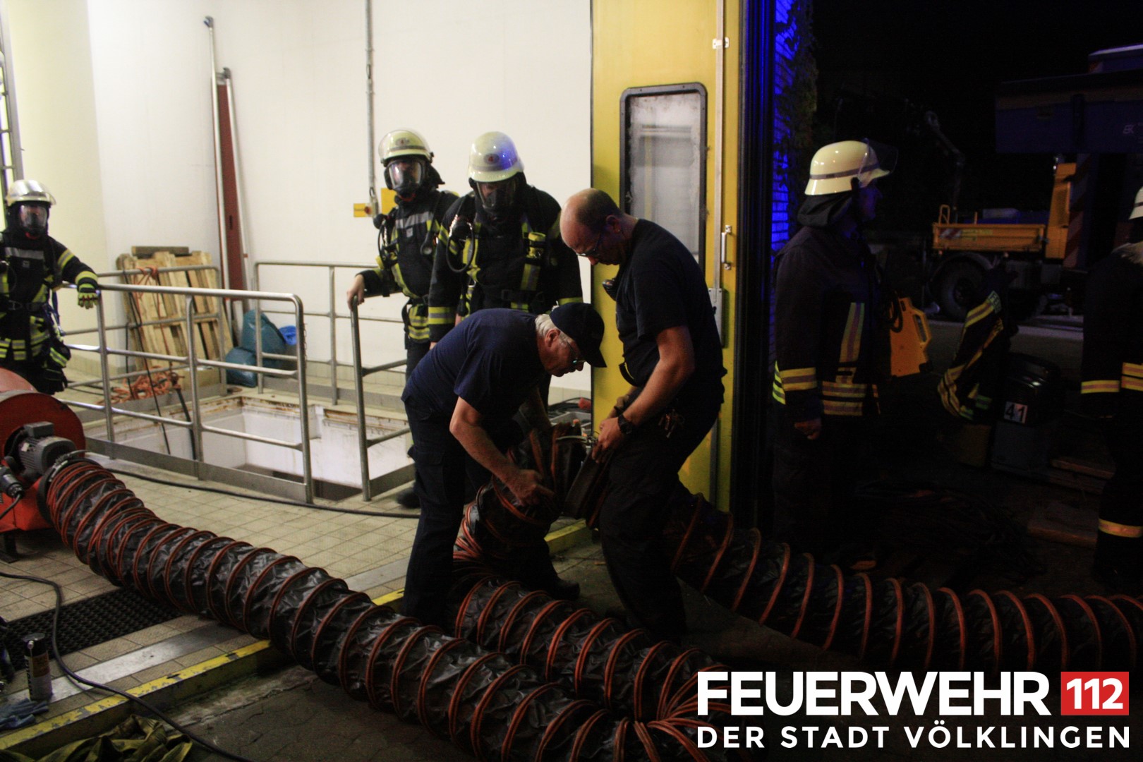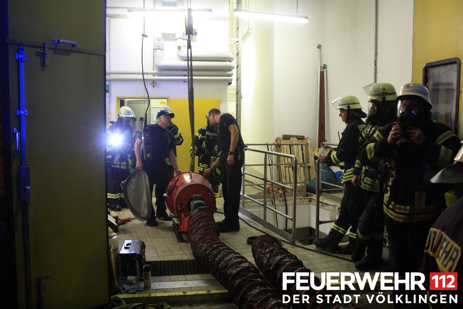 Durch einen technischen Defekt kam es in einem Kellerraum der Pumpstation der Kläranlage Völklingen zu einer Ansammlung von Gas. Die Feuerwehr Völklingen sowie die Werkfeuerwehr Saarstahl wurden hier zur Unterstützung gerufen. 2 Trupps unter schwerem Atemschutz brachten den Ablüfter der Werkfeuerwehr in Stellung und konnten somit das Gas aus dem betroffenen Bereich entfernen. Um die Eigensicherung der EInsatzkräfte sicher zu stellen, wurde auch ein RTW an die Einsatzstelle angefordert.