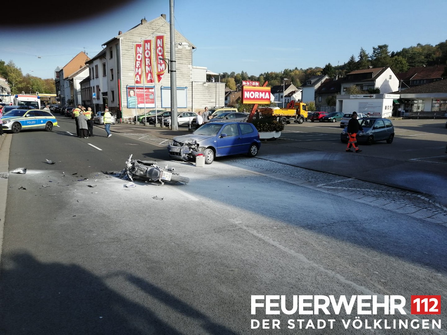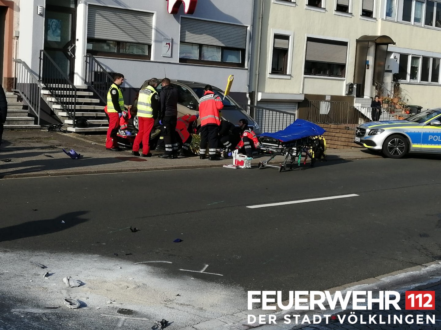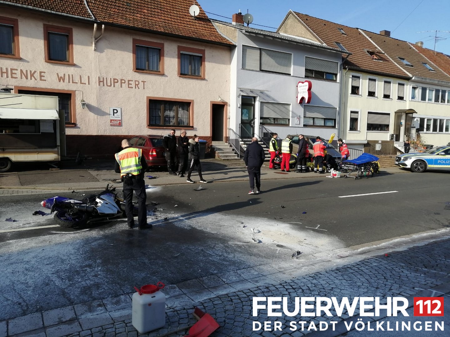 Nach einem Verkehrsunfall zwischen einem PKW und einem Motorrad kam es zu einem Brand der Fahrzeuge. Bei Eintreffen der Feuerwehr war das Feuer bereits durch Passanten mittel Feuerlöscher abgelöscht worden. Die Einsatzkräfte stellten den weiteren Brandschutz sicher und schalteten die Fahrzeuge stromlos. Nach Reinigen der Straße wurde die Einsatzstelle an die Polizei übergeben.