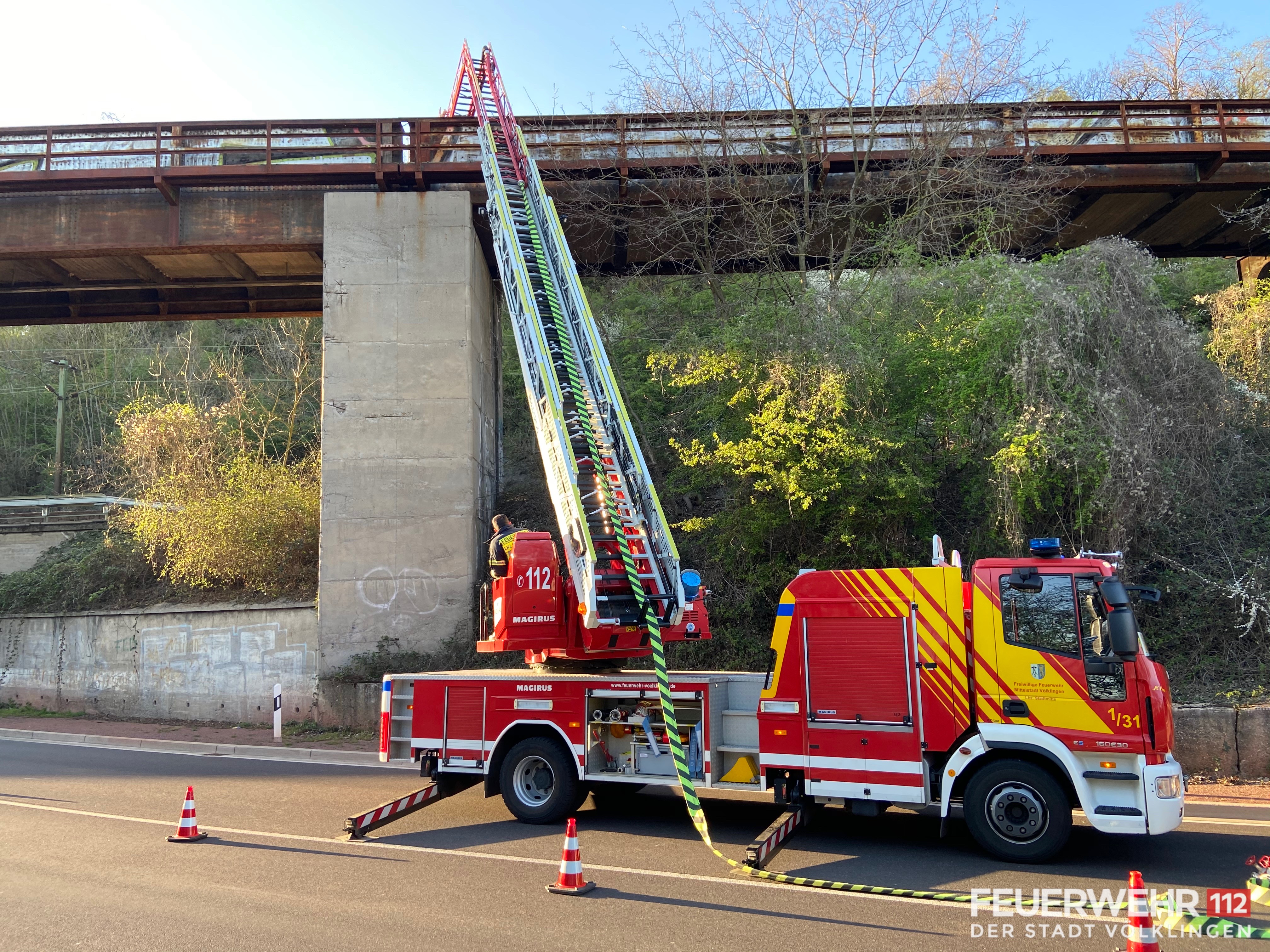 Die Feuerwehr wurde zu einem Vegetationsbrand im Bereich der Gerhardstraße alarmiert. Vor Ort konnte der Brand von ca. 50m2 Vegetation im Bereich der Gleisanlage bestätigt werden. Durch die Einsatzkräfte wurde eine Wasserversorgung von der Bundesstraße 51 über die Drehleiter zum Brandherd aufgebaut und die Brandbekämpfung eingeleitet. Abschließend wurde der Bereich mittels Wärmebildkamera kontrolliert und die Einsatzstelle an die Bundespolizei übergeben.