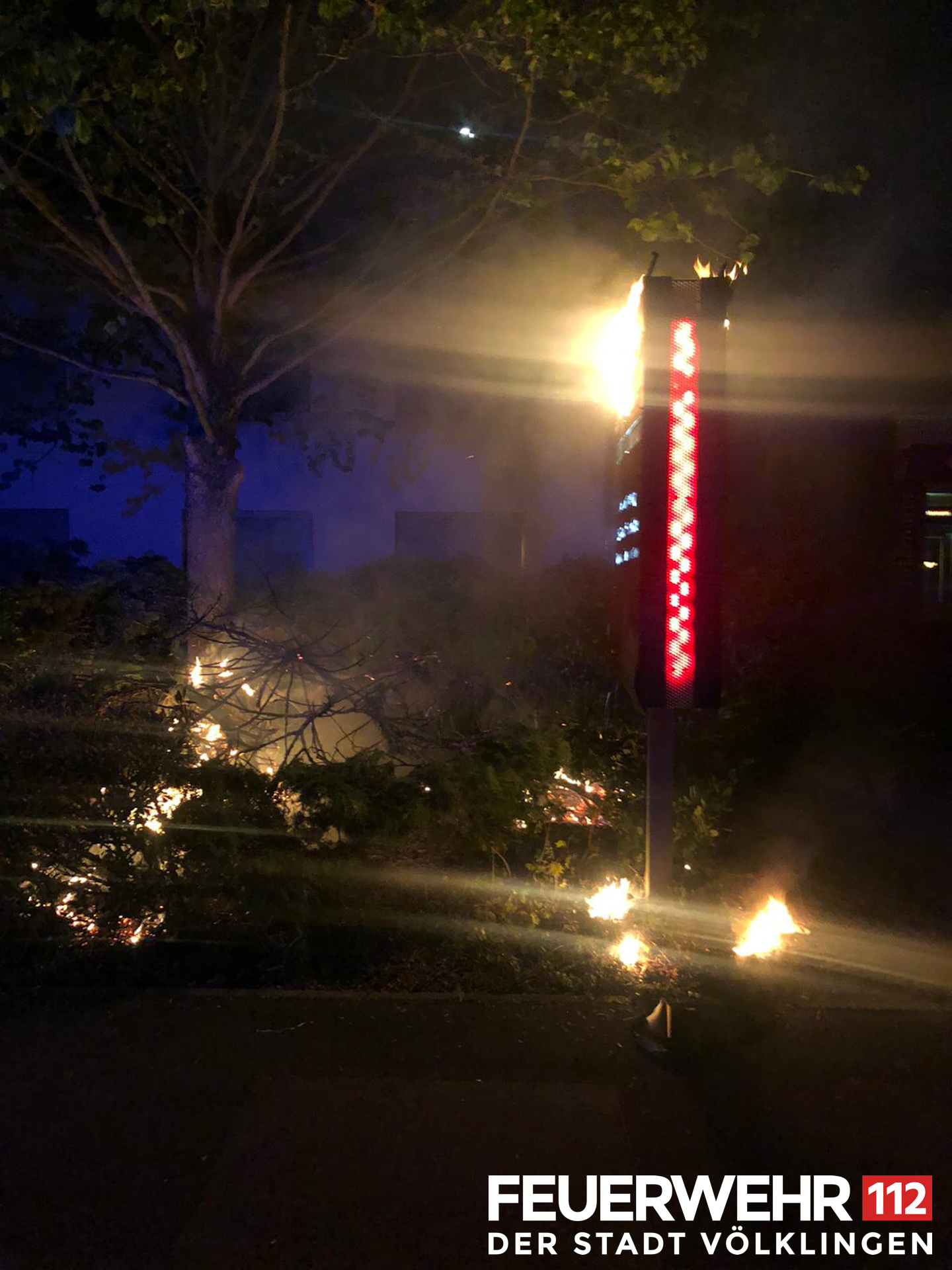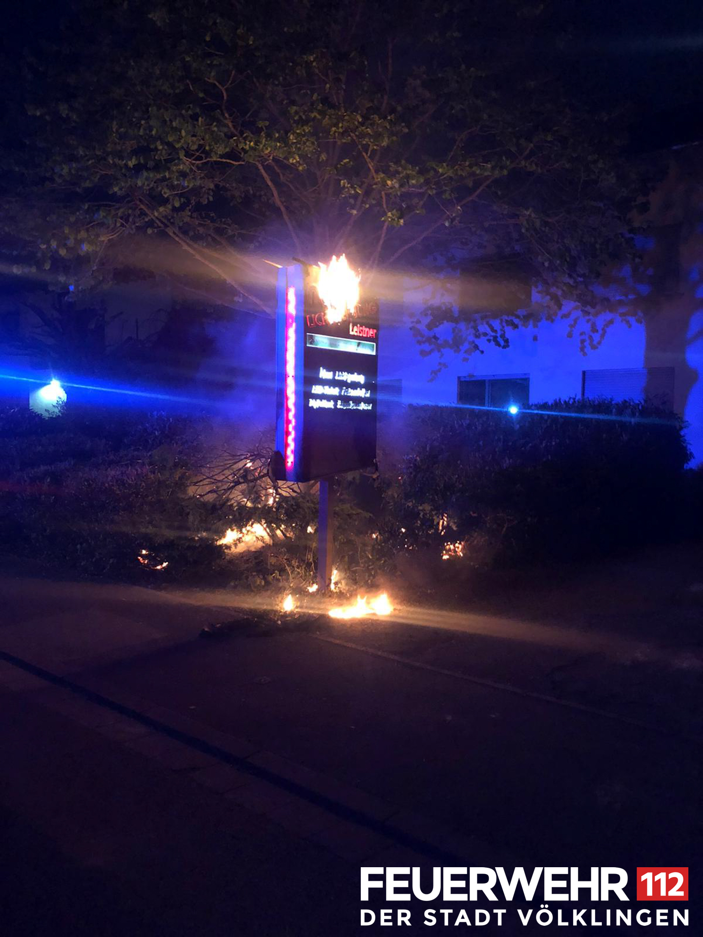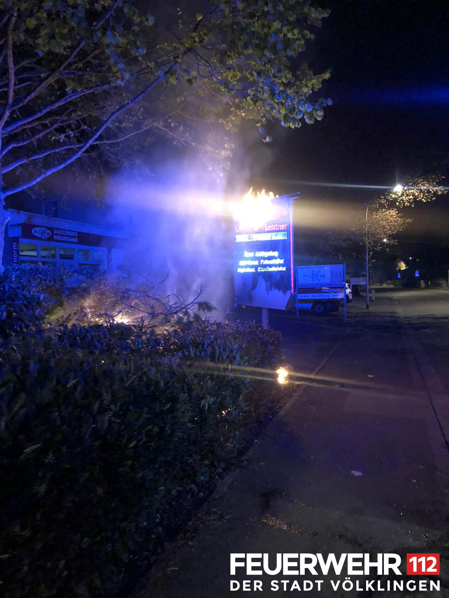 Es brannten ein Werbeschild und mehrere Hecken. Diese wurden mittels Druckschlauch S unter Atemschutz abgelöscht, anschließend die Einsatzstelle an die Polizei übergeben.