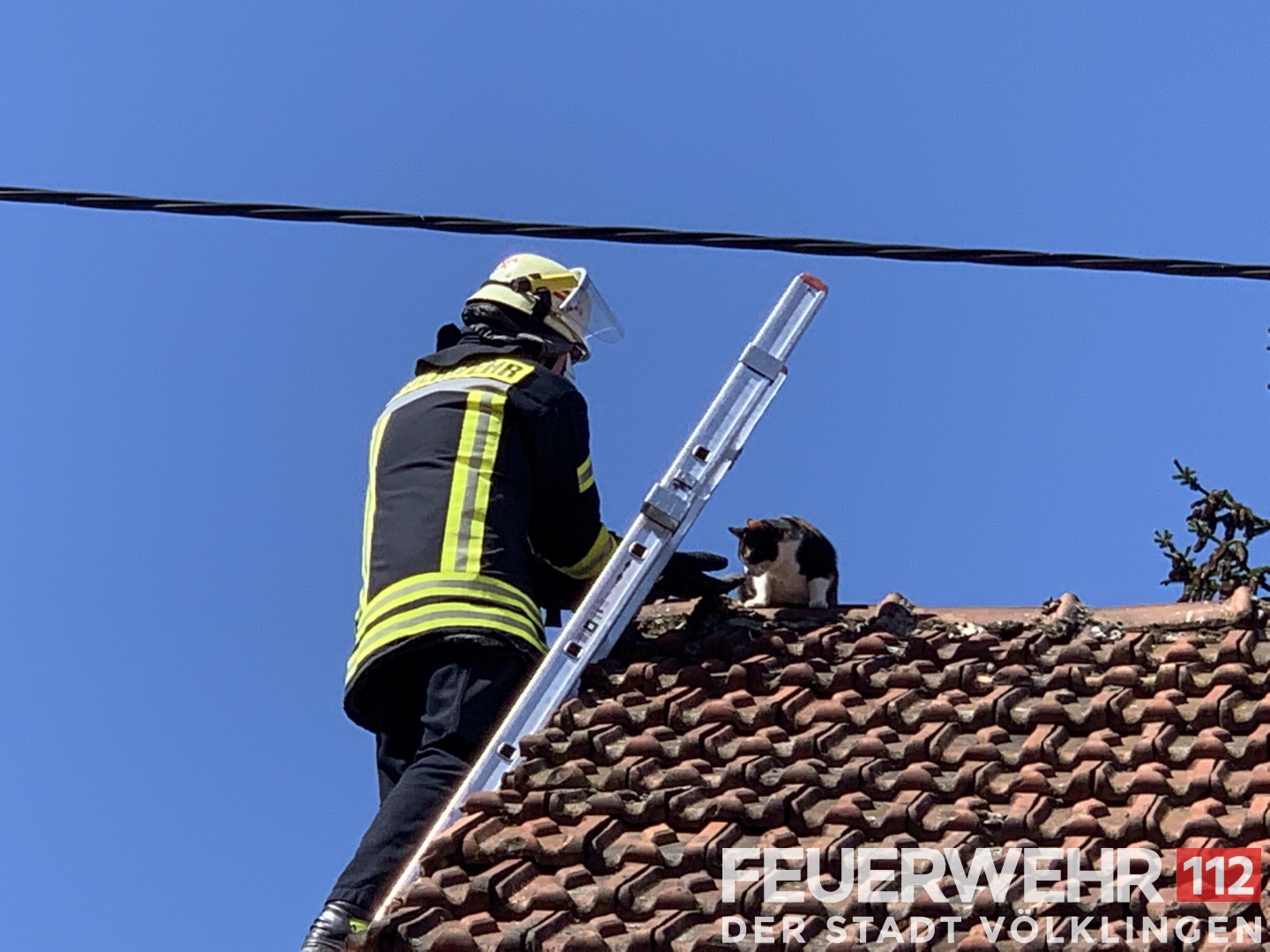 Die Feuerwehr wurde zu einer Katze, welche bereits seit längerer Zeit auf einem Dachfirst festsaß, gerufen. Die Einsatzkräfte retteten das Tier unter Zuhilfenahme einer Steckleiter aus seiner Lage.