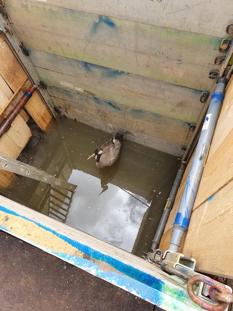 Die Feuerwehr wurde zu einem flugunfähigen Fischreier alarmiert, welche am Saarleinpfad in einer Baugrube feststeckte. Die Einsatzkräfte befreiten den Fischreier aus seiner misslichen Lage, welcher in Freiheit entlassen selbstständig abflog.