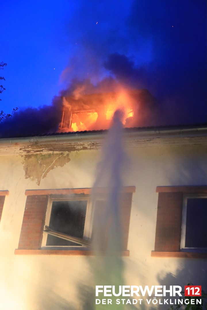 Am Abend des 08.05.2021 wurde die Feuerwehr Völklingen zu einem Wohnhausbrand im Ortsteil Heidstock alarmiert. Schon auf der Anfahrt konnte von den Einsatzkräften eine massive Rauchsäule in dem festgestellt werden. Bei Ankunft der ersten Feuerwehrkameraden brannte es bereits im gesamten Gebäude. Ein erster Innenangriff im Erdgeschoss musste eingestellt werden, da nicht ausgeschlossen werden konnte, dass Teile der oberen Etagen herabstürzen. Da sich das Gebäude ausserhalb der städtischen Bebauung befand, gestaltete sich die Wasserversorgung schwierig. Hier mussten über mehrere hundert Meter Schlauchleitungen gelegt werden. Zur Unterstützung der Wasserversorgung wurde hierbei auch die Feuerwehr Püttlingen mit den Fahrzeugen 1/62, 1/55 und 1/10 alarmiert. Um die Brandausbreitung im Dachbereich zu kontrollieren wurde seitens der Feuerhehr Völklingen die Drohne mit Wärmebildkamera eingesetzt. Da ein Einsatz der Drehleiter wegen der zu engen Zufahrt nicht möglich war, wurde die Bergungsgruppe des THW Ortsverbandes Völklingen-Püttlingen zur Einsatzstelle gerufen. Diese errichteten im rückwärtigen Gebäudebereich ein Gerüst, worüber sich die Feuerwehr Zugang zum Dach und den dortigen Glutnestern schaffen konnte. Nach mehrstündigem Einsatz konnte die Einsatzstelle an die Polizei übergeben werden.