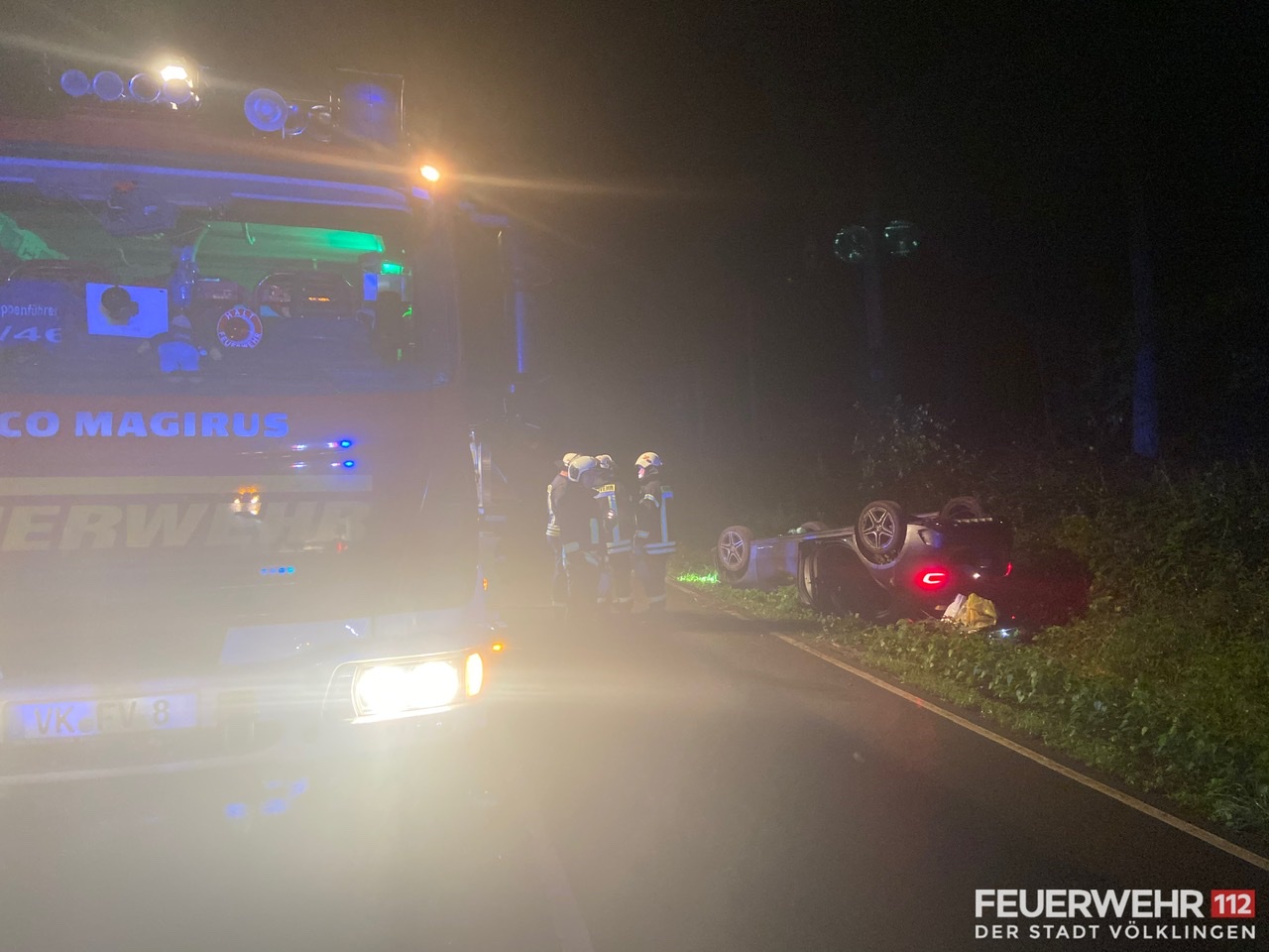 Die Feuerwehr wurde zu einem Verkehrsunfall mit einem PKW nach Überschlag alarmiert. Die ersten Einsatzkräfte konnten allerdings schnell Entwarung geben, beide Insassen konnten sich bereits selbstständig befreien und wurden Rettungsdienstlich betreut. Die Feuerwehr sicherte die Unfallstelle ab und stellte den Brandschutz sicher. Abschließend wurde die Einsatzstelle an die Polizei übergeben.