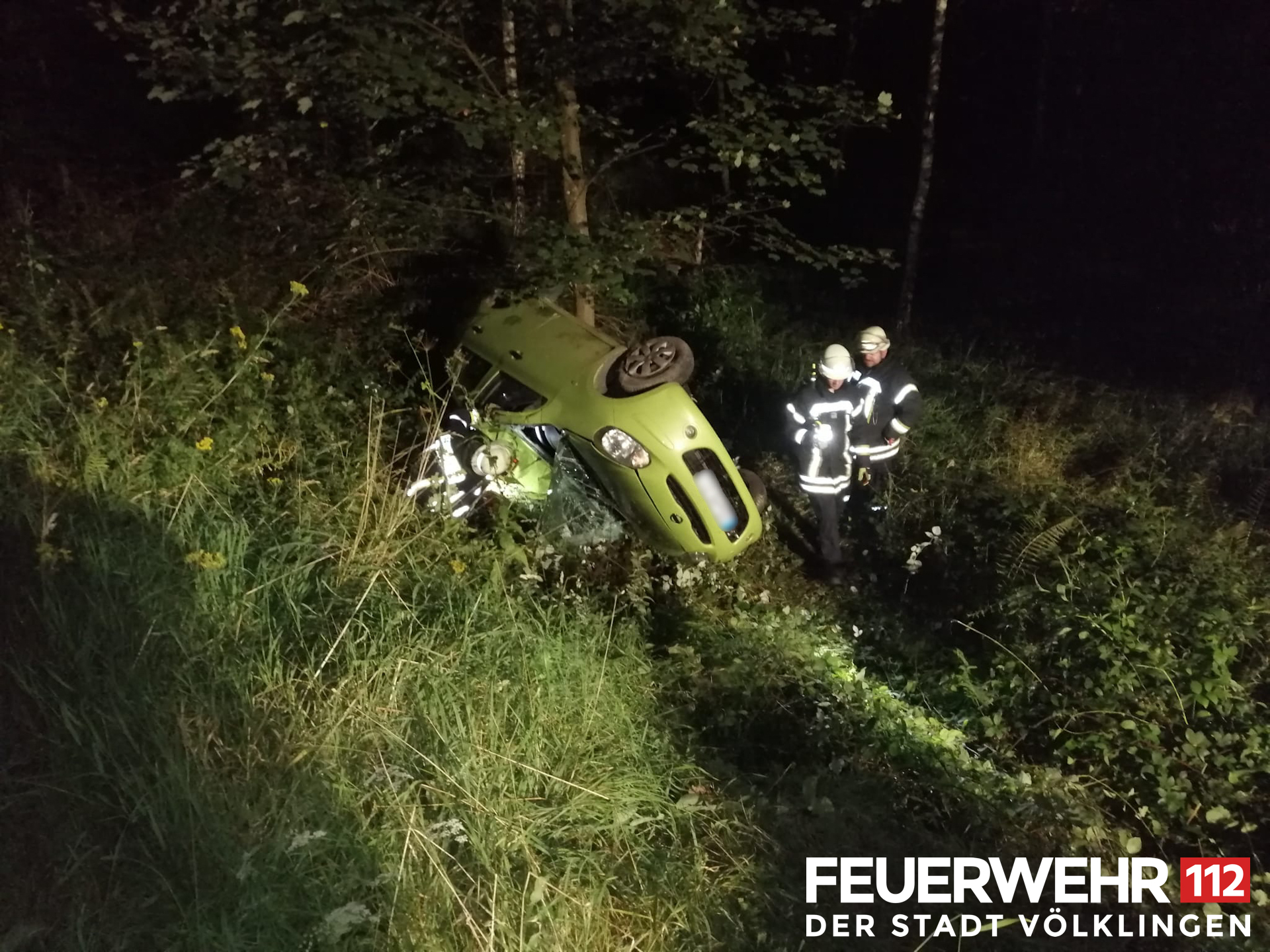 Die Feuerwehr wurde zu einem Verkehrsunfall alarmiert. Die Personen konnten sich bereits selbstständig aus dem Fahrzeug befreien und wurden an den Rettungsdienst übergeben. Die Einsatzkräfte sicherten das Fahrzeug und unterstützen den Abschleppdienst bei der Bergung. Anschließend wurde die Einsatzstelle an die Polizei übergeben.
