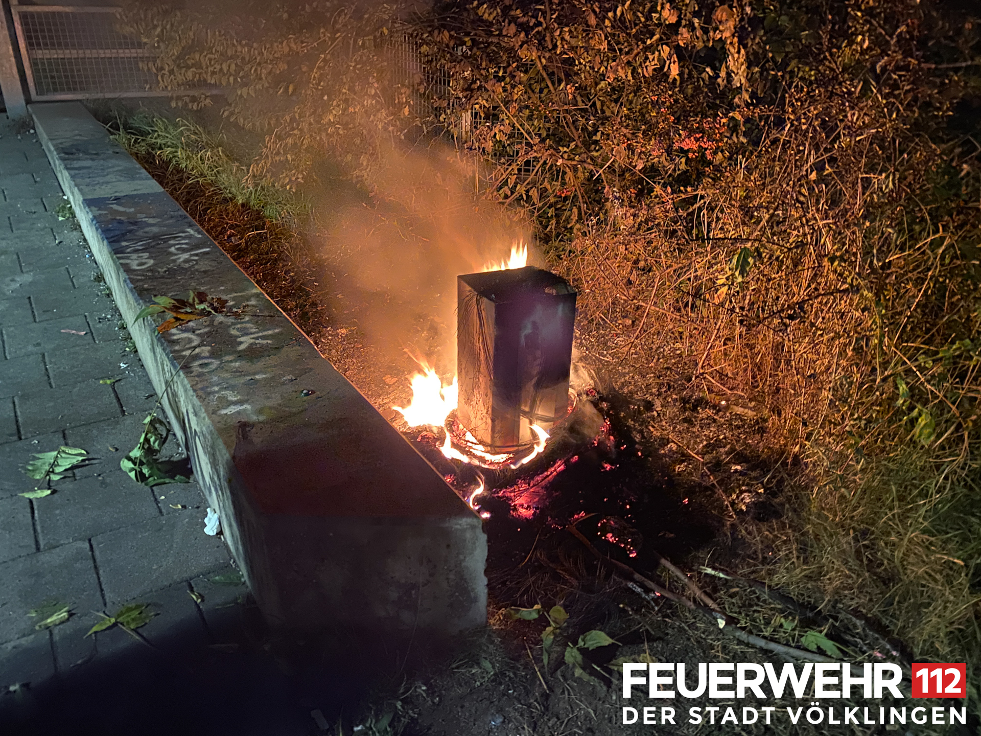 Die Einsatzkräfte wurden zu einem brennenden Mülleimer gerufen, in dem sich außerdem ein Altreifen befand. Der Brand wurde mittels Schaumpistole abgelöscht.