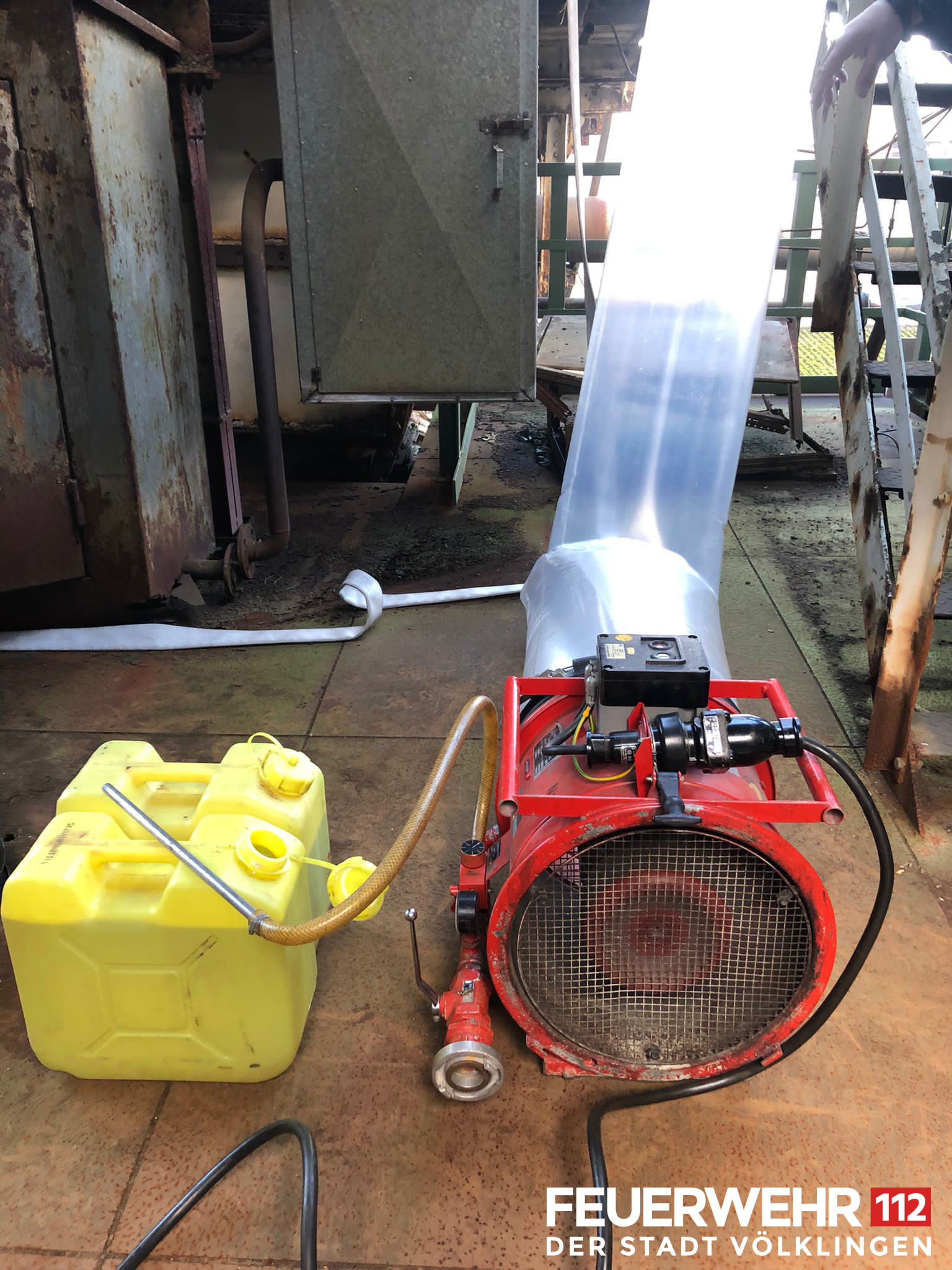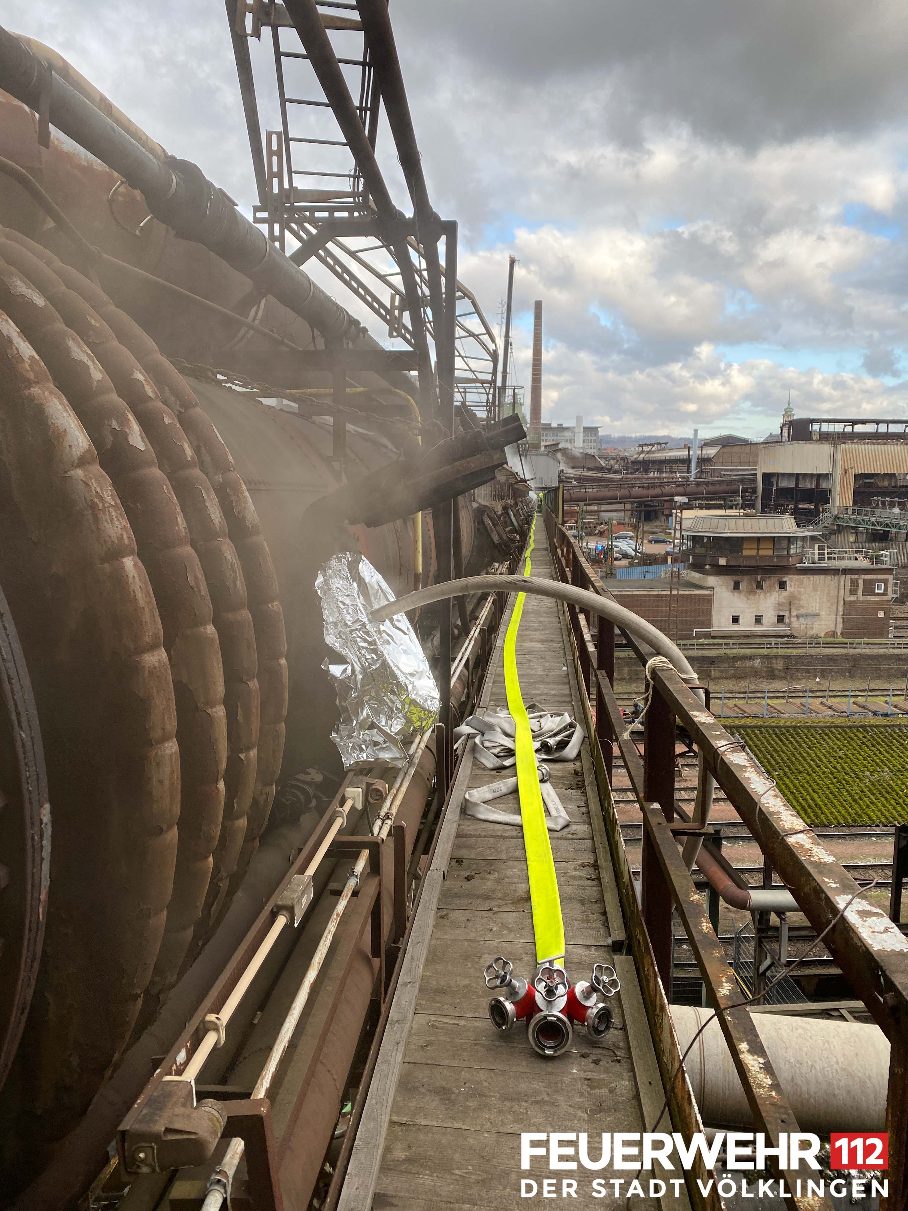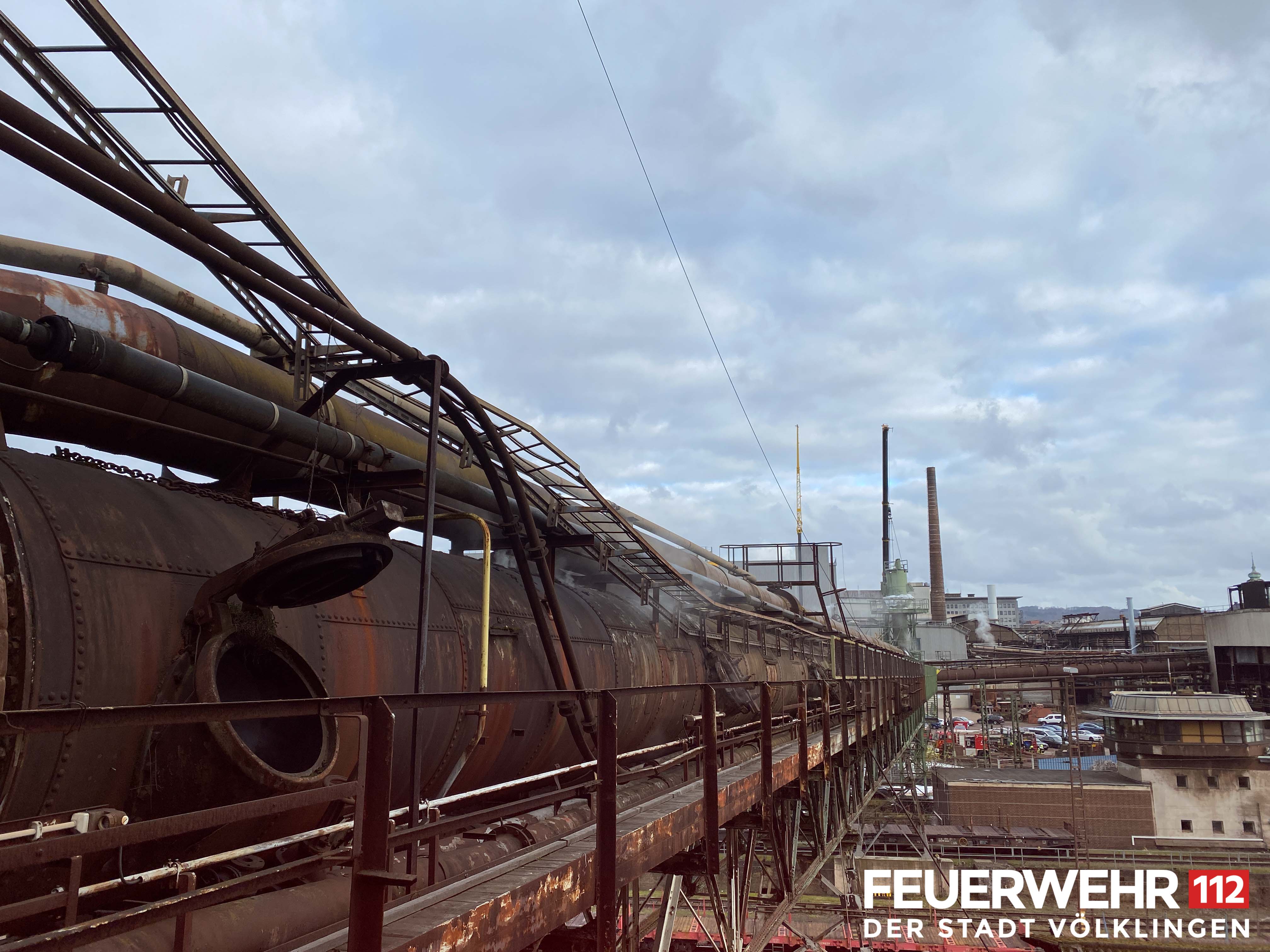 Die Feuerwehr Völklingen wurde von der Werkfeuerwehr der Saarstahl AG zur Unterstützung beim Brand einer Gasleitung alarmiert. Diese verbindet das aktuelle Werksgelände mit dem Weltkulturerbe Völklinger Hütte, ist aber nicht mehr in Benutzung. Bei Brenn- und Schneidarbeiten haben sich Anbackungen innerhalb der Leitung entzündet und das Feuer drohte, sich weiter durch die Rohrleitung zu fressen. Der Brand sorgte für eine massive Rauchentwicklung im Bereich des Weltkulturerbes, weshalb die Besucherwege gesperrt wurden.