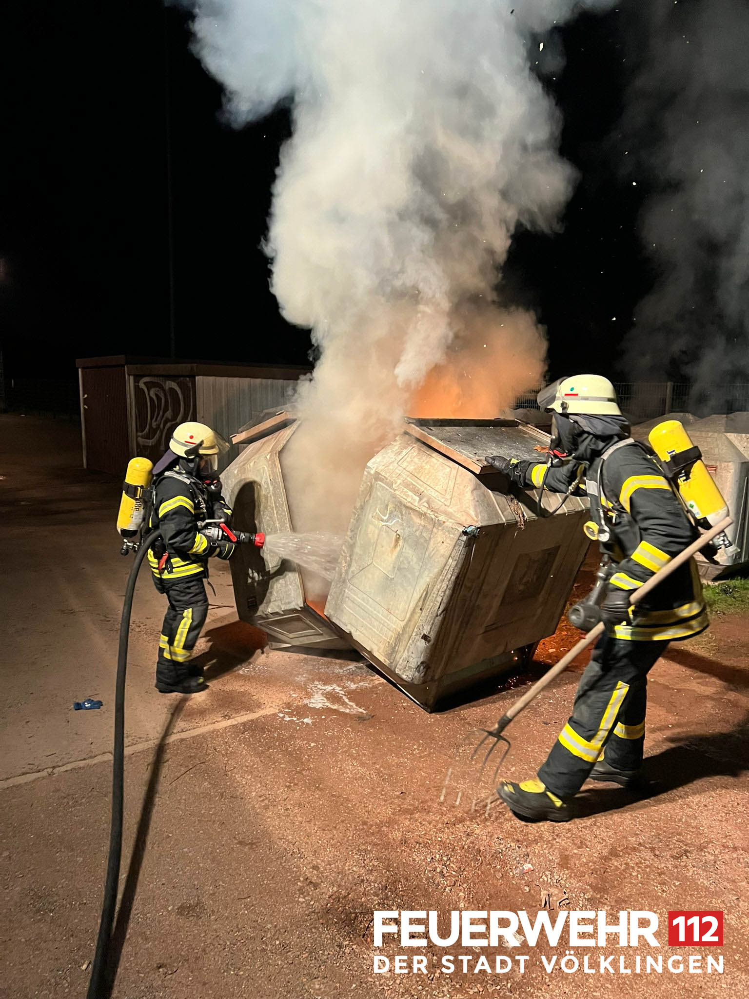 Es brannten mehrere Papiercontainer. Diese wurden unter schwerem Atemschutz mit Druckschlauch S abgelöscht und die Einsatzstelle an die Polizei übergeben.