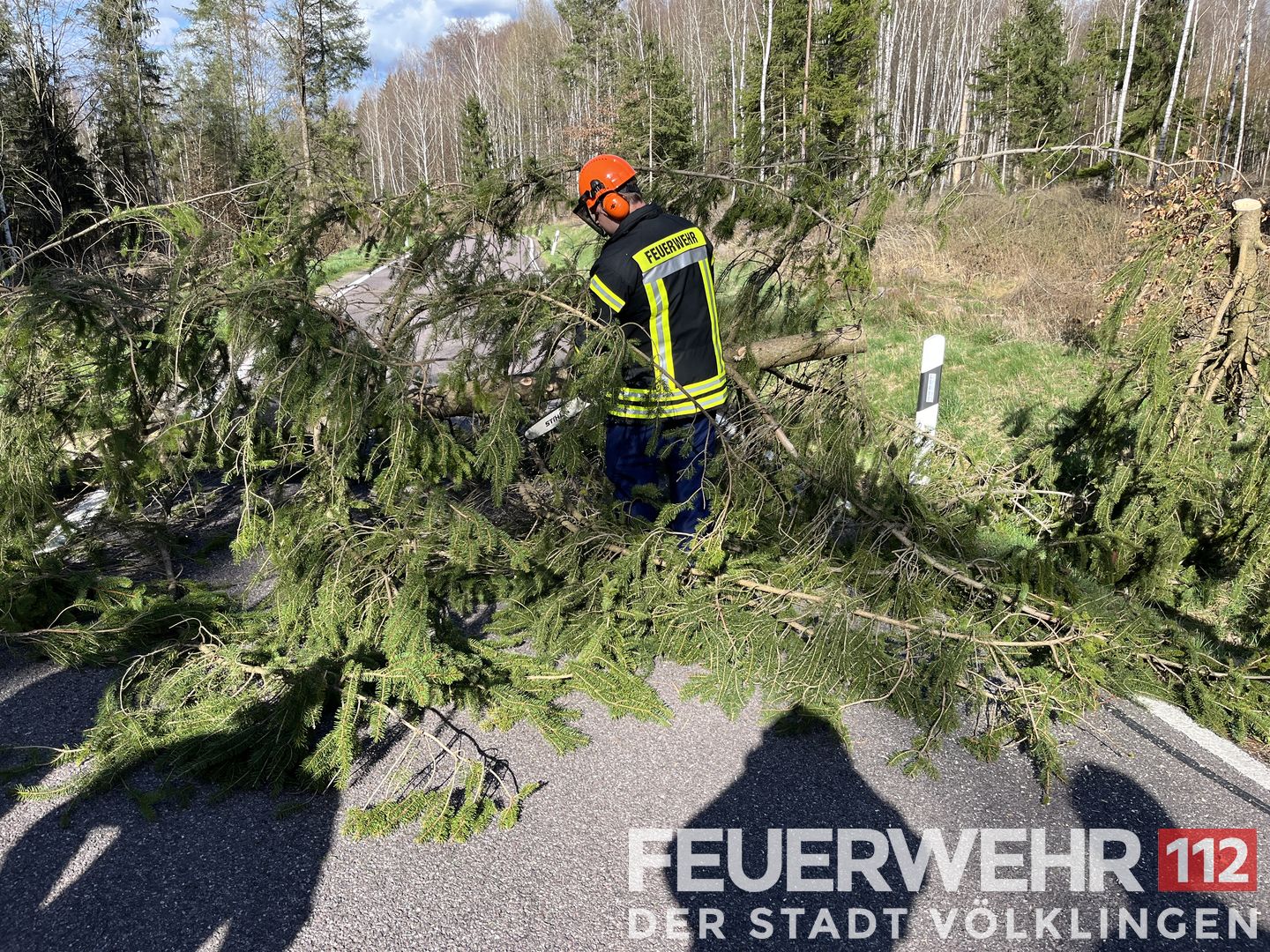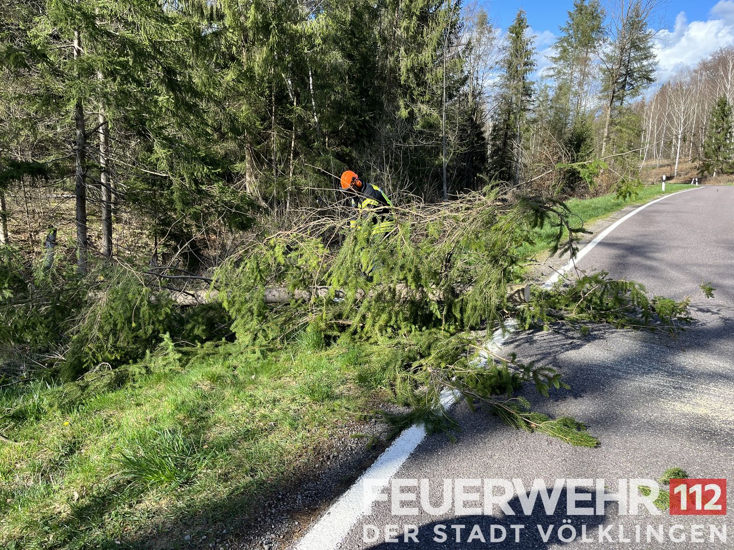 Der Feuerwehr wurde ein umgestürzter Baum auf der Fahrbahn einer Landstraße gemeldet. Die Einsatzkräfte zerkleinerten den Baum mittels Kettensäge und legten ihn an den Fahrbahnrand. Im Anschluss wurde die Fahrbahn noch grob gereinigt und die Einsatzstelle an die Polizei übergeben.