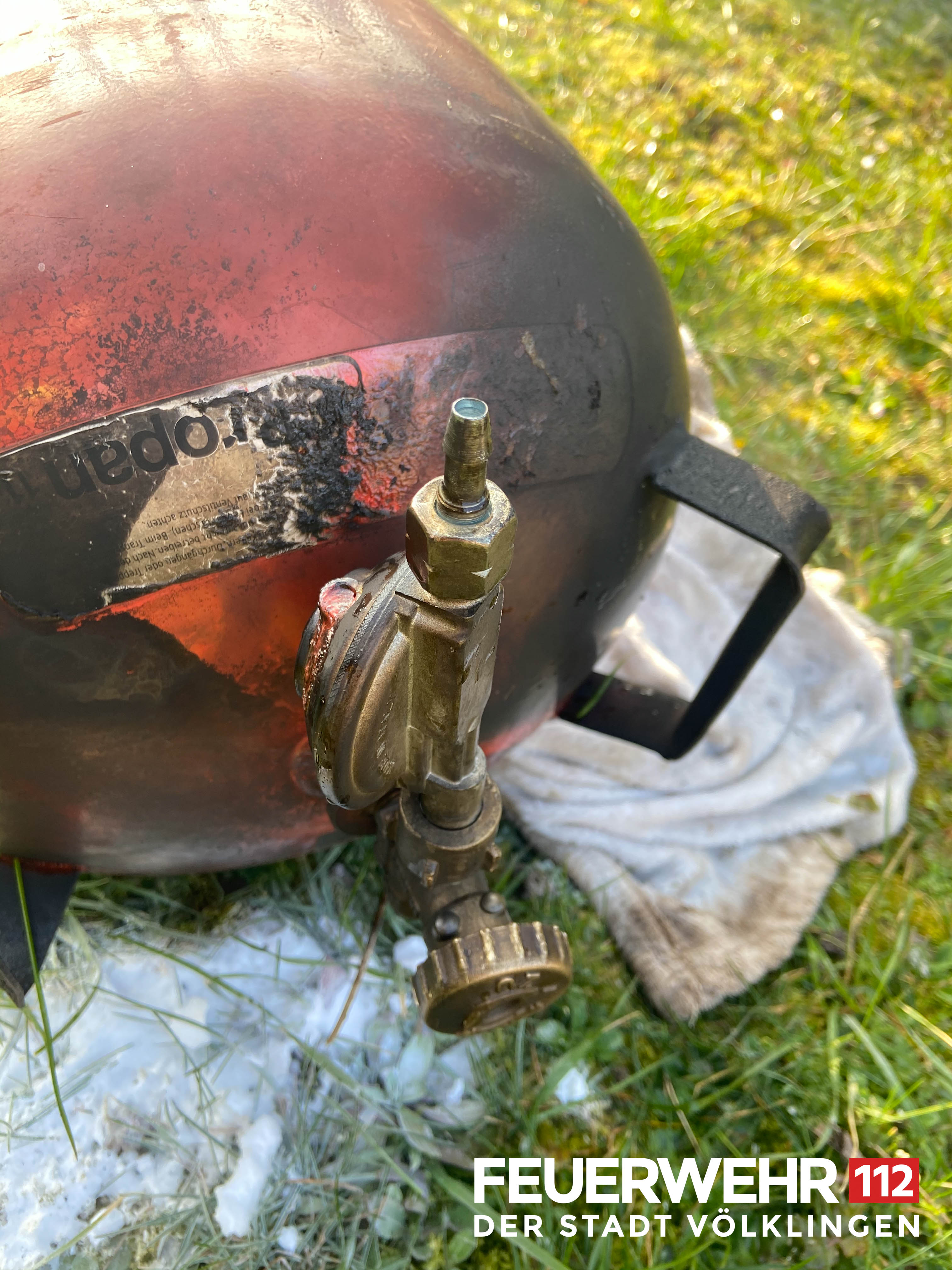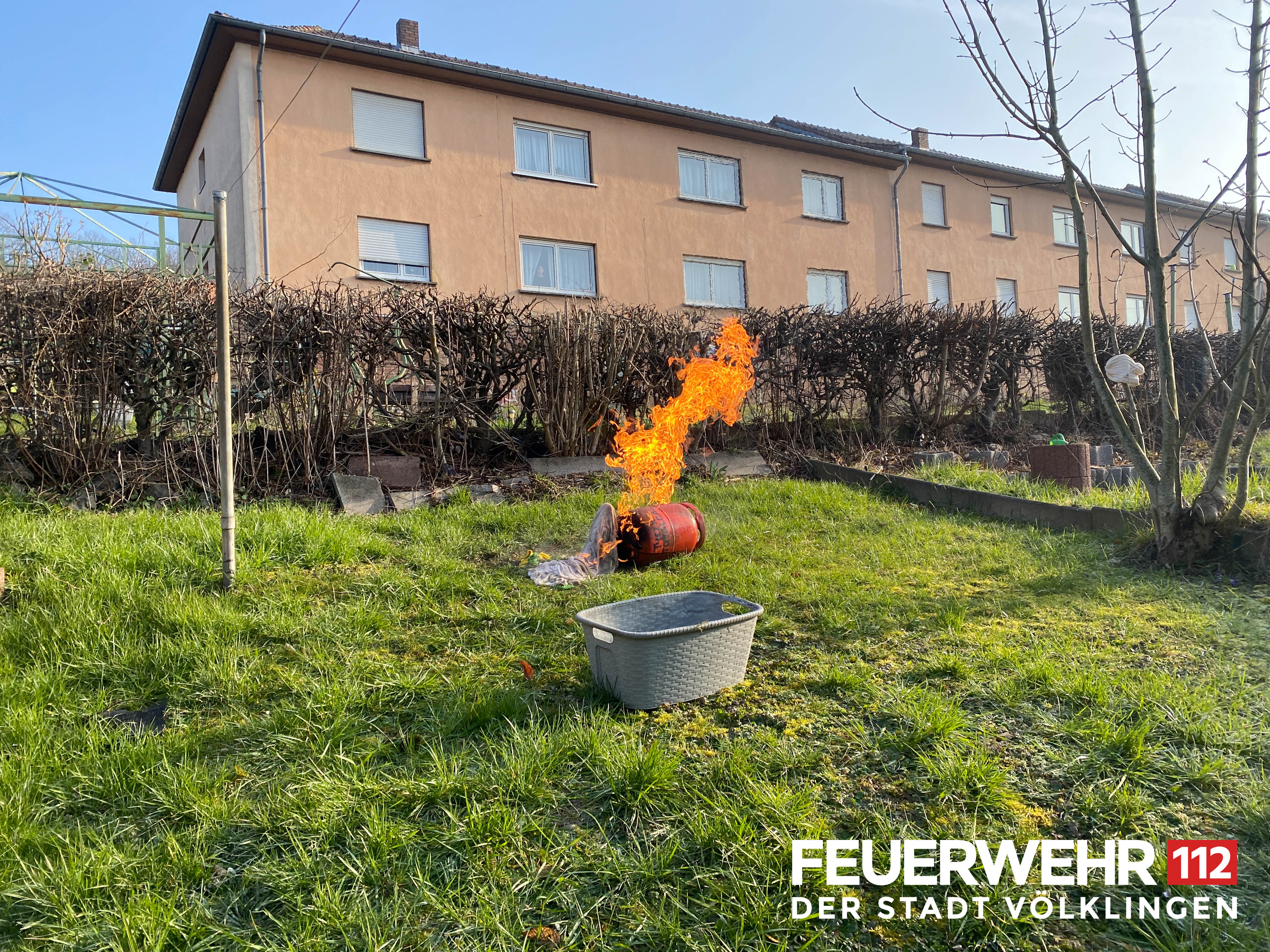 Bei Ankunft der Einsatzkräfte brannte im Garten des Anwesens eine Gasflasche, welche zuvor bereits vom Anwohner aus der Wohnung verbracht worden war. Dabei erlitt er Brand- und Schnittverletzungen, weshalb er dem Rettungsdienst übergeben werden musste. Die Flasche wurde mittels CO2-Löscher abgelöscht und am Ventil verschlossen. Anschließend wurde die Einsatzstelle an die Polizei übergeben.