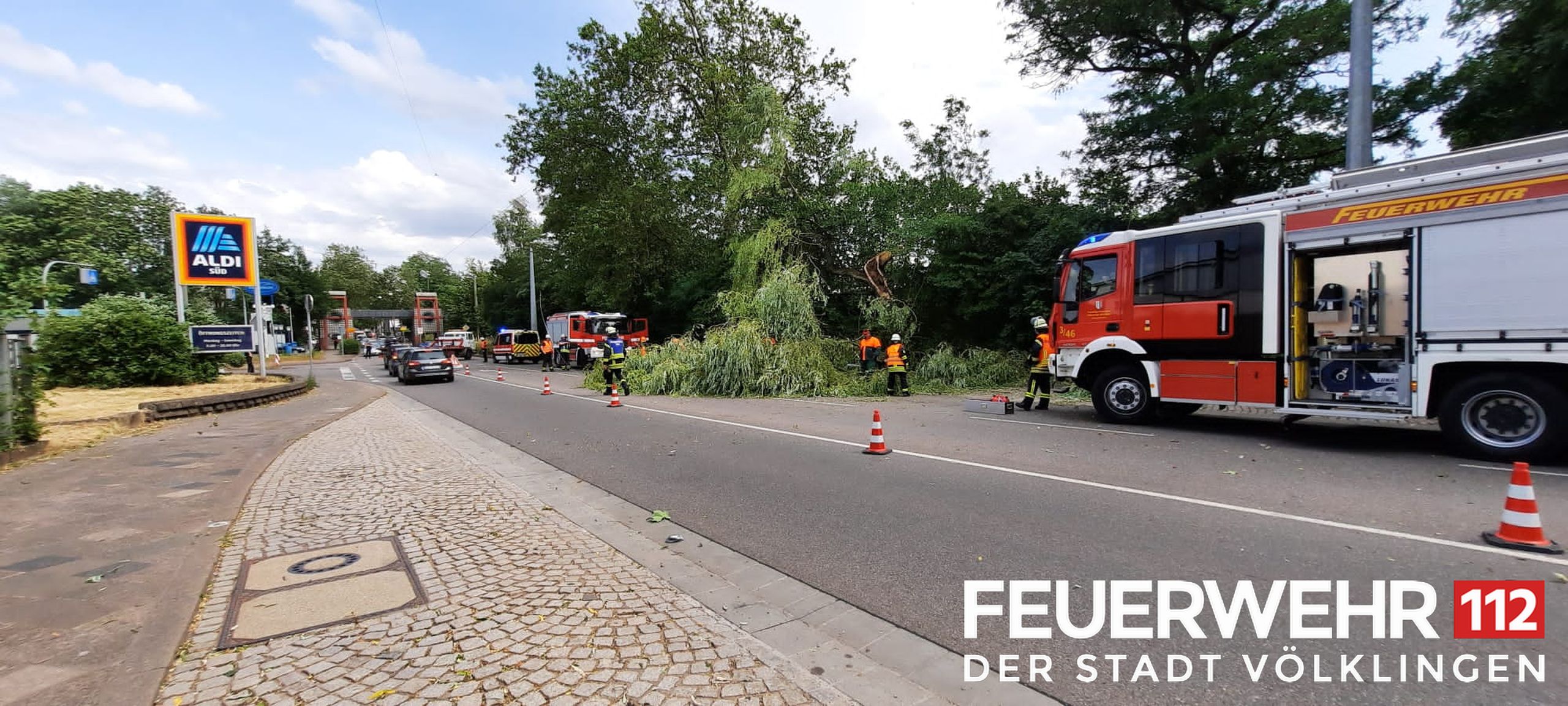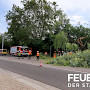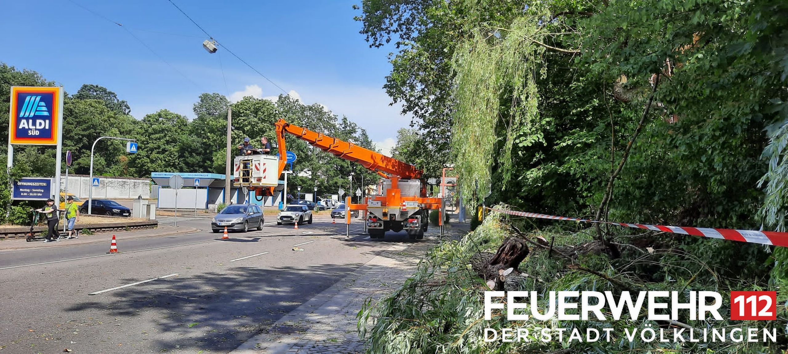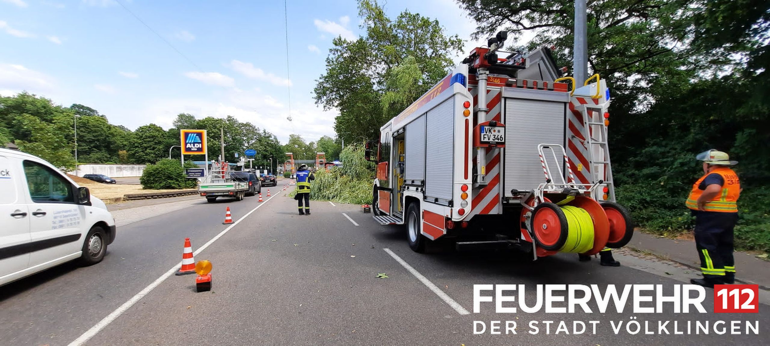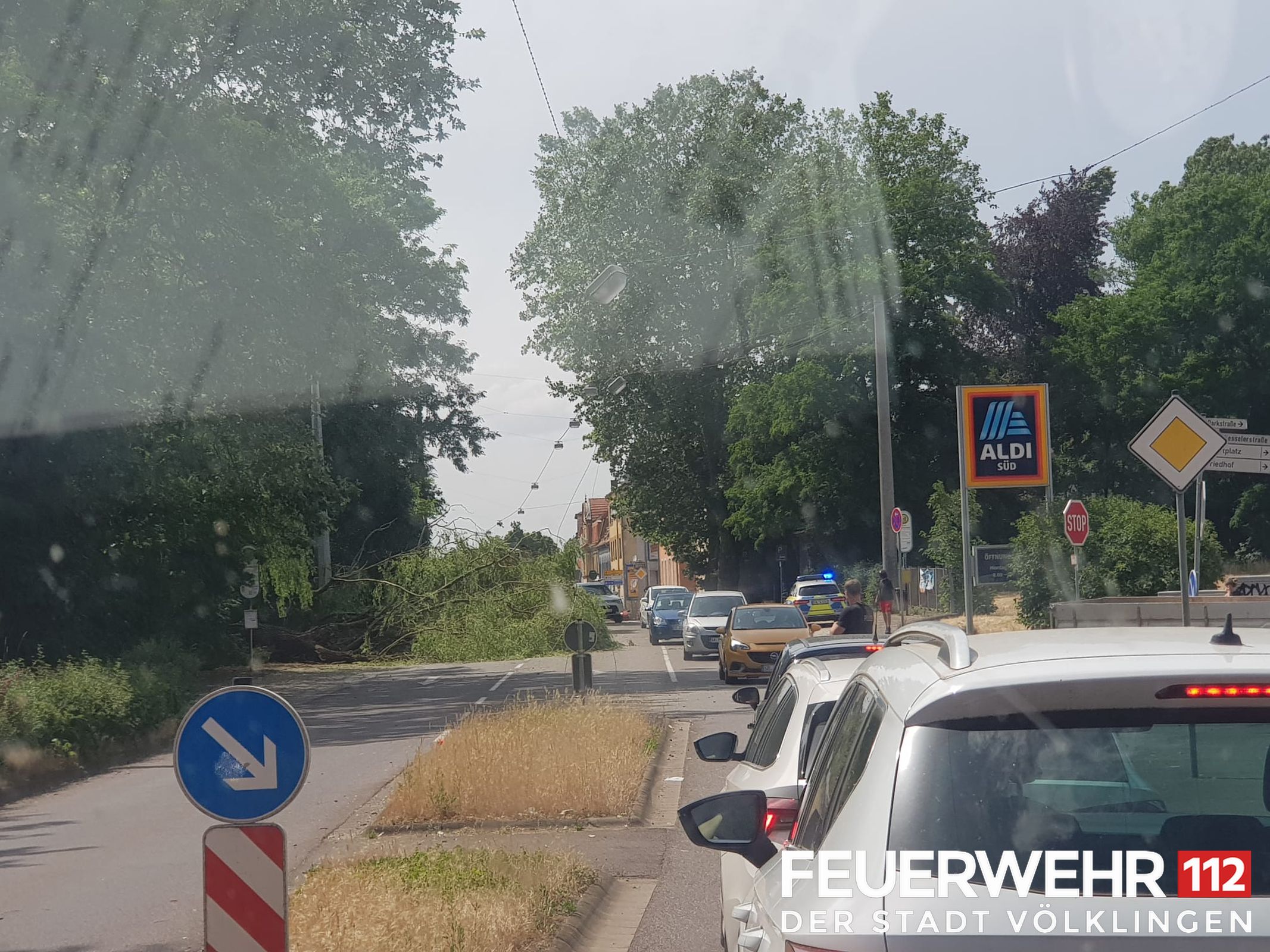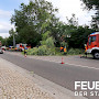 Ein Baum ist auf die Fahrbahn gestürzt und blockierte beide Fahrspuren. Dabei wurde auch die Aufhängung einer Straßenbeleuchtung beschädigt. Die Einsatzkräfte entfernten den Baum mittels Kettensäge und übergaben die Einsatzstelle an den zuständigen Energieversorger und die Polizei.