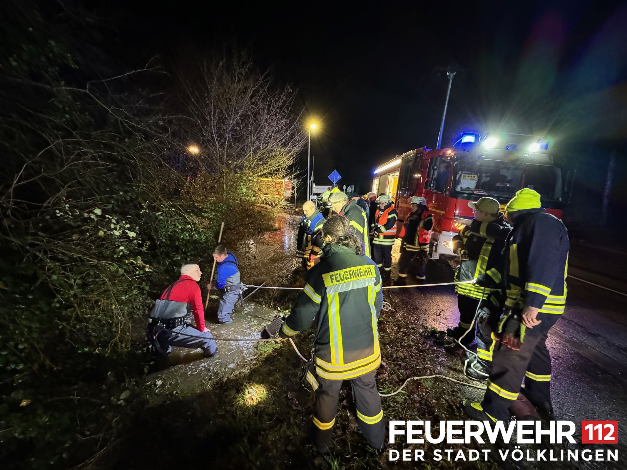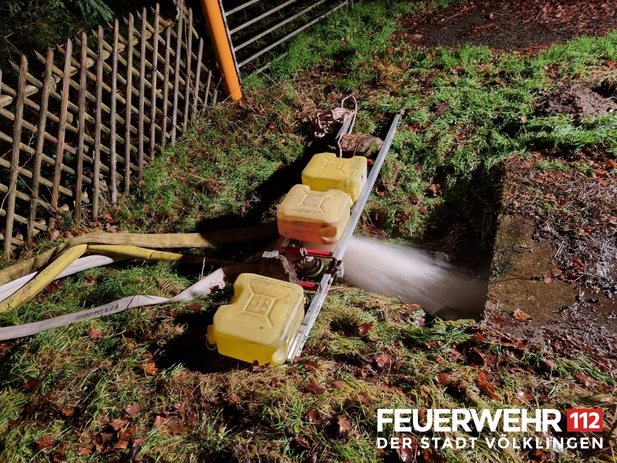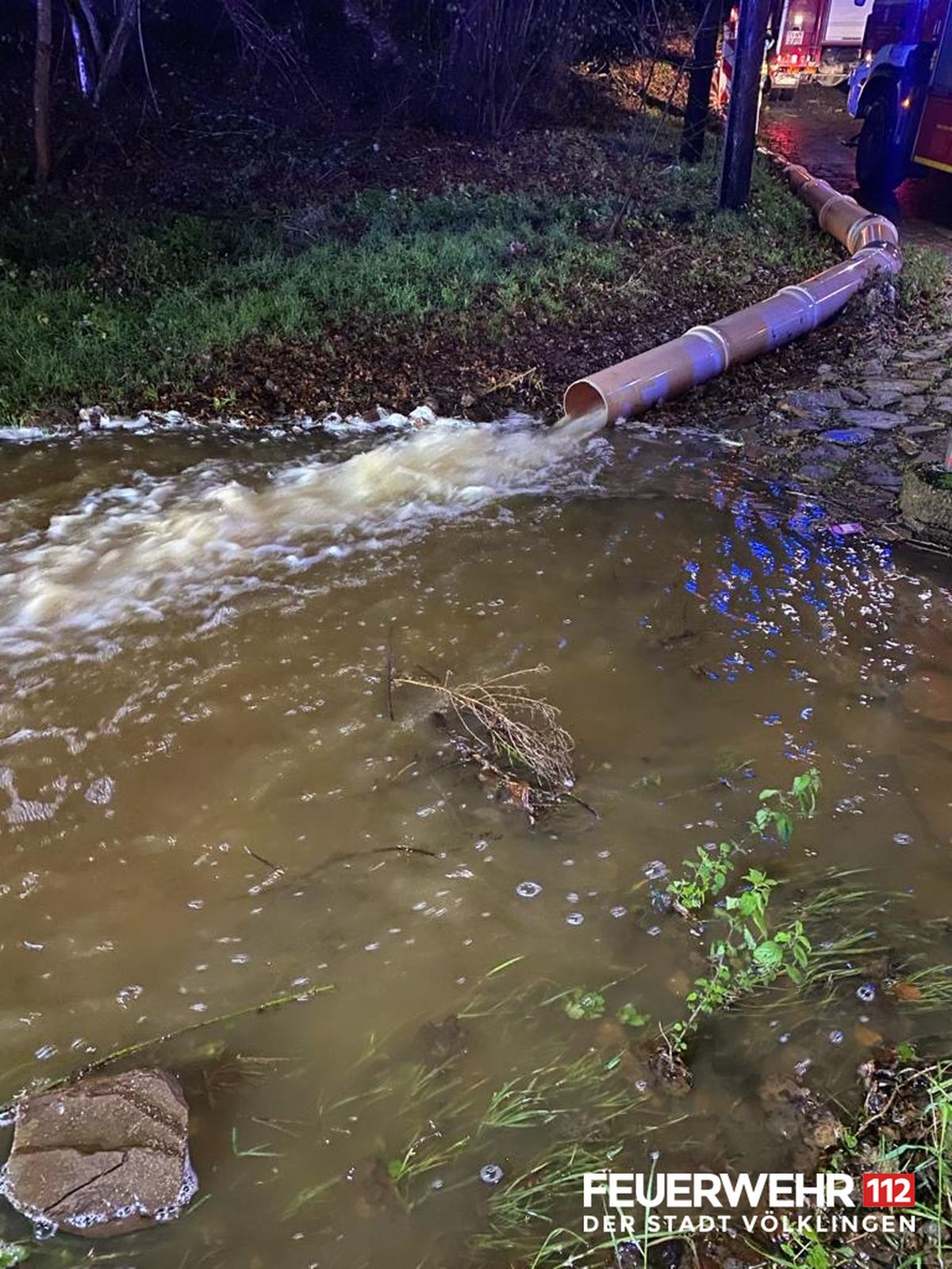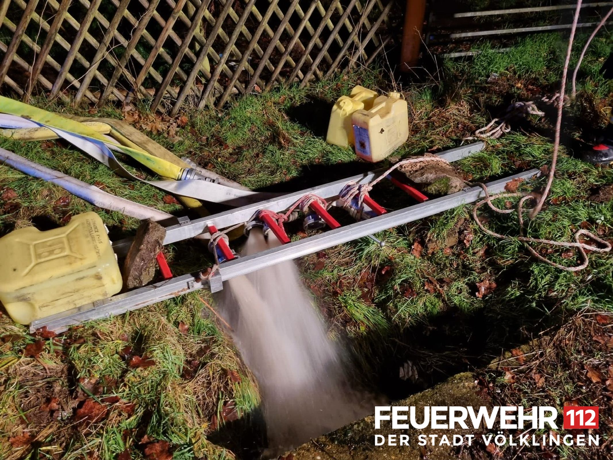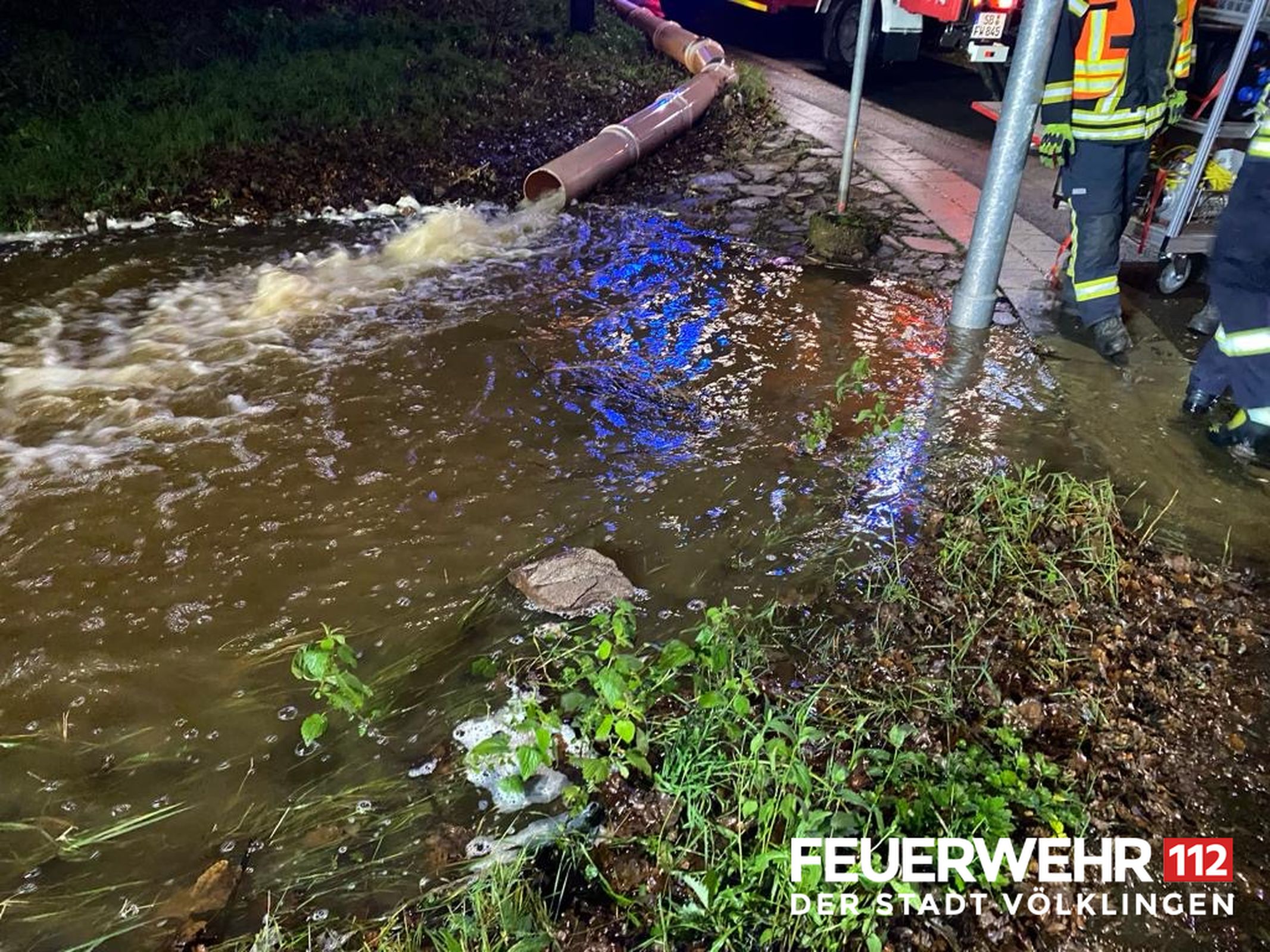 Die Feuerwehr wurde zu einer überfluteten Fahrbahn alarmiert. Durch den vielen Niederschlag entstand ein Kanalrückstau der Straßenentwässerung und führte zum überlaufen des Rückhaltebeckens. Der Wassergraben wurde mittels Lenzpumpe des Löschbezirkes Luisenthal abgepumpt. Der Zulauf des provisorischen Abflussrohres wurde umverlegt, sodass das Wasser wieder in den Kanal einlaufen konnte. Im Anschluss konnte der Einsatz beendet werden.