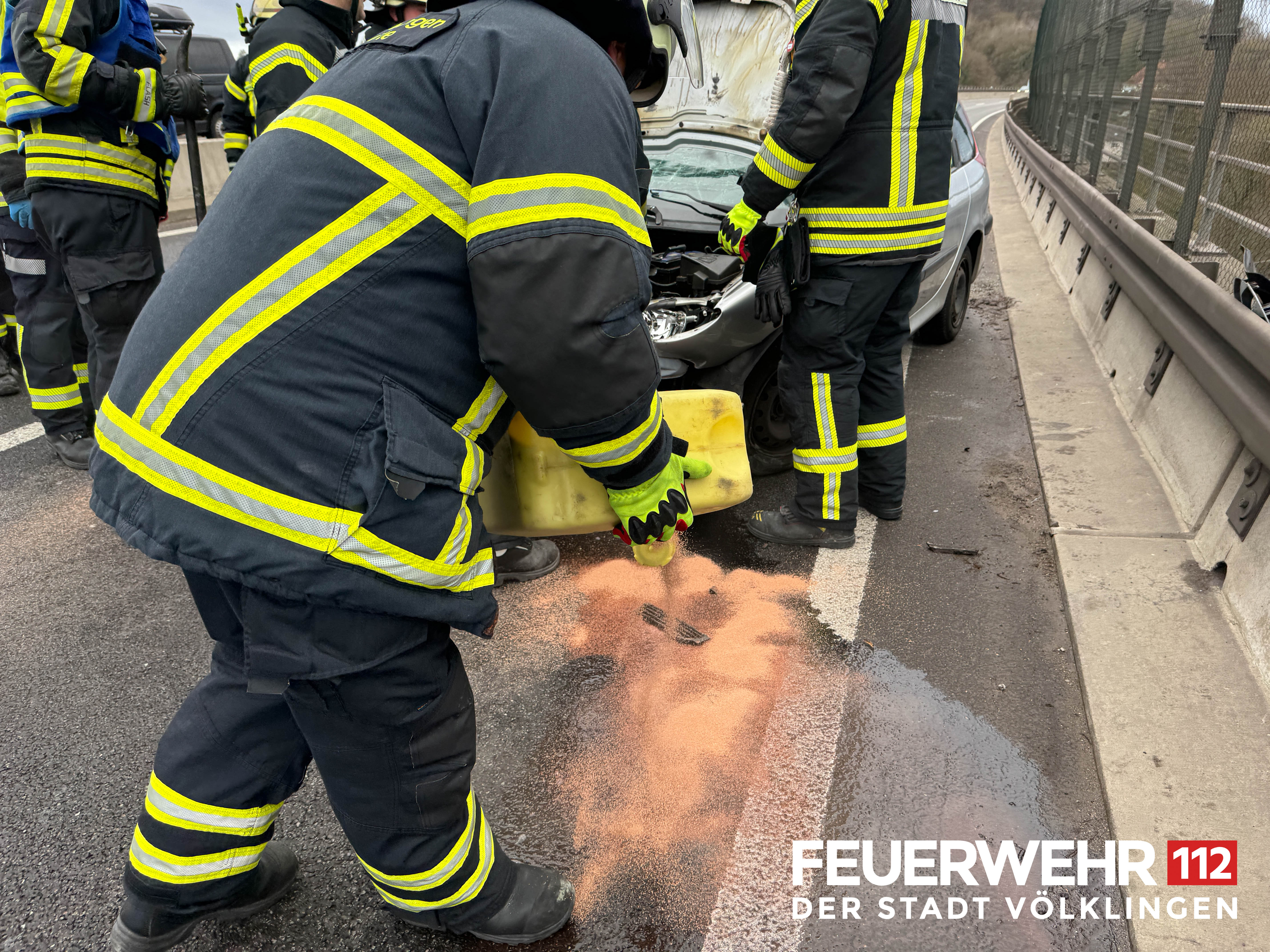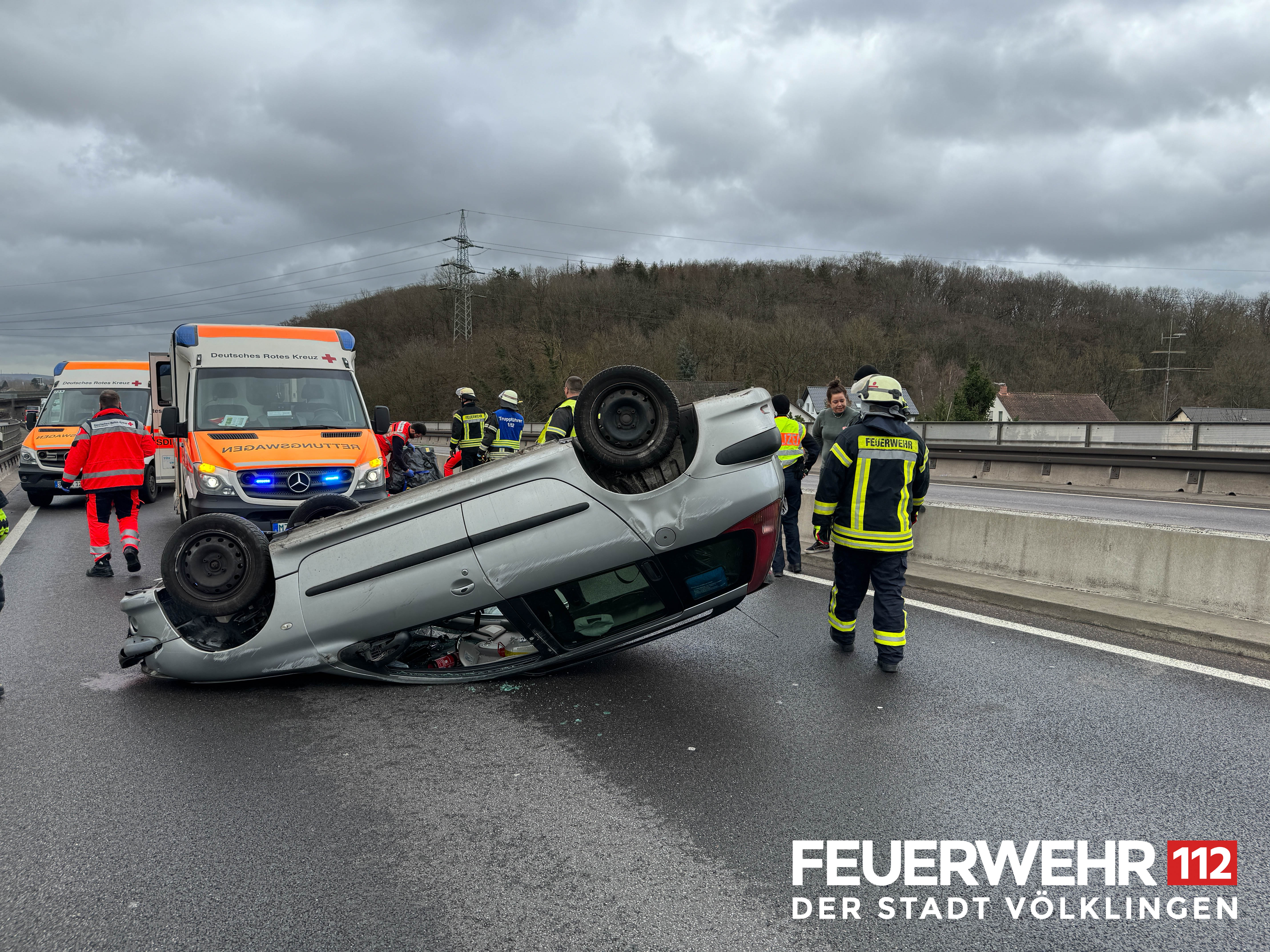 Die Einsatzkräfte fanden bei Ankunft einen überschlagenen PKW auf der A620 vor. Die Person war bereits befreit und wurde vom Rettungsdienst behandelt. Das Fahrzeug wurde aufgerichtet und auslaufende Betriebsstoffe aufgenommen. Anschließend wurde die Einsatzstelle an die Polizei übergeben.