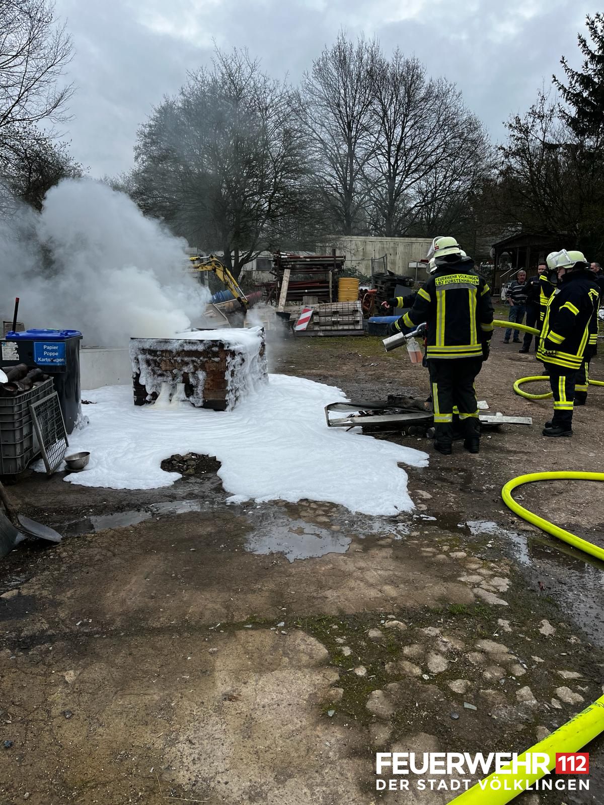 Die Feuerwehr wurde mit dem Stichwort "Unklare Rauchentwicklung" alarmiert. Nach Ankunft konnte festgestellt werden, dass es sich um einen Brand von Unrat handelte. Die Einsatzkräfte löschten das Feuer mittels einem C-Rohr mit Schaumgemisch ab und übergaben die Einsatzstelle anschließend an den Eigentümer.