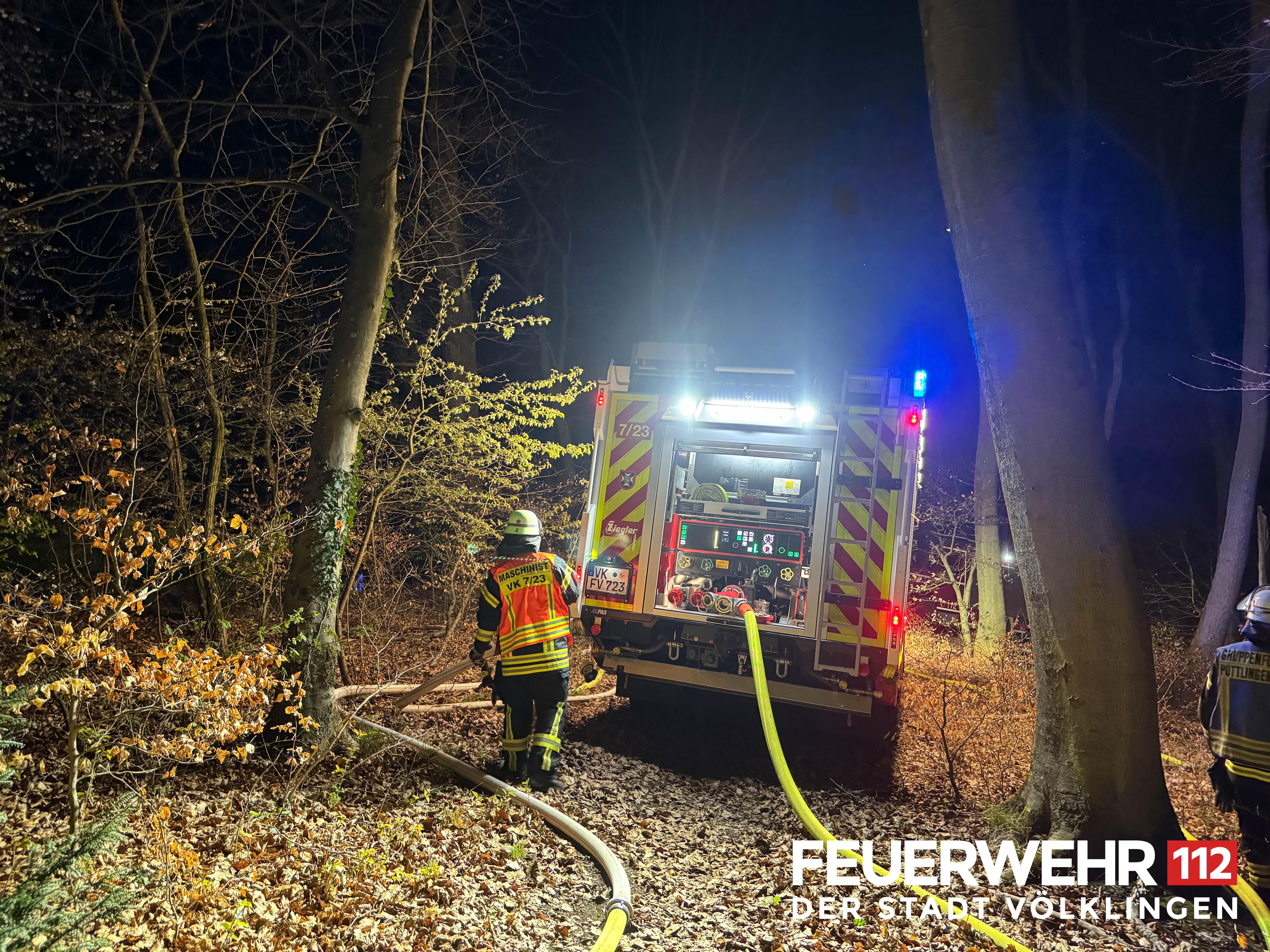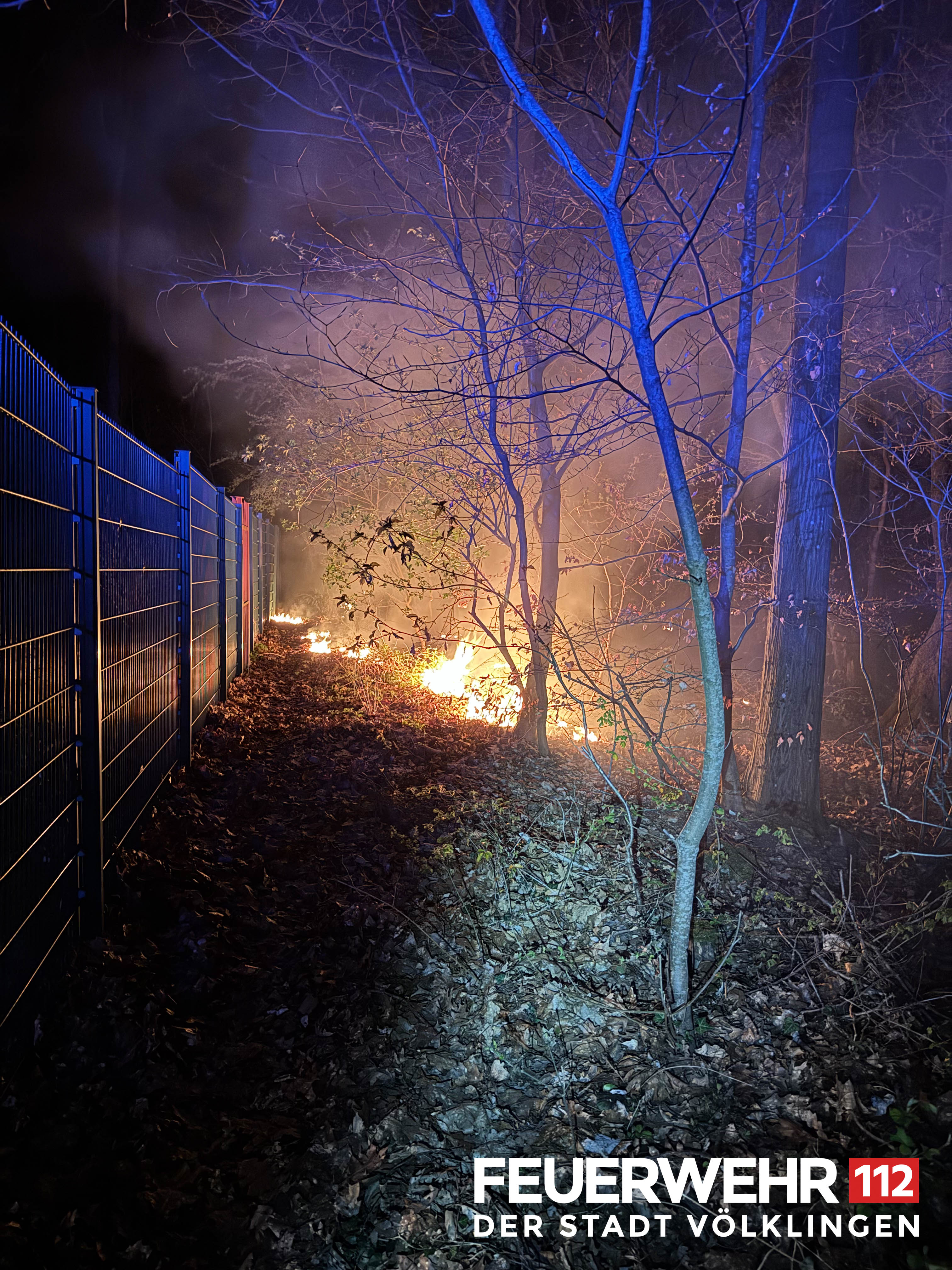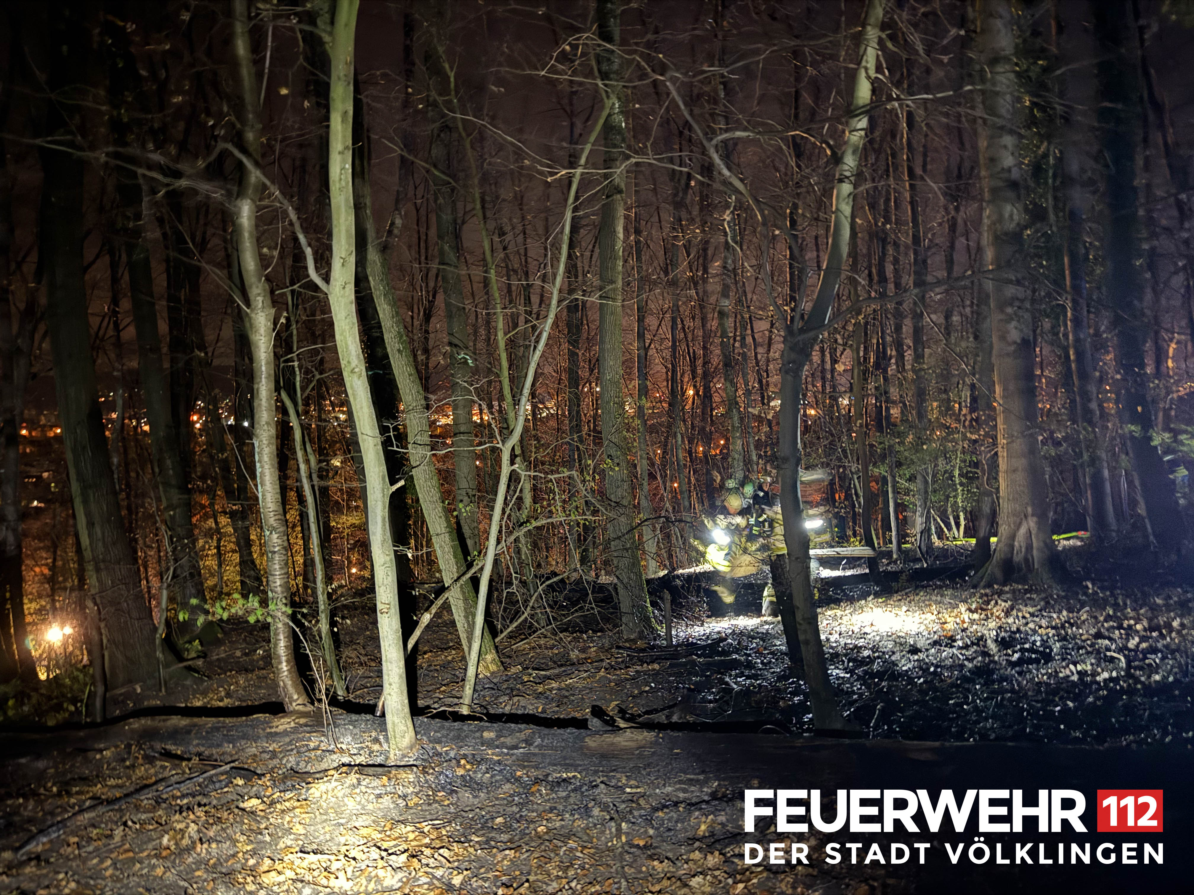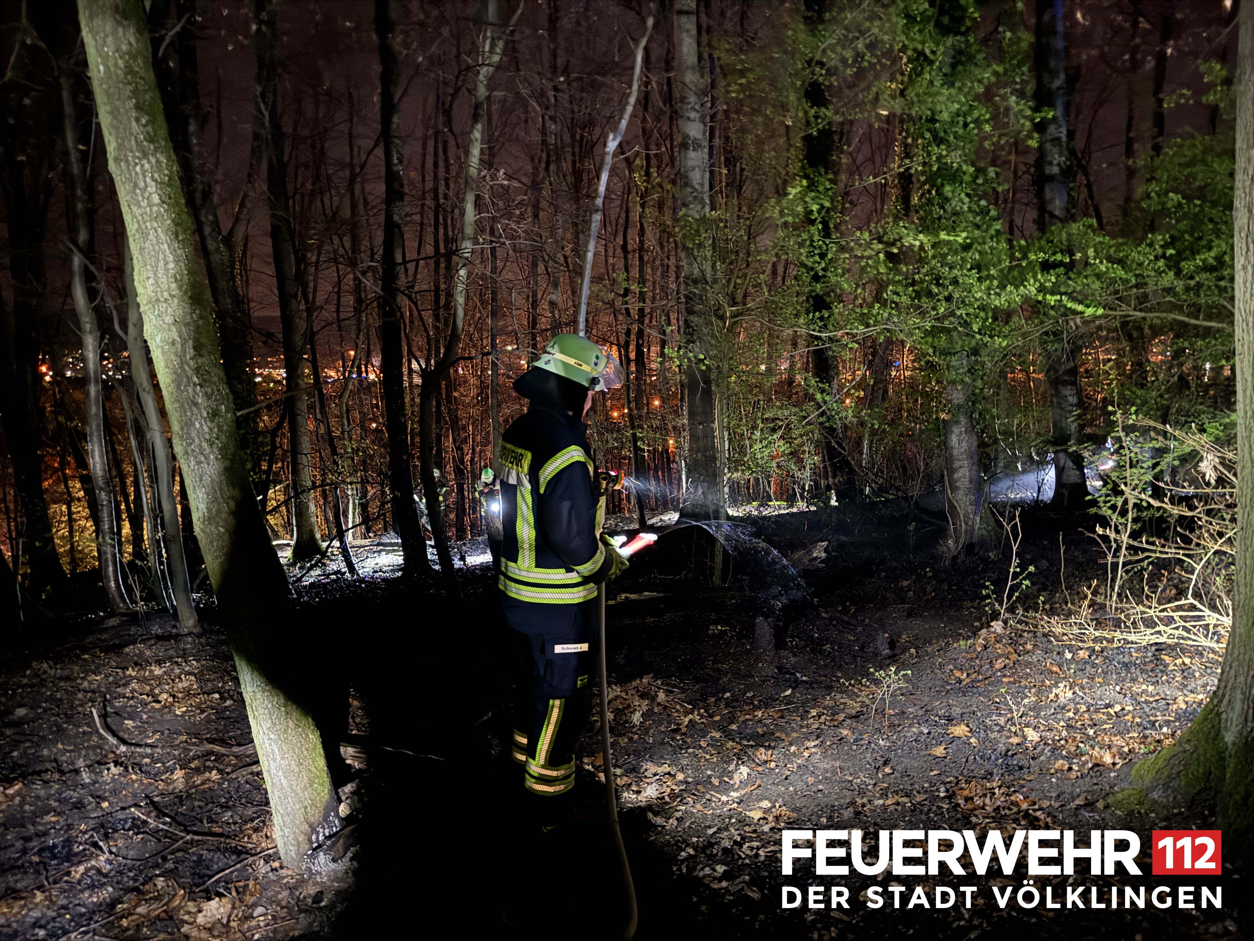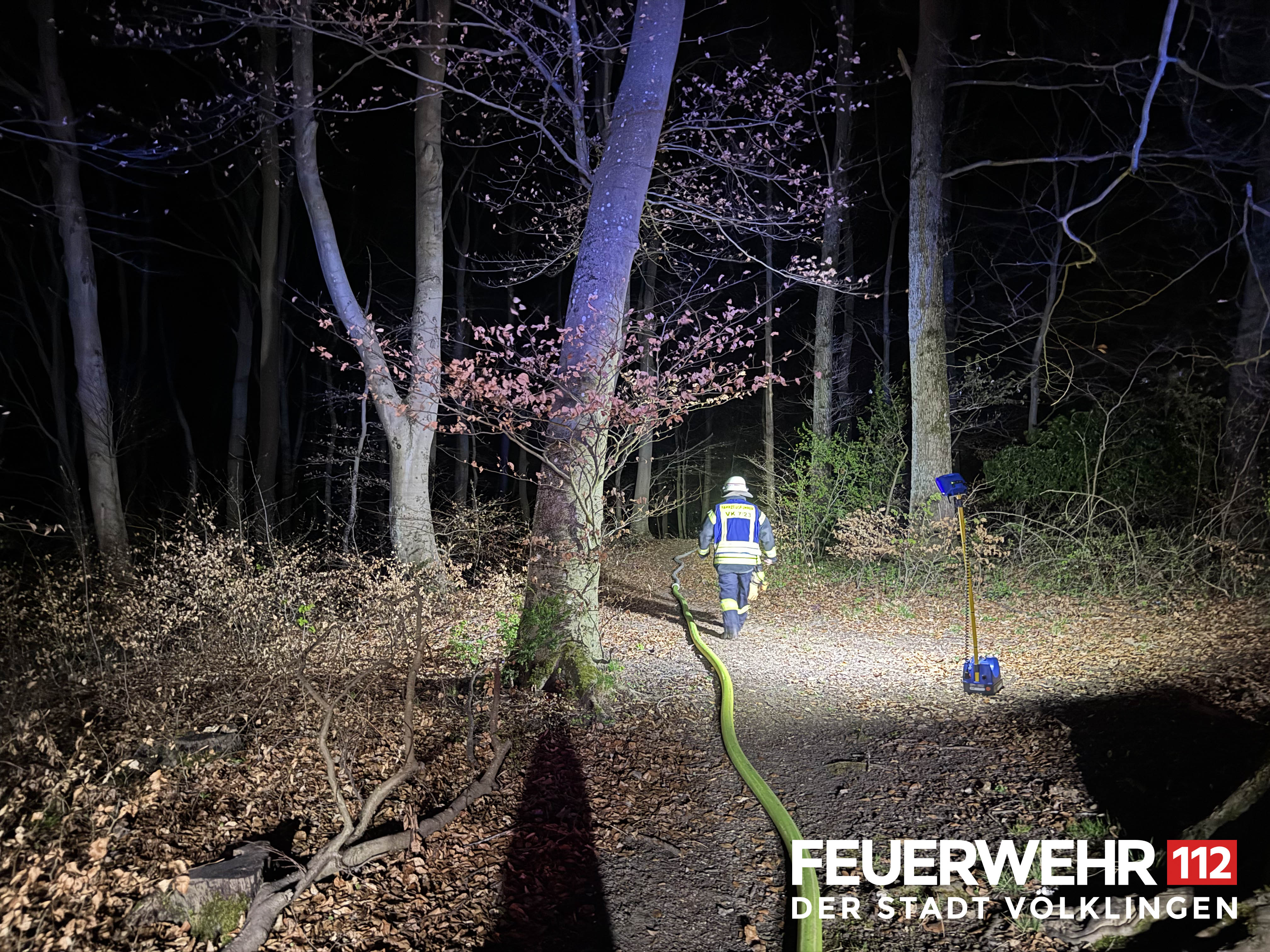 Die Feuerwehr wurde zu einem Flächenbrand alarmiert. Nach Ankunft konnte ein Feuer von ca. 150m² Fläche in einem Waldgebiet festgestellt werden. Die Einsatzkräfte löschten den Brand mittels zwei C-Rohren, zeitgleich wurde ein Angriff von drei Seiten aufgebaut. Im weiteren Verlauf wurde das Feuer mit insgesamt drei D-Rohren und zwei C-Rohren gelöscht. Die FF Püttlingen war ebenfalls zur Unterstützung vor Ort. Anschließend konnte der Einsatz beendet werden.