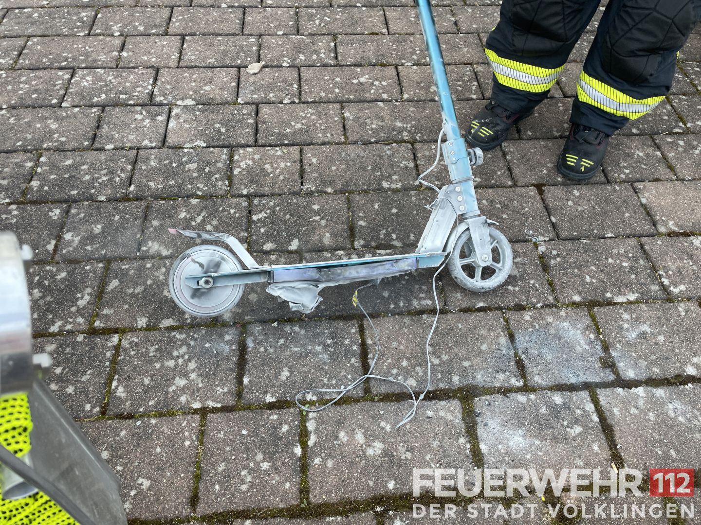 Die Feuerwehr wurde zu einem Zimmerbrand alarmiert. Bei Ankunft war bereits eine Rauchentwicklung aus einem Fenster sichtbar. Der Angriffstrupp ging zur Brandbekämpfung ins Gebäude vor und stellte fest, dass es sich um einen Brand eines E-Scooters handelte. Der Akku wurde in ein Wasserbad gelegt sowie Belüftungsmaßnahmen durchgeführt. Anschließend konnte der Einsatz beendet werden.