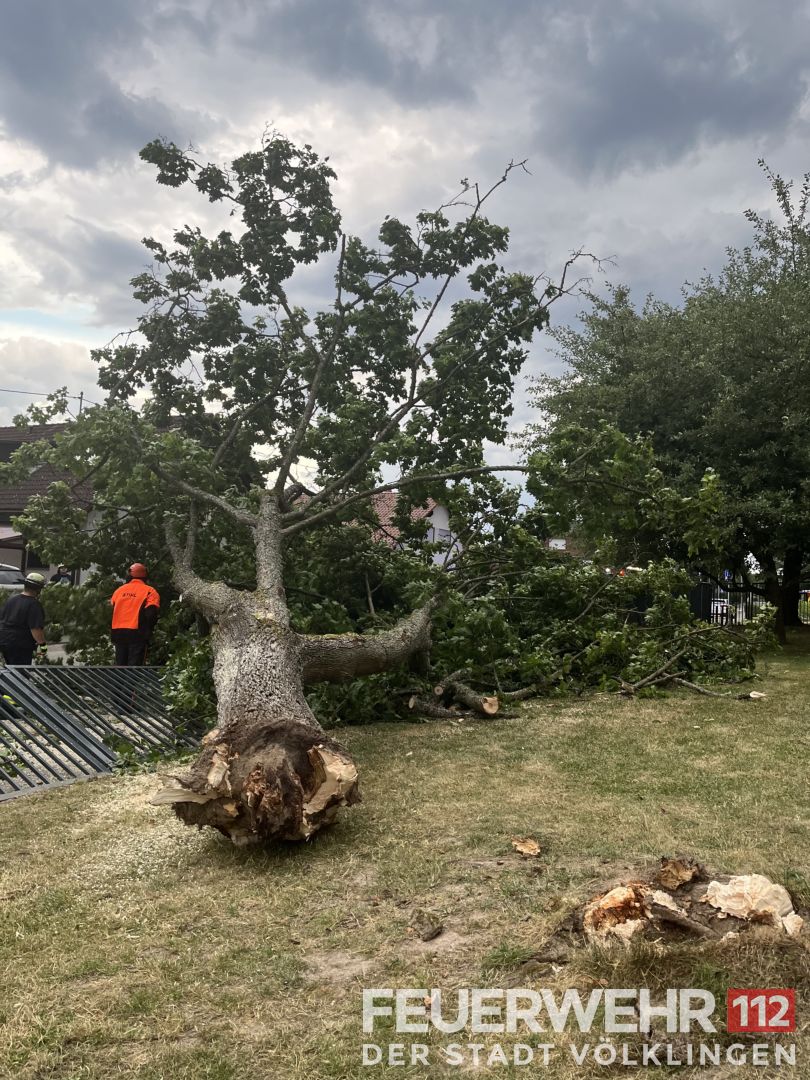 Die Feuerwehr wurde zu einem umgestürzten Baum alarmiert. Ein Baum welcher sich auf einem Schulgelände befand stürzte um, durchbrach einen Zaun und fiehl auf einen geparkten PKW. Die Einsatzkräfte zerkleinerten den Baum mittels Kettensäge und reinigten noch die Fahrbahn. Abschließend wurde der PKW sowie den Zaun mit Flatterband abgesperrt und die Einsatzstelle an einen verantwortlichen der Schule übergeben.