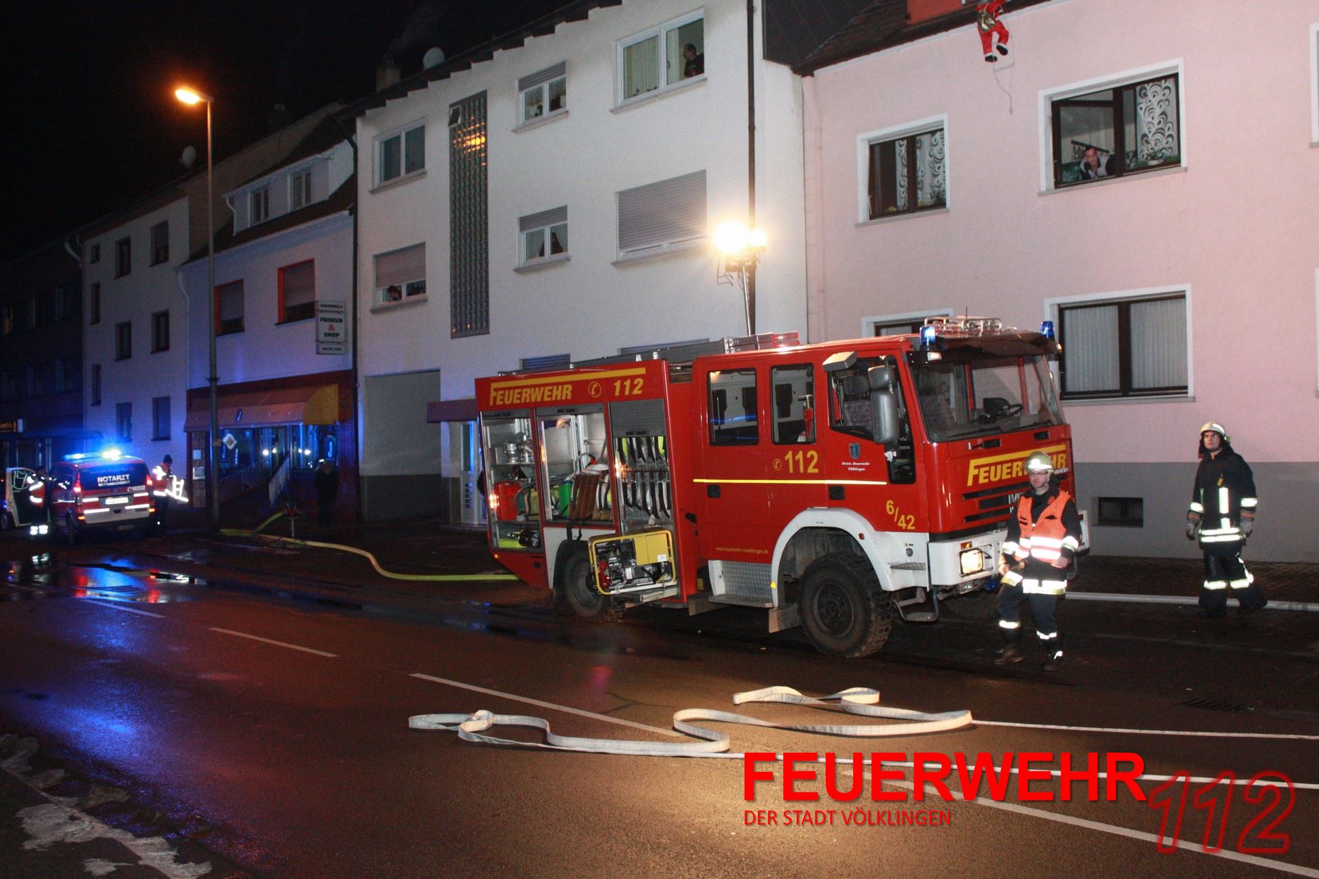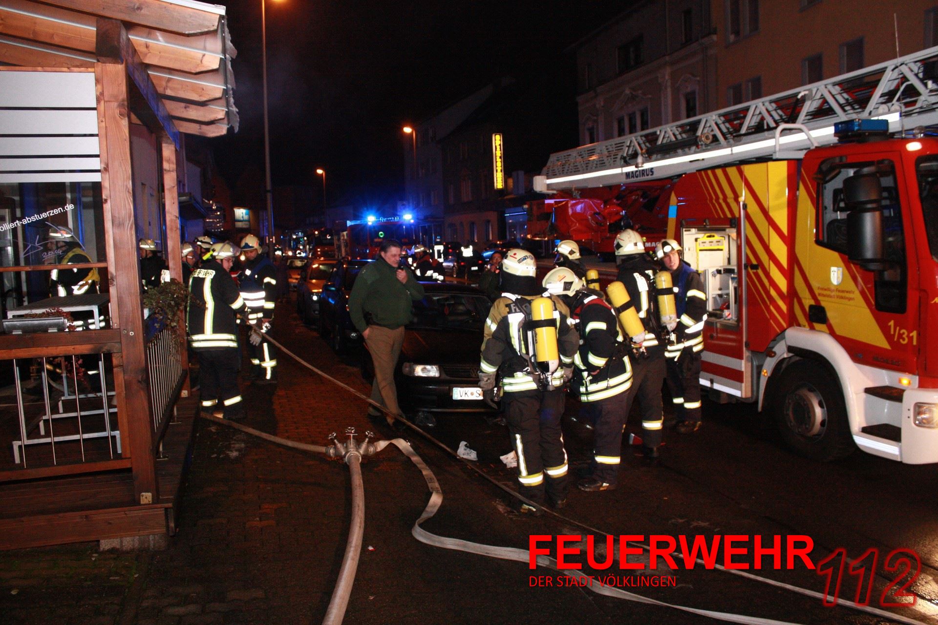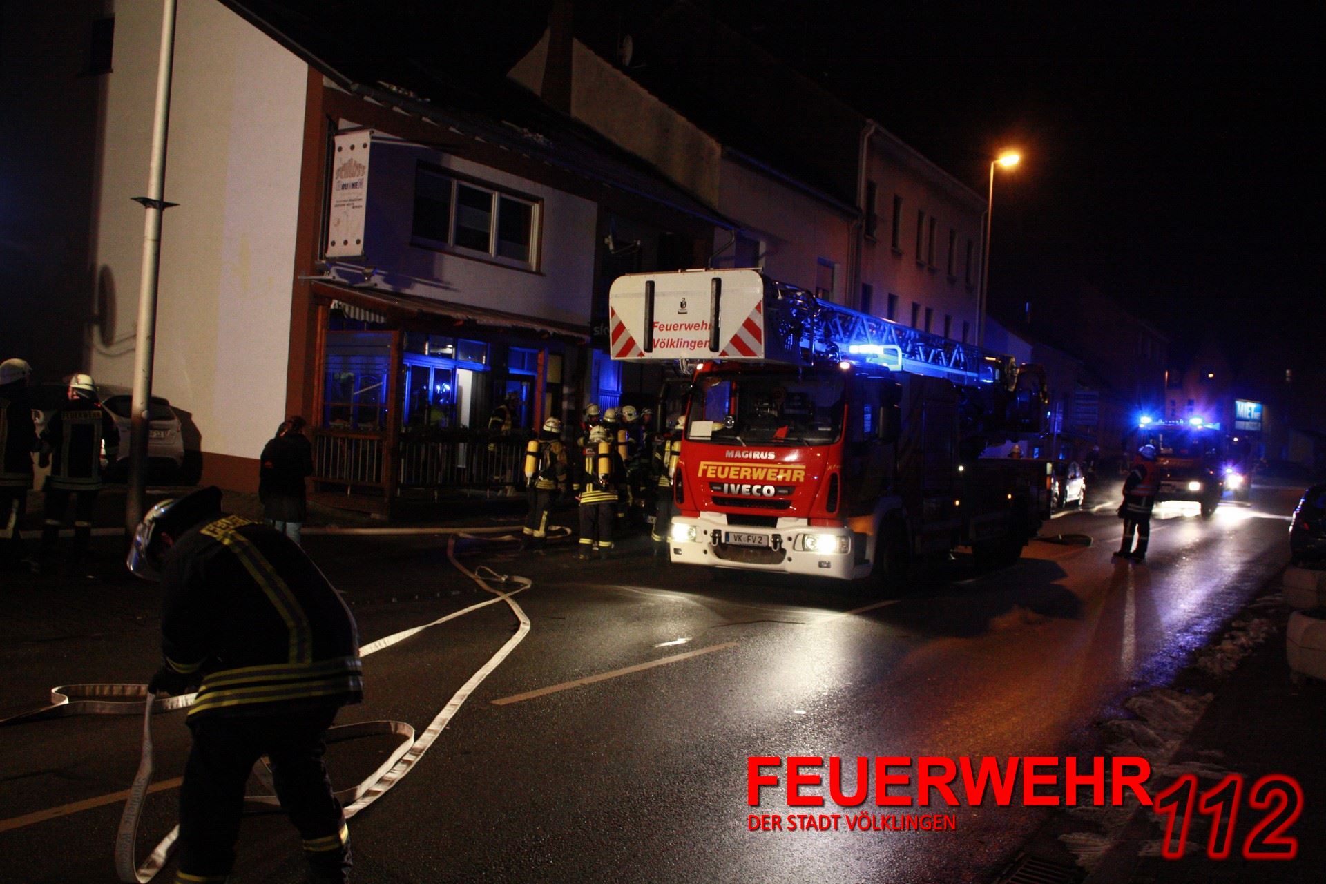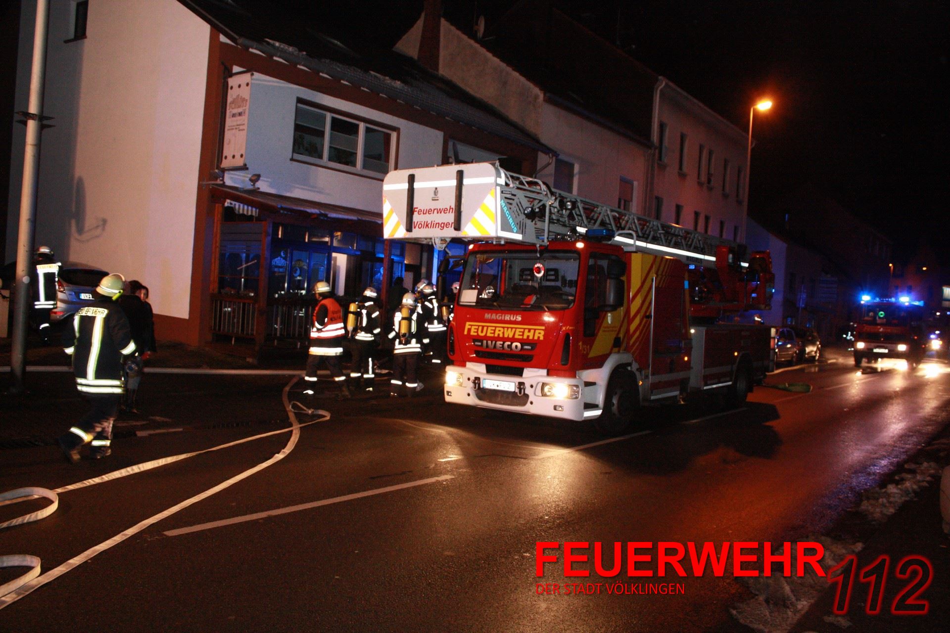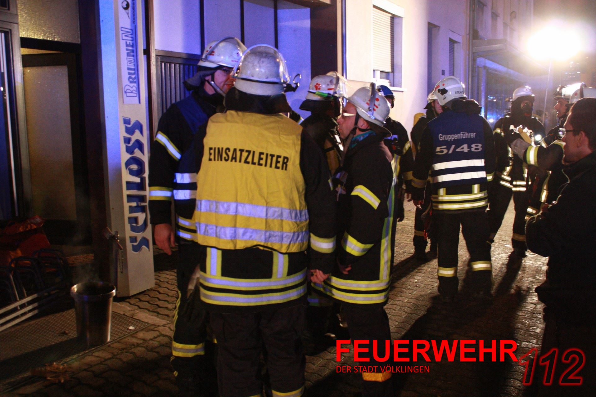 Gemeldet wurde ein Brand in einer Gaststätte. Beim Eintreffen der Einsatzkräfte war das Lokal komplett verraucht. 2 Trupps unter PA gingen zur Erkundung in diesen Bereich vor und stellten einen Schwelbrand in einem Mülleimer fest. Dieser wurde nach draußen verbracht und abgelöscht. Wegen des Einsatzes musste die Ludweilerstraße durch die Polizei kompl. gesperrt werden. Die Räumlichkeiten wurden mittels Lüfter rauchfrei gemacht und anschließend wurden Schadstoffmessungen durchgeführt. Nach Einsatzende wurde die Örtlichkeit an die Polizei übergeben.