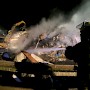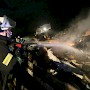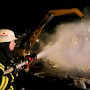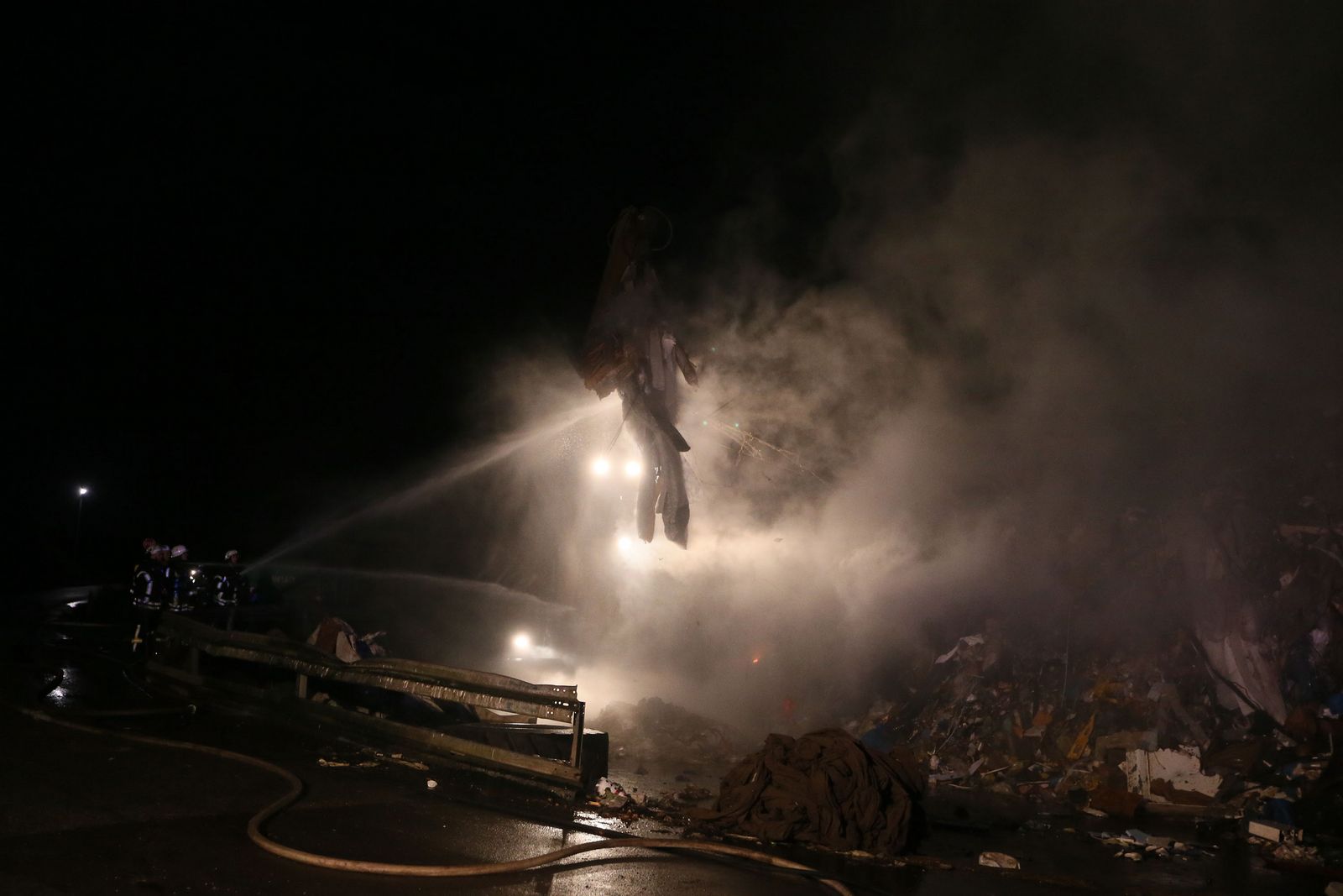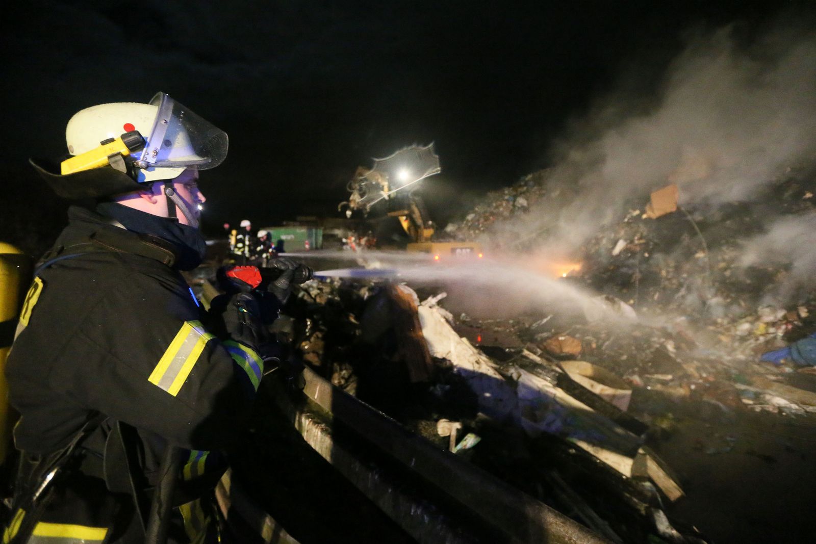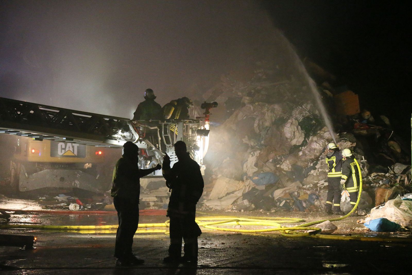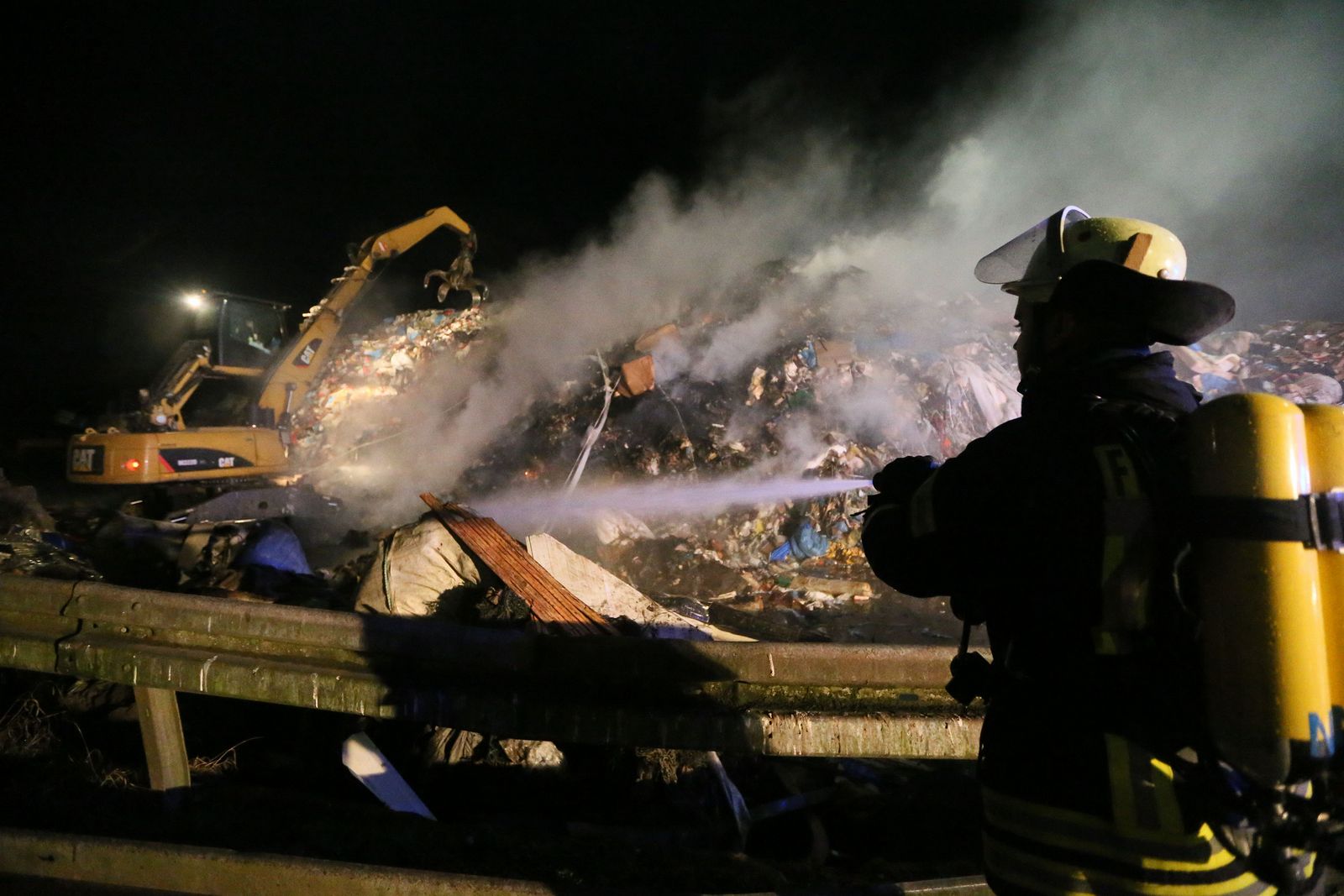 Beim Eintreffen der Feuerwehr brannte es in einem ca. 20 x 25 Meter großen, mehrere Meter aufgetürmten Wertstoffhaufen. Die Feuerwehr stellte die Wasserversorgung von der etwa 200 Meter entfernten Saar mit 2 Tragkraftspritzen zur Einsatzstelle in einem Wertstoffbetrieb her. Mit schwerem Gerät des Betreibers wurde der aufgetürmte Haufen abgetragen und gezielt abgelöscht. Anschließend wurde mit Schaummittel gelöscht. Im Einsatz befanden sich die Feuerwehr Völklingen mit fünf Löschbezirken und die Feuerwehr Wadgassen mit zwei Löschbezirken, insgesamt 18 Fahrzeugen und 100 Feuerwehrleuten. Ab etwa 3 Uhr war noch eine Gruppe (9 Personen) zur Überwachung der Einsatzstelle vor Ort.
