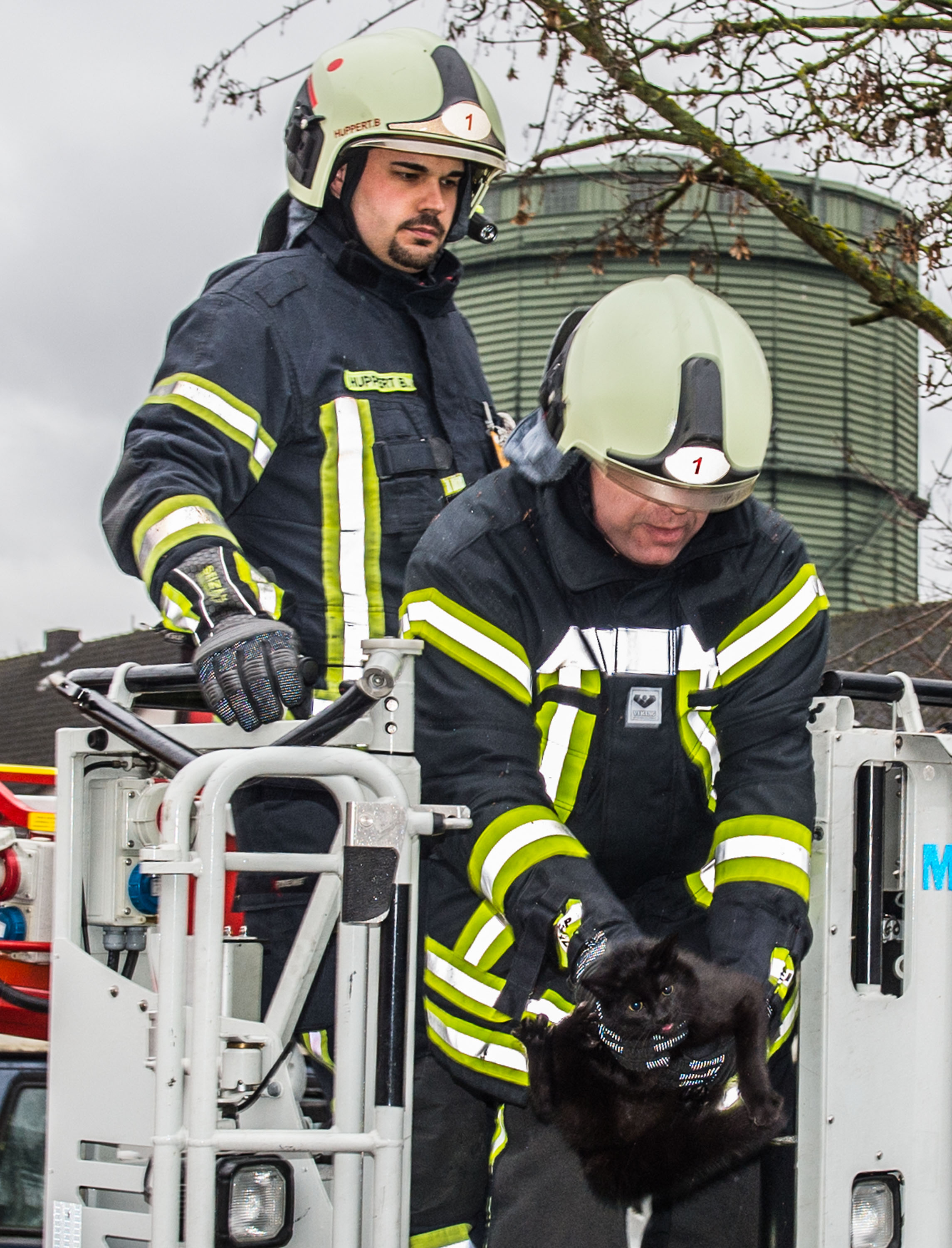 Eine Katze war auf einen Baum geklettert, und konnte selbstständig diesen nicht mehr verlasse. Die Einsatzkräfte retteten das Tier mittels DLK und übergaben dieses an den Besitzer.