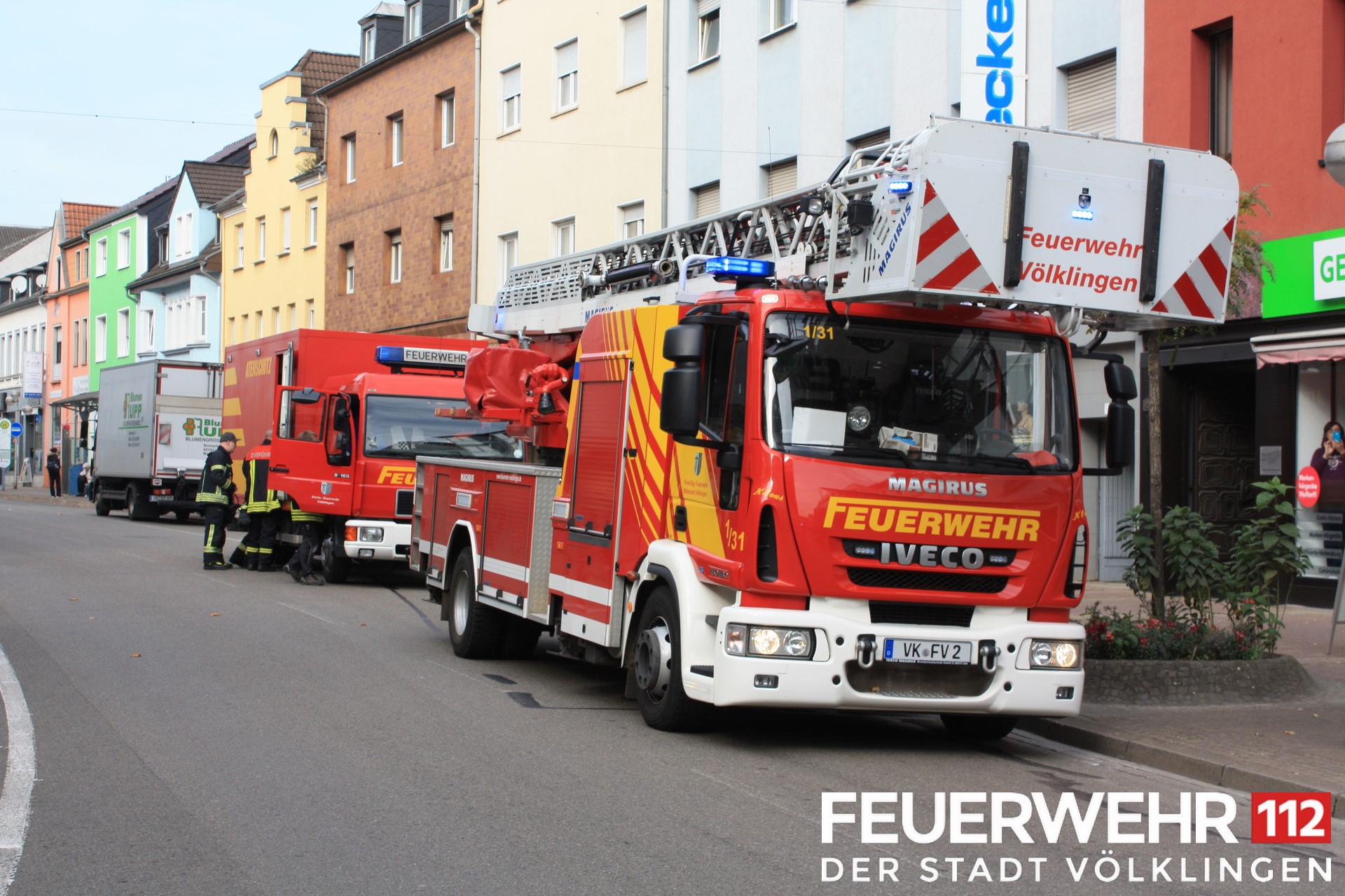 Die Feuerwehr Völklingen wurde zu einer hilflosen Person in einer Wohnung gerufen. Bei der Ankunft an der Einsatzstelle löste ein von den Einsatzkräften mitgeführtes Gaswarngerät aus. Vorsorglich wurde die Wohnung mit Atemschutz betreten. Der Gasaustritt stellte sich jedoch als Fehlalarm heraus. Durch die Enge des Treppenhauses war es notwendig, die Person über die Drehleiter zu retten. Anschließend wurde die Person dem Rettungsdienst übergeben.