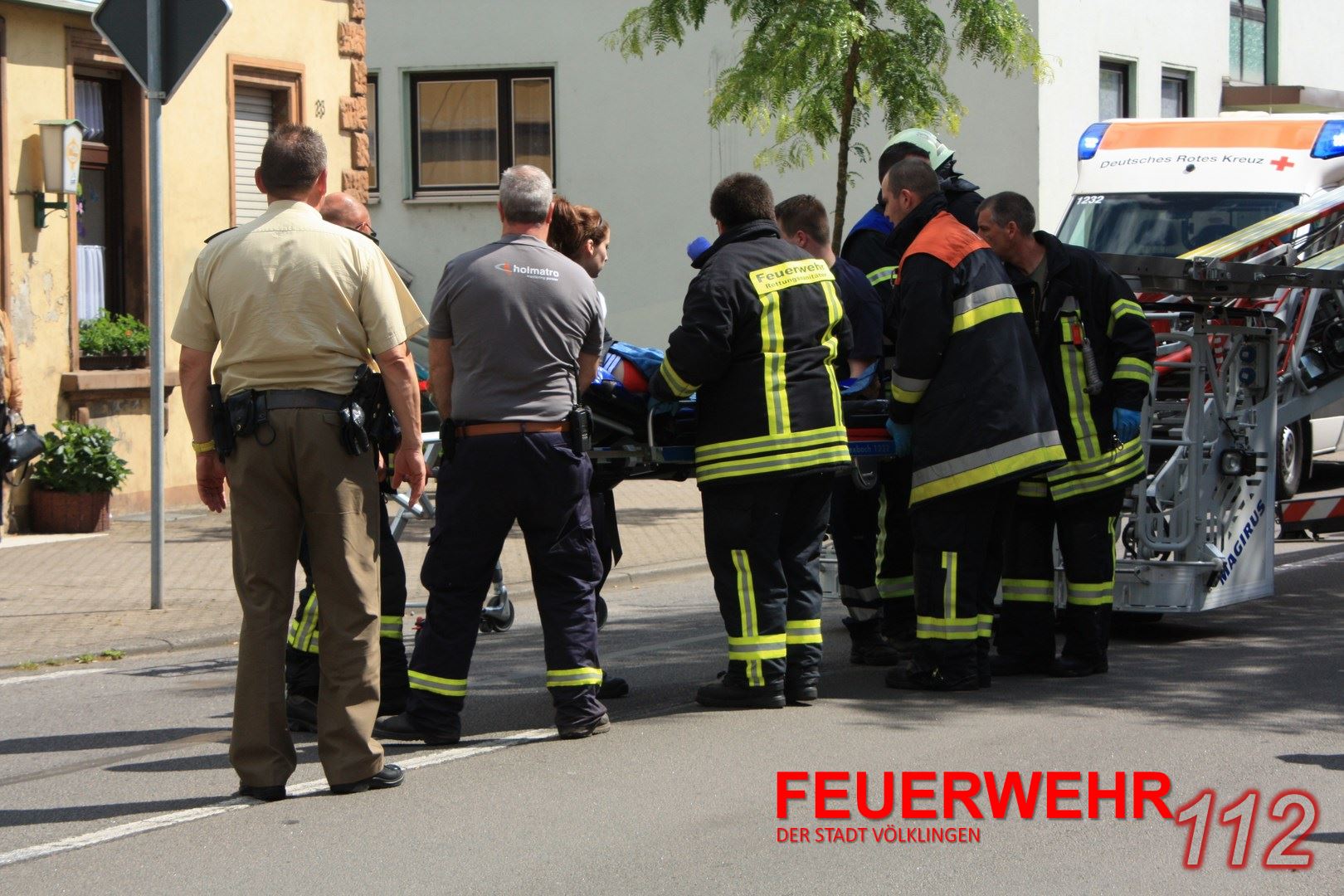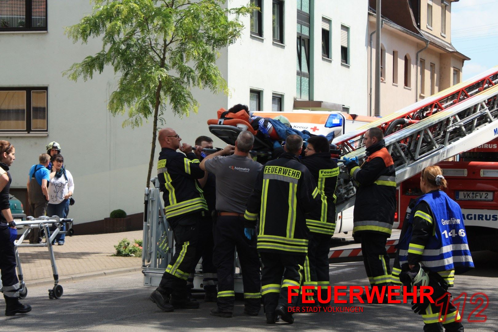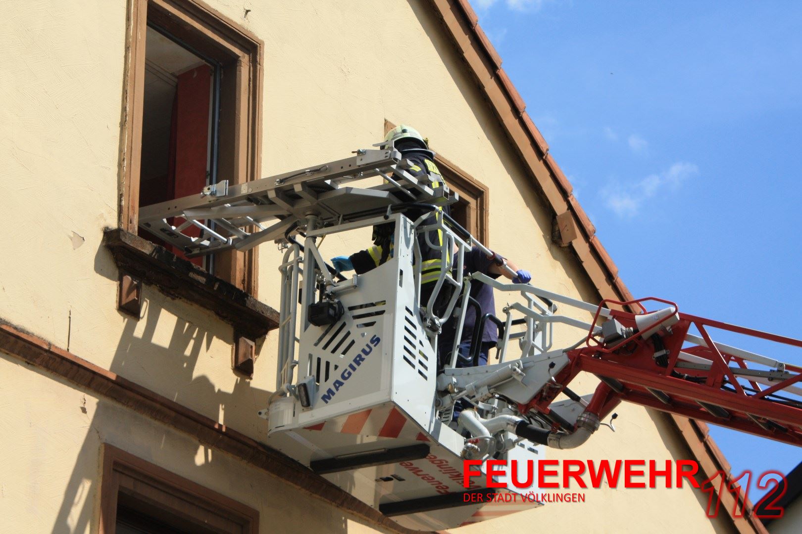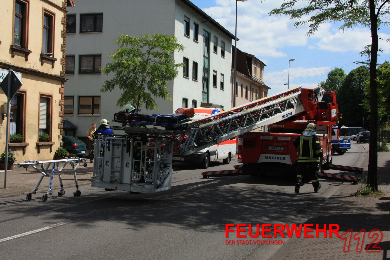 Der Rettungsdienst hat die Feuerwehr zur Rettung einer Person angefordert. Die Einsatzkräfte brachten die Person mittels DLK nach unten und übergaben sie an den Rettungsdienst.
