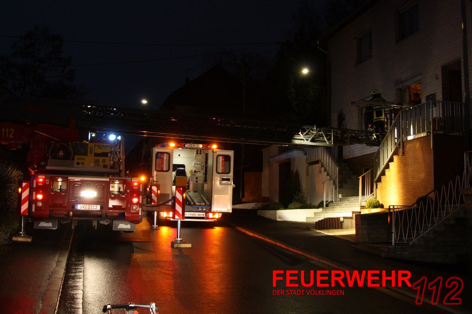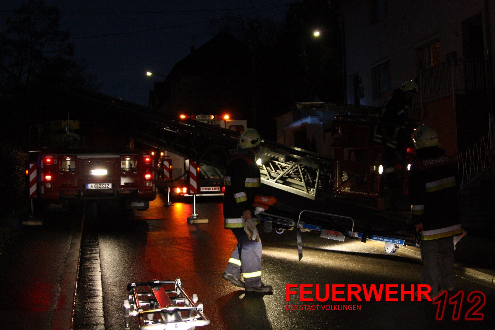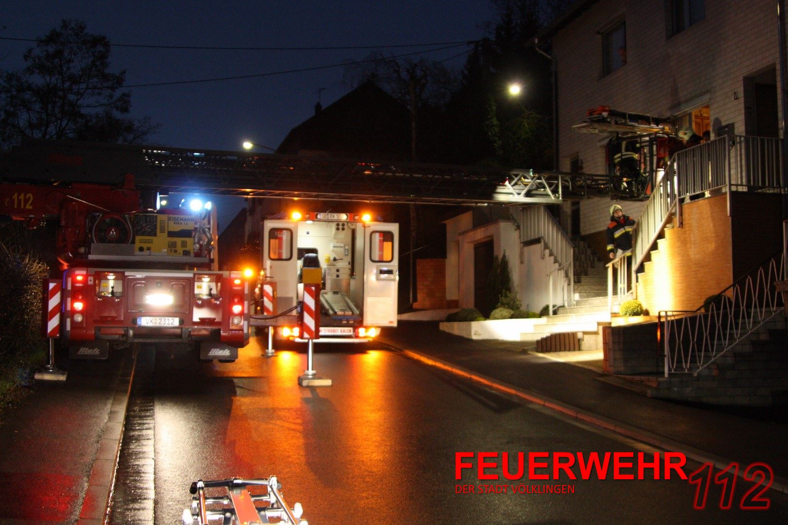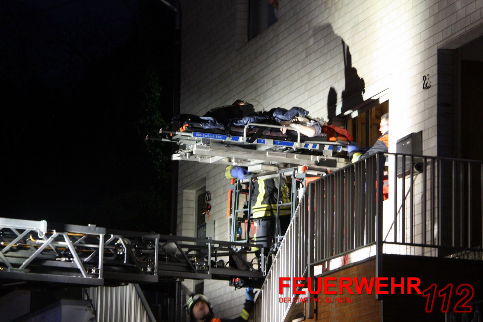 Der Rettungsdienst hat die Feuerwehr zur Rettung einer Person angefordert. Die Einsatzkräfte brachten die Person mittels DLK nach unten und übergaben sie an den Rettungsdienst.