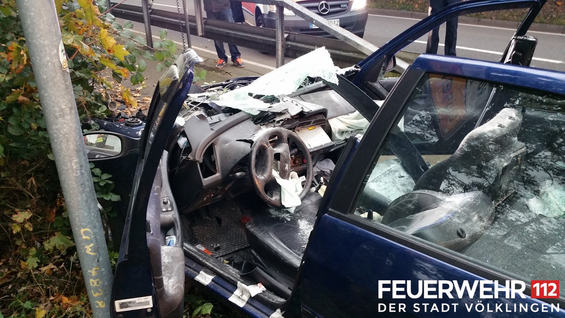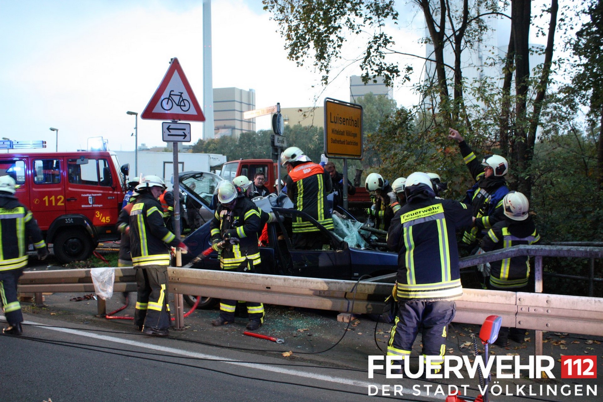 Ein PKW-Fahrer war in der Straße des 13. Januar in Fahrtrichtung Stadtmitte nach links von der Fahrbahn abgekommen und in ein Geländer gefahren. Durch die Wucht des Aufpralls wurde der Fahrer in seinem Fahrzeug eingeklemmt und musste durch die Einsatzkräfte befreit werden. Da das Fahrzeug bei dem Unfall stark deformiert wurde, mussten die Feuwerwehrleute das Dach des PKW´s mittels Schere und Spreizer entfernen. Anschließend konnte der Verunfallte auf schonendem Wege aus seinem Fahrzeug befreit und an den Rettungsdienst übergeben werden.